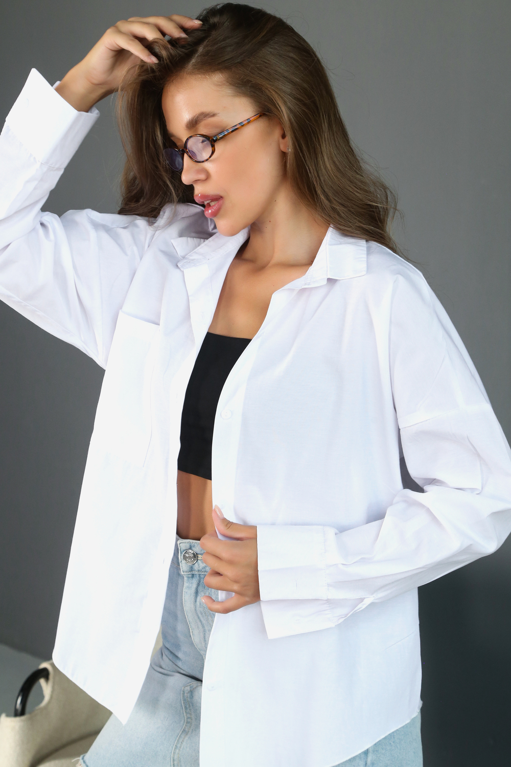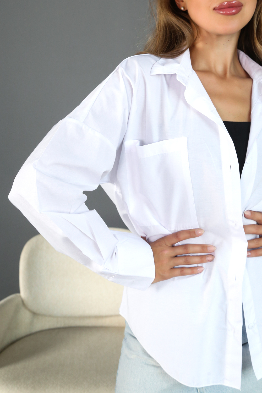 Базовая женская рубашка свободного кроя с классическим отложным воротником и длинными рукавами — универсальная вещь, которая подойдёт для офиса, школы, университета, деловых мероприятий, повседневной носки и прогулок. Лаконичный дизайн и современный силуэт делают её идеальным вариантом для женщин и девушек любого возраста, роста и комплекции. Свободная посадка в стиле оверсайз обеспечивает комфорт в течение дня, не стесняет движений и подчёркивает актуальный минимализм в образе. Отлично подойдёт подросткам, взрослым женщинам, а также беременным и обладательницам фигуры плюс-сайз.