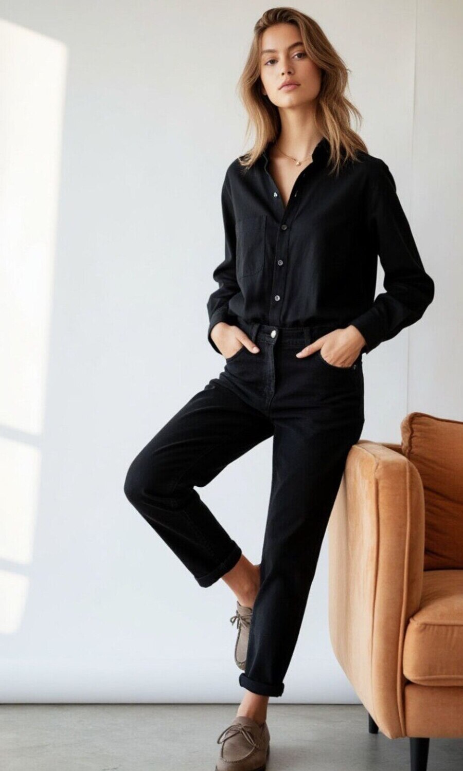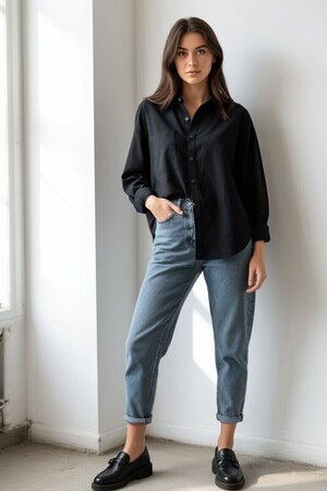 Рубашка выполнена из 100% полиэстера — ткань мягкая на ощупь, приятна к телу и сохраняет форму благодаря лёгкой эластичности. Не мнётся так сильно, как чистый хлопок, хорошо садится по фигуре и остаётся аккуратной в течение дня. Застёжка на пуговицы, классические манжеты и строгий ворот делают рубашку идеальной для повседневной и деловой стилизации. Этот вариант легко адаптировать под любой случай — от учёбы до отдыха. Универсальная длина и прямой крой подойдут как для миниатюрных, так и для высоких девушек.