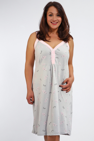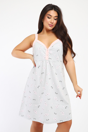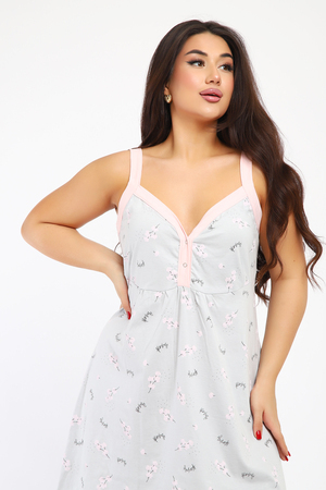 Сорочка женская без рукава на брителях . Данная модель выполнена из трикотажного полотна кулирка ( хлопок 100%). Полочка отрезная с кнопками. Горловина обработана широкой окантовкой. Отличная модель для сна и кормления.