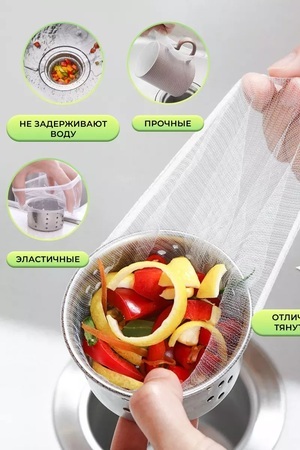 Набор одноразовых фильтров от засоров в раковину 100 штук. Универсальная сетка фильтр на слив в раковину является удобным и эффективным способом предотвратить засорение раковины ванной комнаты или кухни. Она улавливает мелкие частицы и отходы, такие как волосы, пищевые остатки и другие загрязнения \ отходы, которые могут попасть в мойку при использовании. После установки, сеточка фильтр начинает свою работу, задерживая загрязнения и предотвращая их попадание в трубы. Ситечко подходит под мусор в раковине. Продлевает срок использования сантехники. Сетка фильтр на раковину, в ванну или душ является эффективным способом поддержания чистоты и предотвращения засоров в ваших трубах. Она также может быть использована как дополнительная защита для сливающихся предметов, таких как кольца или серьги, чтобы они не попали в трубы и не были потеряны. Использование сетки фильтра на раковину является простым и эффективным способом поддержания чистоты и предотвращения засоров в ваших трубах. Кухонный сетчатый чехол для слива\ сливной. Круглый фильтр для воды. Улавливатель волос. Удобная сантехника для ванной и кухни под раковину.