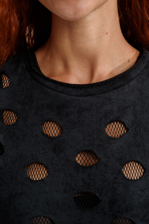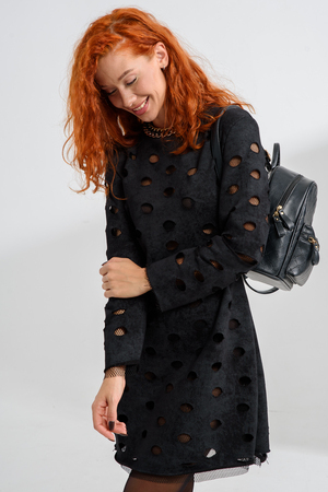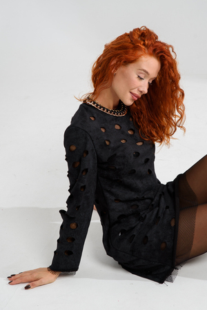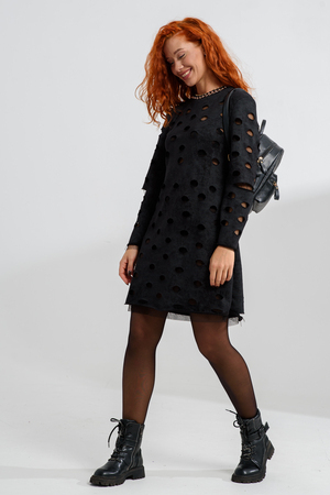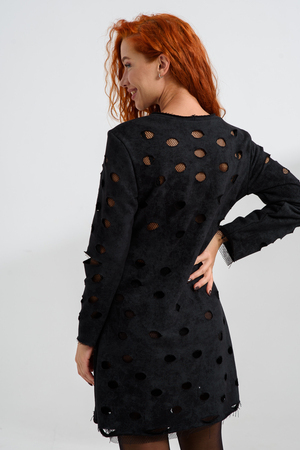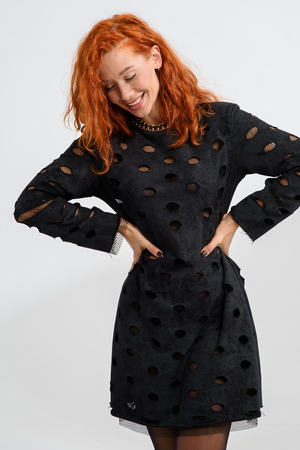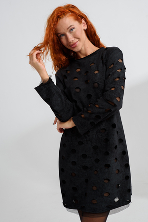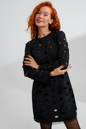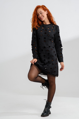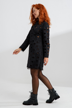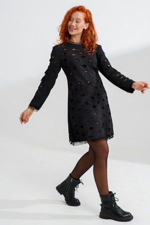 Платье молодежное. Полу прилегающего силуэта с длинными рукавами с подкладкой из сетки.