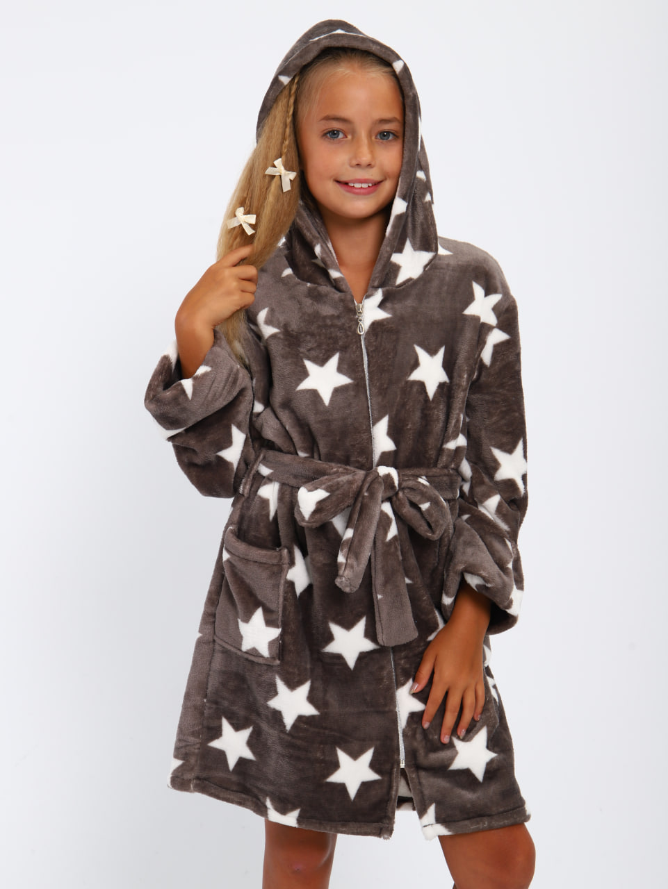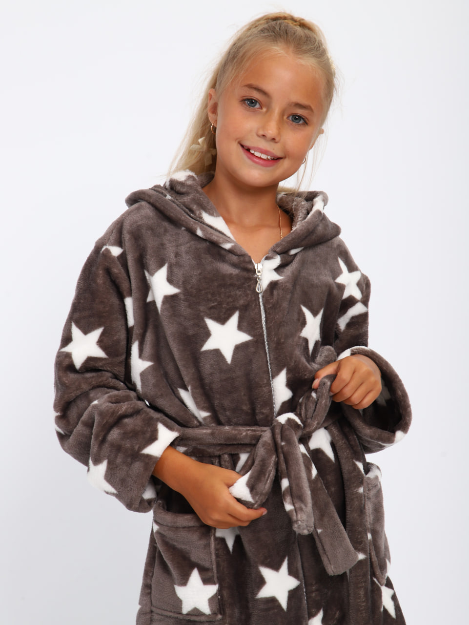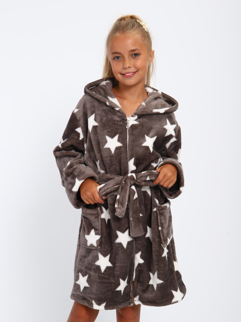 Мягкий детский халат из ткани экстрасофт подарит тепло и уют вашему малышу. Лёгкий, нежный и очень приятный на ощупь материал прекрасно сохраняет тепло и быстро сохнет, поэтому халатик удобно надевать после купания или просто дома для комфорта. Свободный крой не сковывает движений, капюшон защищает от прохлады, а пояс позволяет регулировать посадку. Яркие забавные принты делают модель ещё более привлекательной для детей и превращают её в любимую домашнюю одежду.