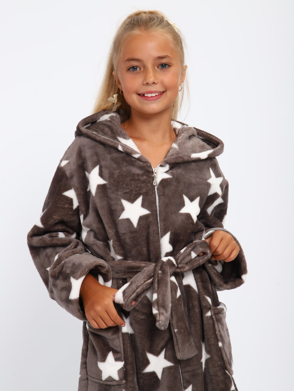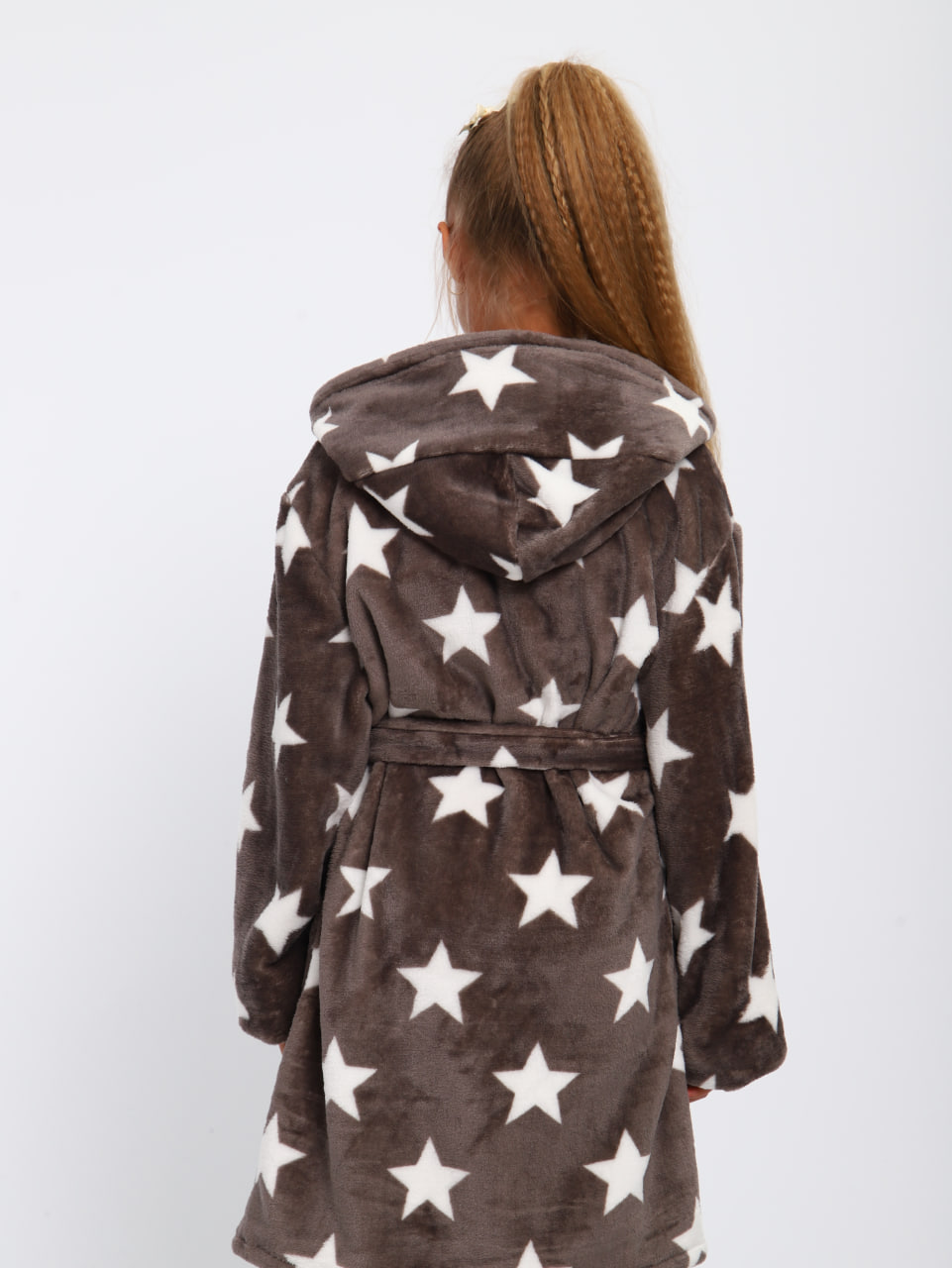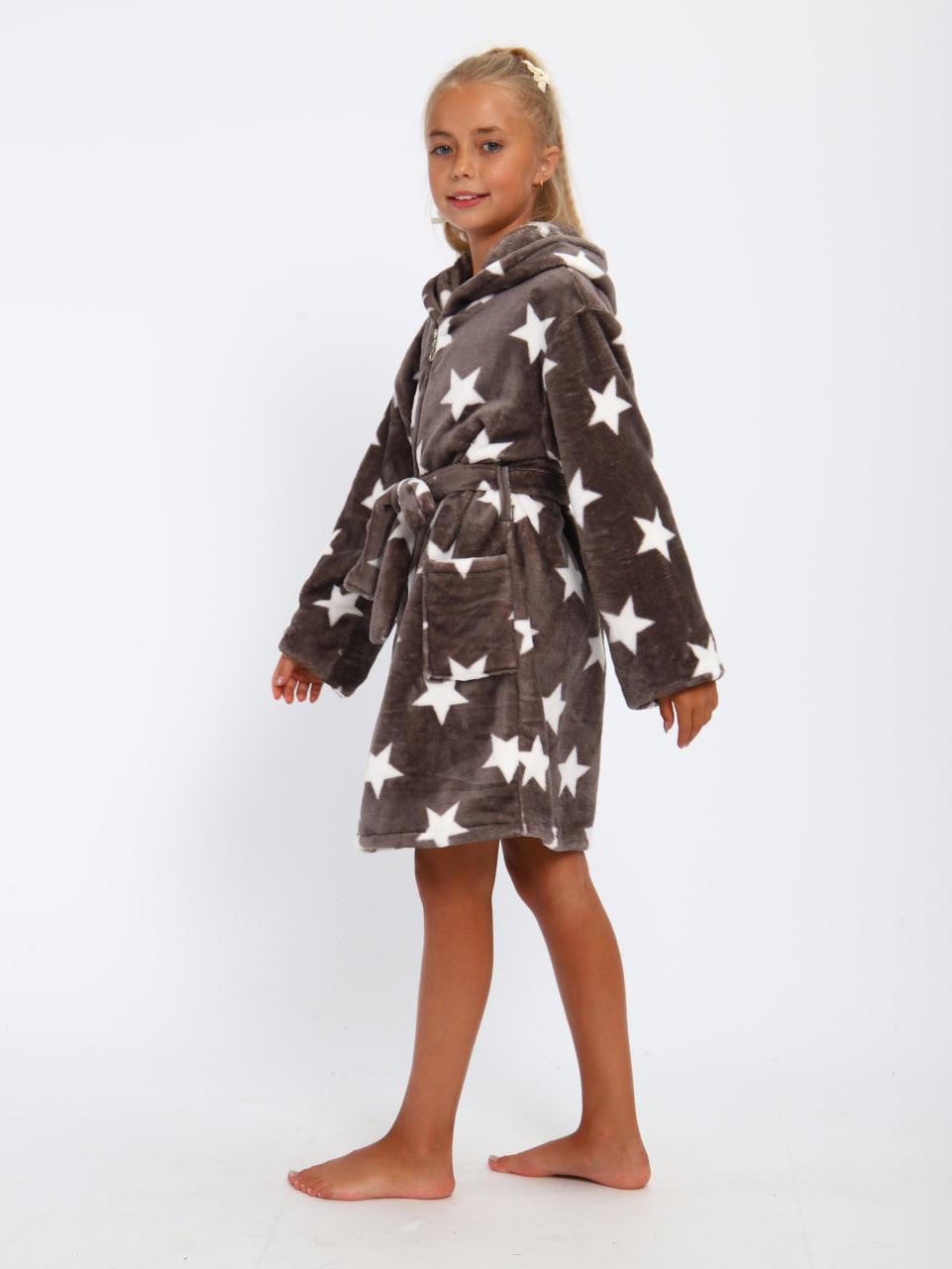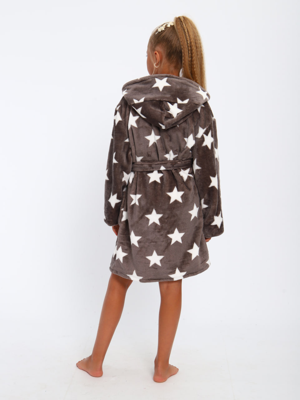 Мягкий детский халат из ткани экстрасофт подарит тепло и уют вашему малышу. Лёгкий, нежный и очень приятный на ощупь материал прекрасно сохраняет тепло и быстро сохнет, поэтому халатик удобно надевать после купания или просто дома для комфорта. Свободный крой не сковывает движений, капюшон защищает от прохлады, а пояс позволяет регулировать посадку. Яркие забавные принты делают модель ещё более привлекательной для детей и превращают её в любимую домашнюю одежду.