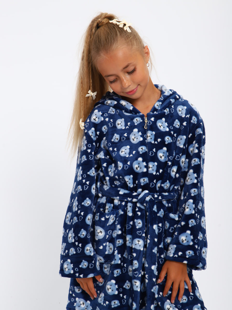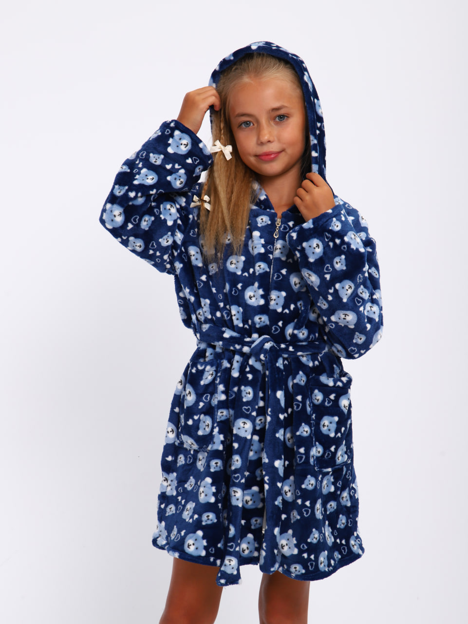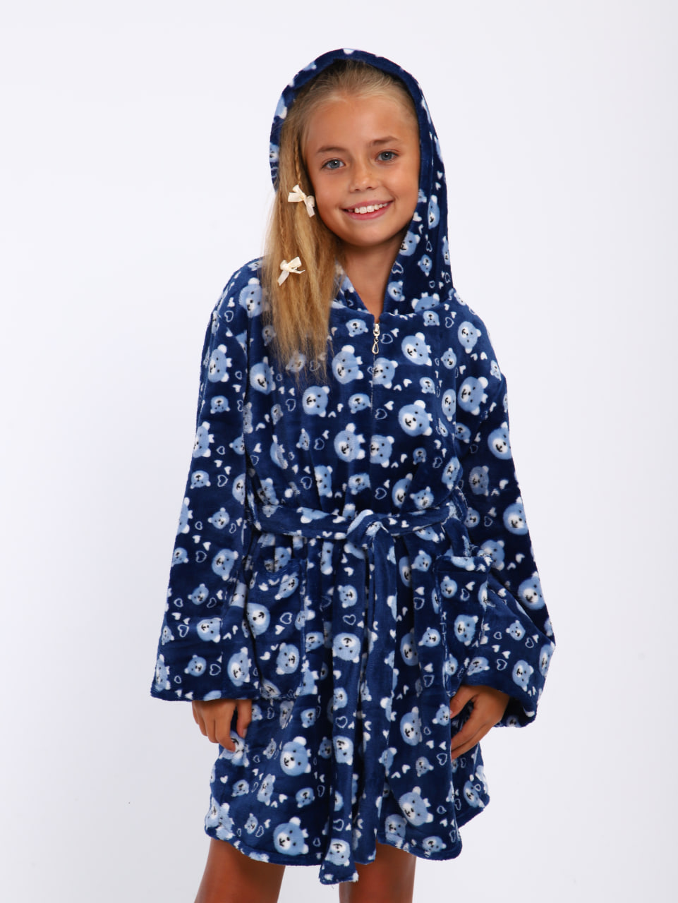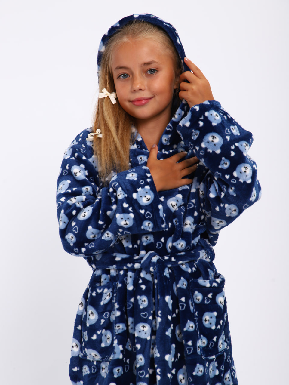 Мягкий детский халат из ткани экстрасофт подарит тепло и уют вашему малышу. Лёгкий, нежный и очень приятный на ощупь материал прекрасно сохраняет тепло и быстро сохнет, поэтому халатик удобно надевать после купания или просто дома для комфорта. Свободный крой не сковывает движений, капюшон защищает от прохлады, а пояс позволяет регулировать посадку. Яркие забавные принты делают модель ещё более привлекательной для детей и превращают её в любимую домашнюю одежду.