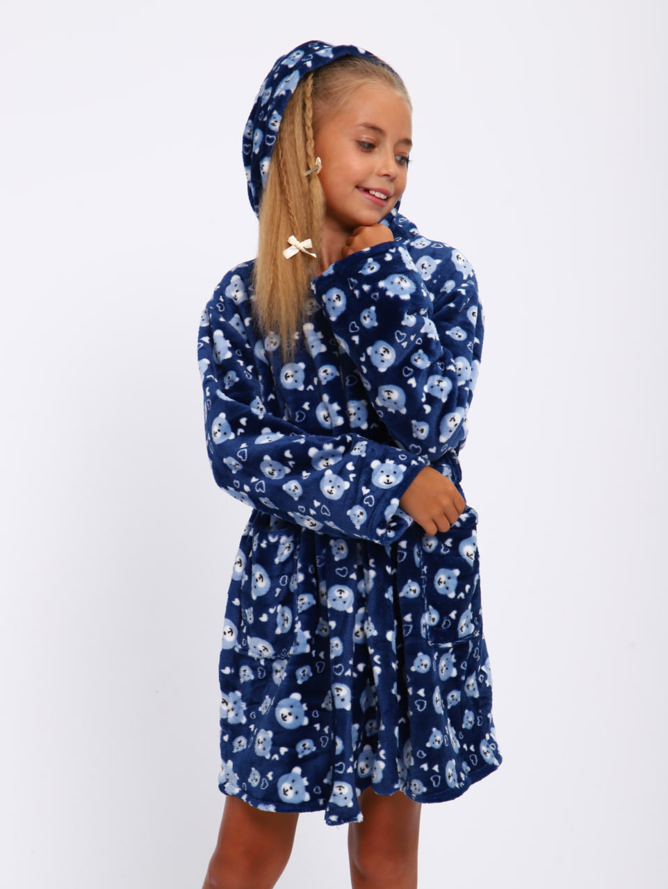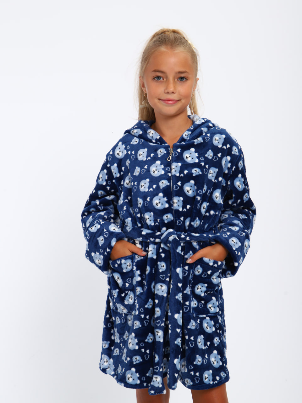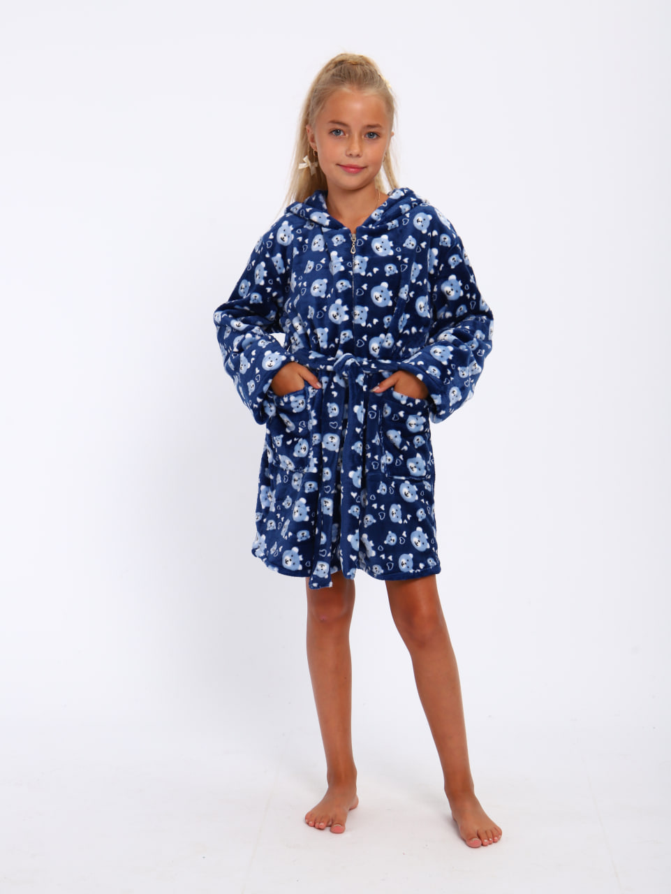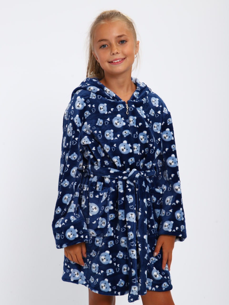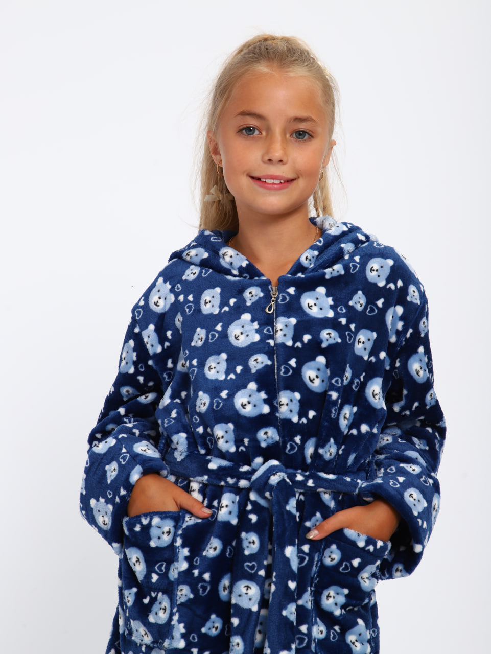 Мягкий детский халат из ткани экстрасофт подарит тепло и уют вашему малышу. Лёгкий, нежный и очень приятный на ощупь материал прекрасно сохраняет тепло и быстро сохнет, поэтому халатик удобно надевать после купания или просто дома для комфорта. Свободный крой не сковывает движений, капюшон защищает от прохлады, а пояс позволяет регулировать посадку. Яркие забавные принты делают модель ещё более привлекательной для детей и превращают её в любимую домашнюю одежду.