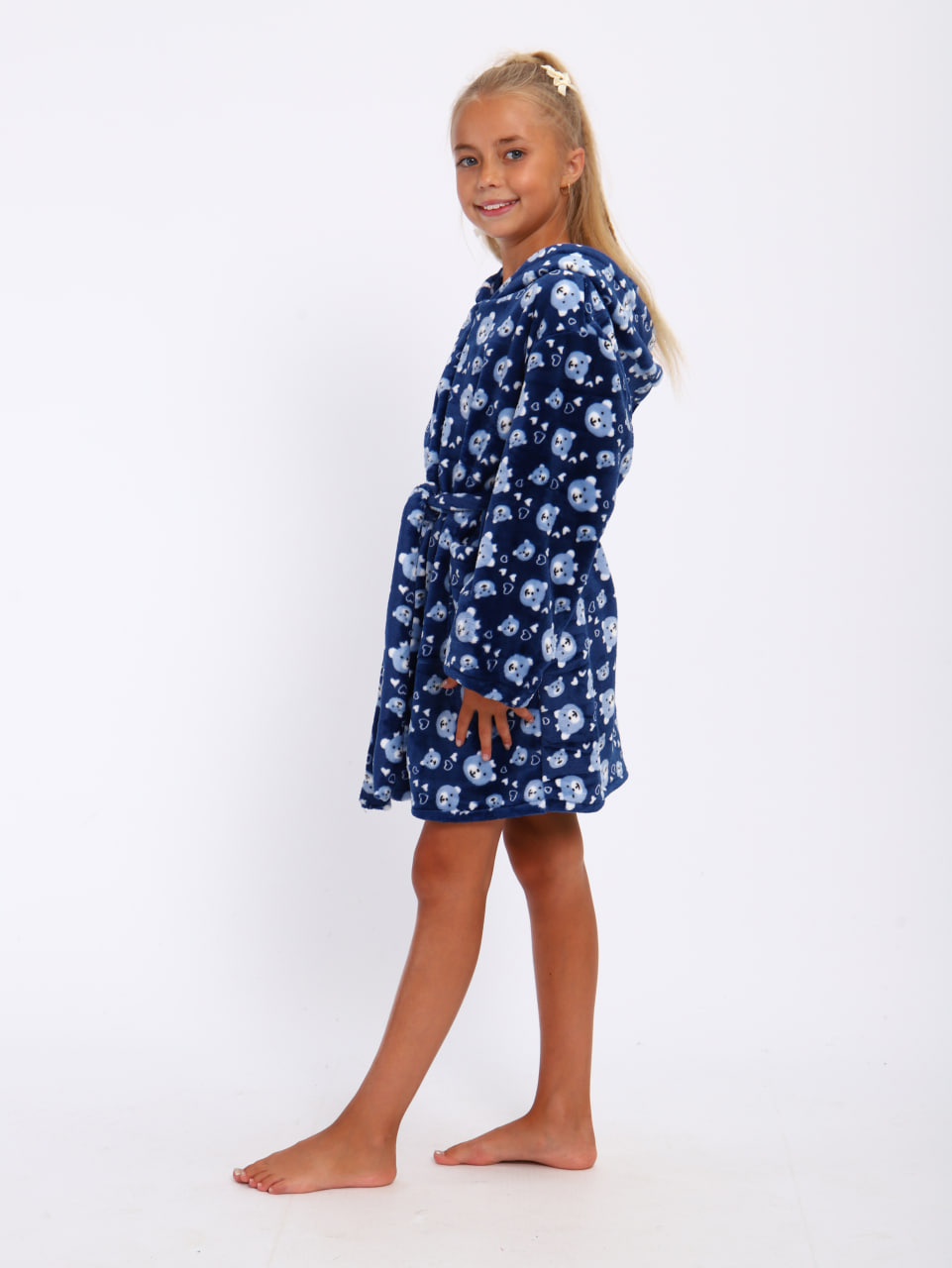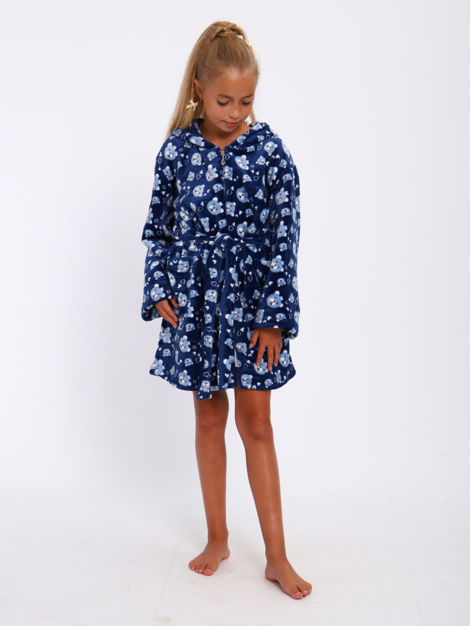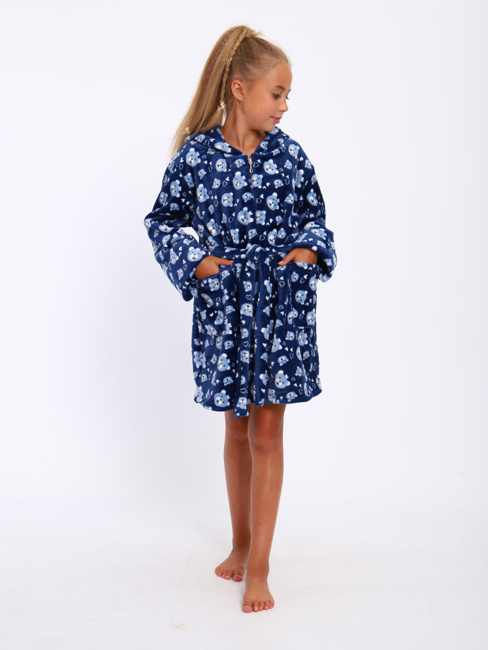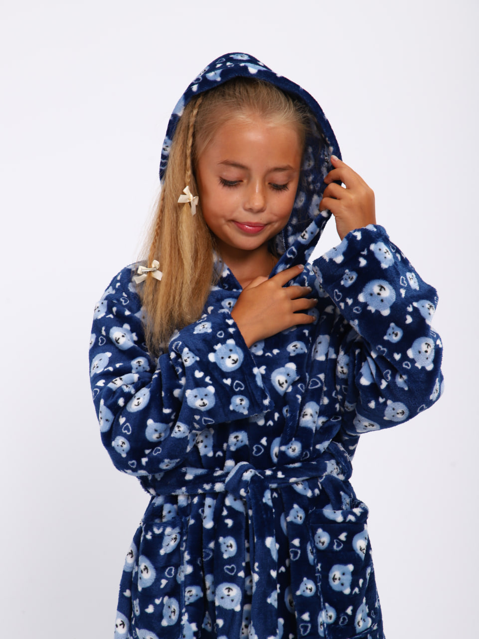 Мягкий детский халат из ткани экстрасофт подарит тепло и уют вашему малышу. Лёгкий, нежный и очень приятный на ощупь материал прекрасно сохраняет тепло и быстро сохнет, поэтому халатик удобно надевать после купания или просто дома для комфорта. Свободный крой не сковывает движений, капюшон защищает от прохлады, а пояс позволяет регулировать посадку. Яркие забавные принты делают модель ещё более привлекательной для детей и превращают её в любимую домашнюю одежду.