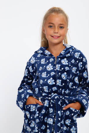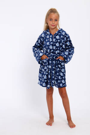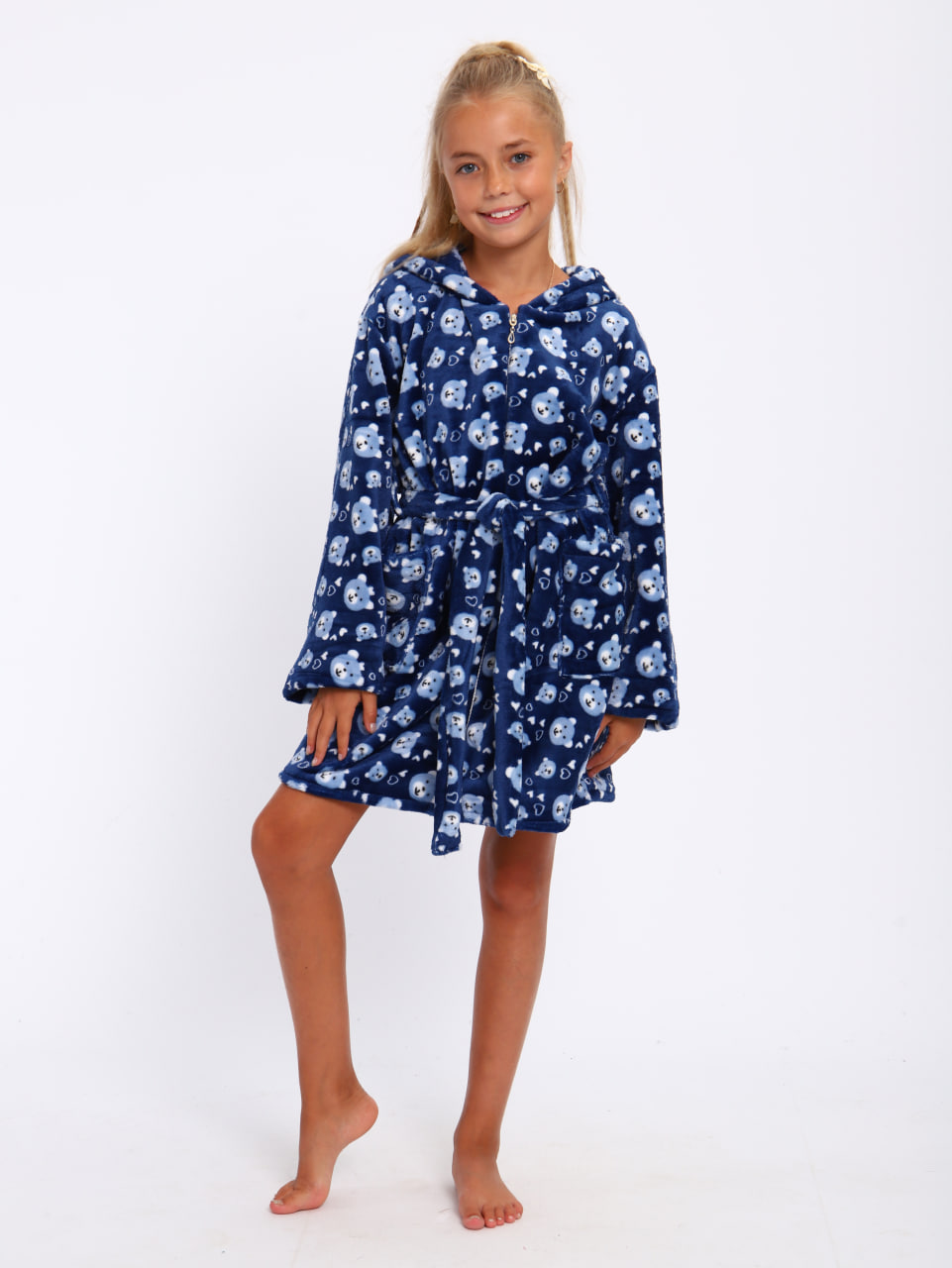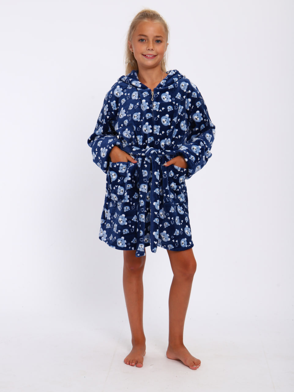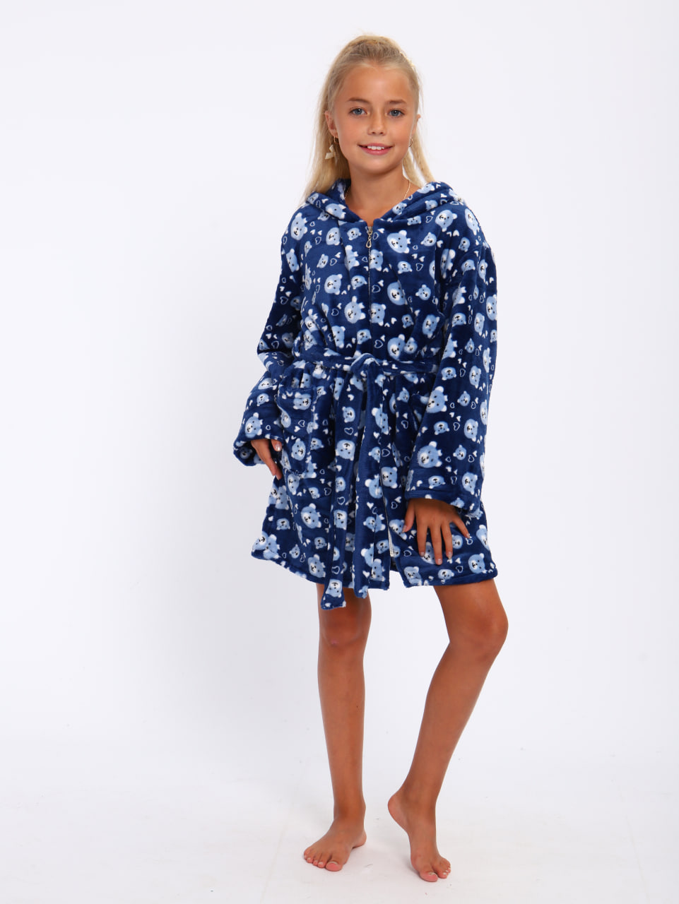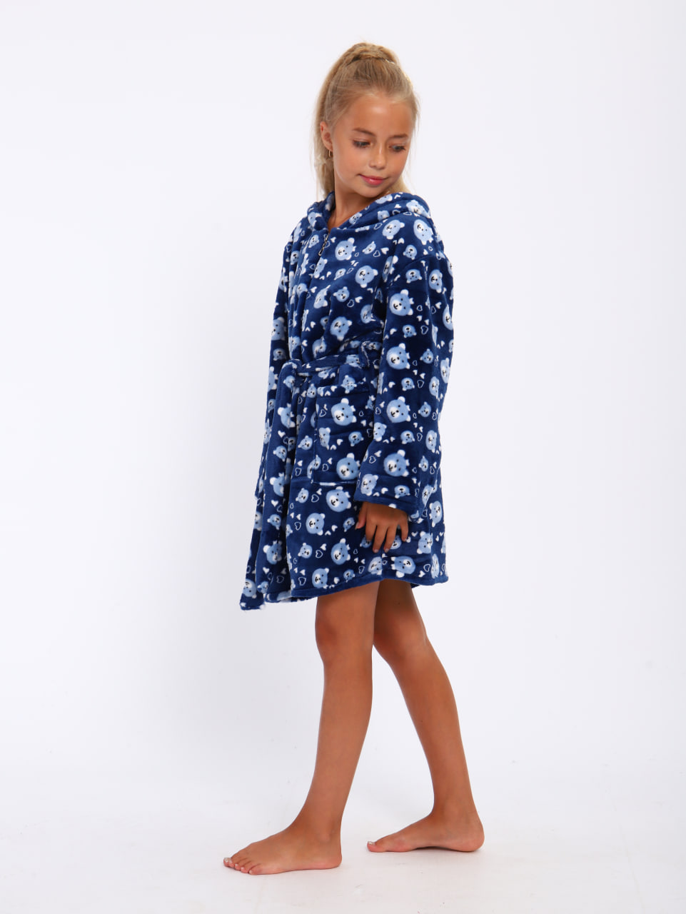 Мягкий детский халат из ткани экстрасофт подарит тепло и уют вашему малышу. Лёгкий, нежный и очень приятный на ощупь материал прекрасно сохраняет тепло и быстро сохнет, поэтому халатик удобно надевать после купания или просто дома для комфорта. Свободный крой не сковывает движений, капюшон защищает от прохлады, а пояс позволяет регулировать посадку. Яркие забавные принты делают модель ещё более привлекательной для детей и превращают её в любимую домашнюю одежду.