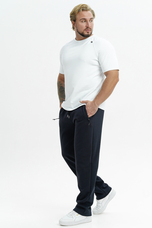 Утепленные мужские брюки из трикотажа с начесом, выполнены из качественного материала. Пояс на резинке со шнурком, что позволяет регулировать объем и посадку, карманы по бокам на молнии. Свободный силуэт не сковывает движения, а плотный начес согреет даже в самые холодные дни. Штаны свободного кроя - отличное решение для тех, кто предпочетает удобство и современный актуальный дизайн. Брюки отлично подойдут для прогулок, отдыха, дома.