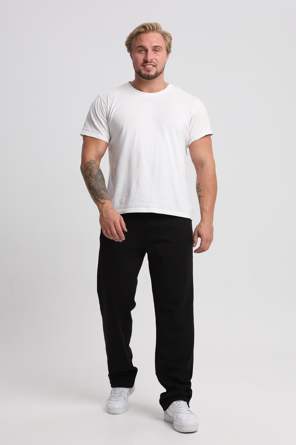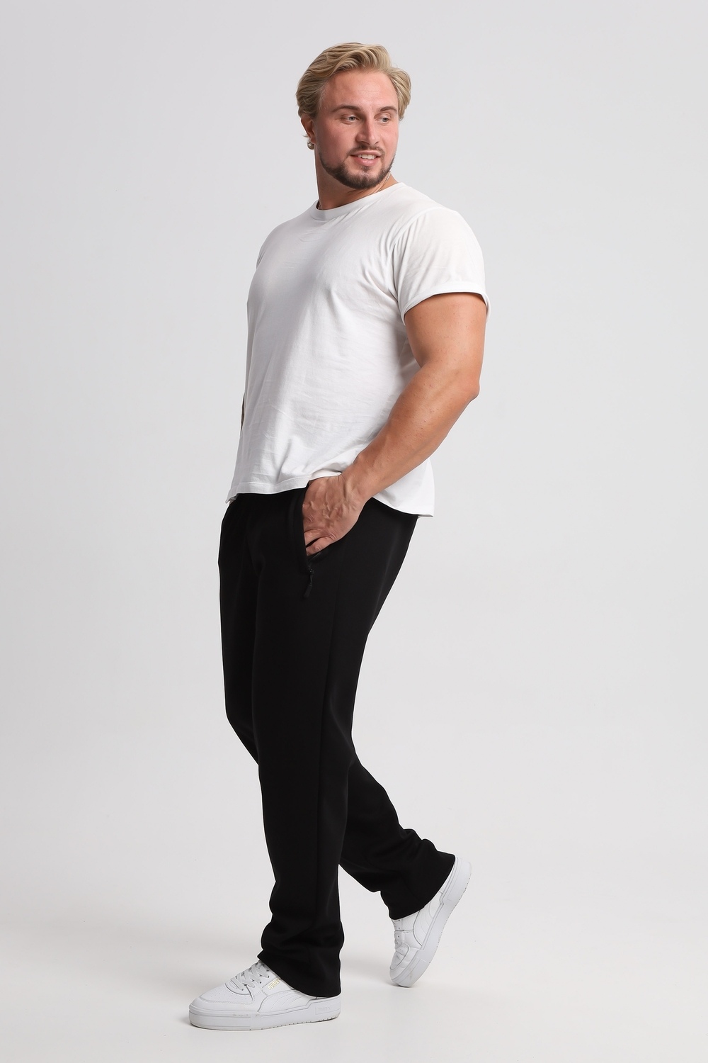 Утепленные мужские брюки из трикотажа с начесом, выполнены из качественного материала. Пояс на резинке со шнурком, что позволяет регулировать объем и посадку, карманы по бокам на молнии. Свободный силуэт не сковывает движения, а плотный начес согреет даже в самые холодные дни. Штаны свободного кроя - отличное решение для тех, кто предпочетает удобство и современный актуальный дизайн. Брюки отлично подойдут для прогулок, отдыха, дома.