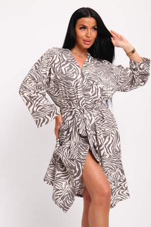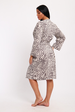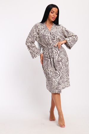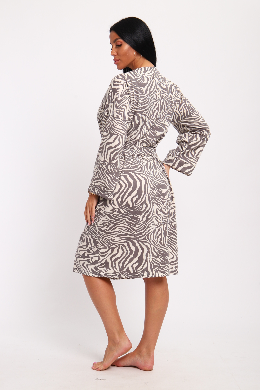 Халат женский запашной свободного кроя, с карманами и поясом. Длинный рукав на спущенном плече.