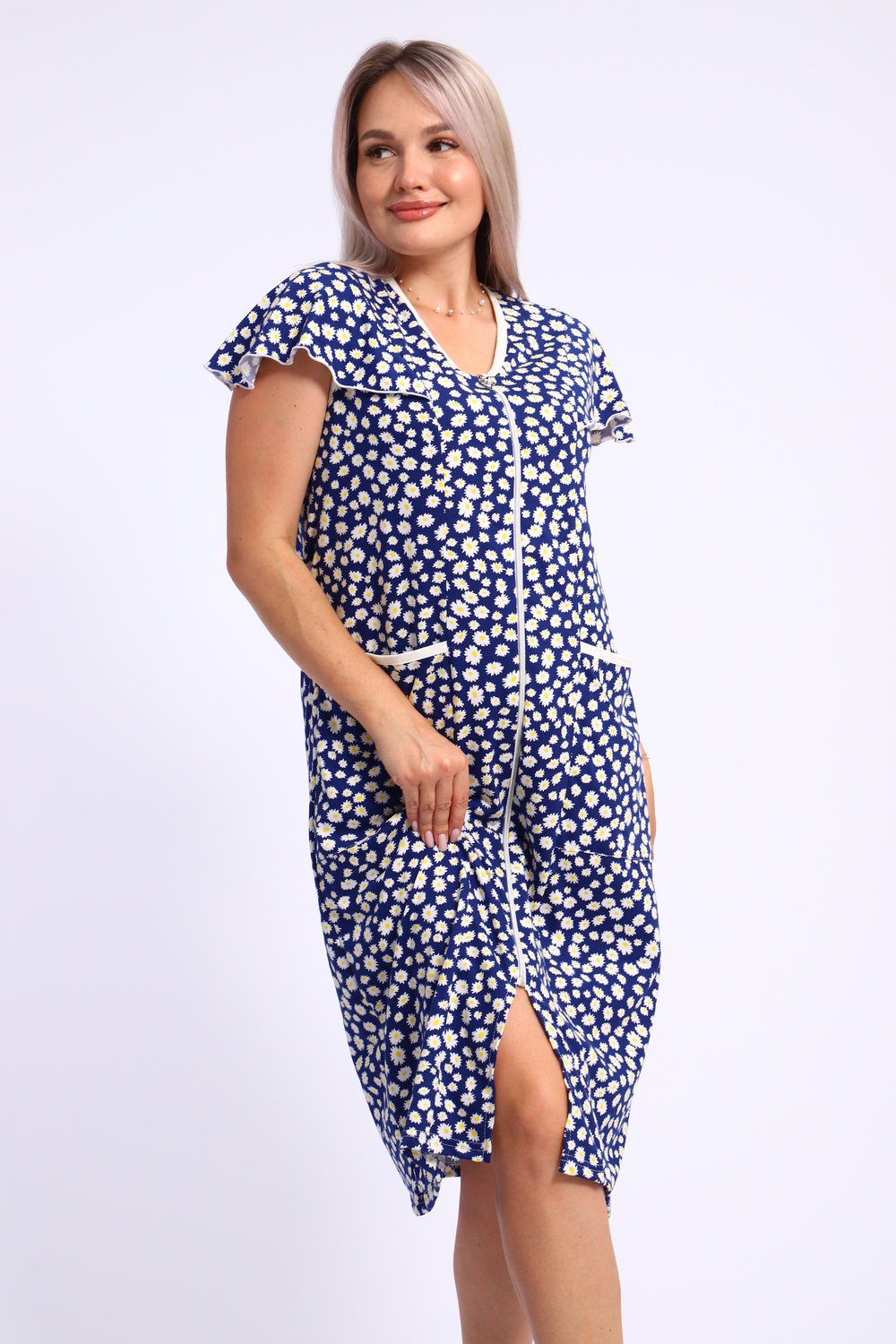 Халат женский полуприлегающего силуэта на молнии, с карманами Рукав крылышко.
