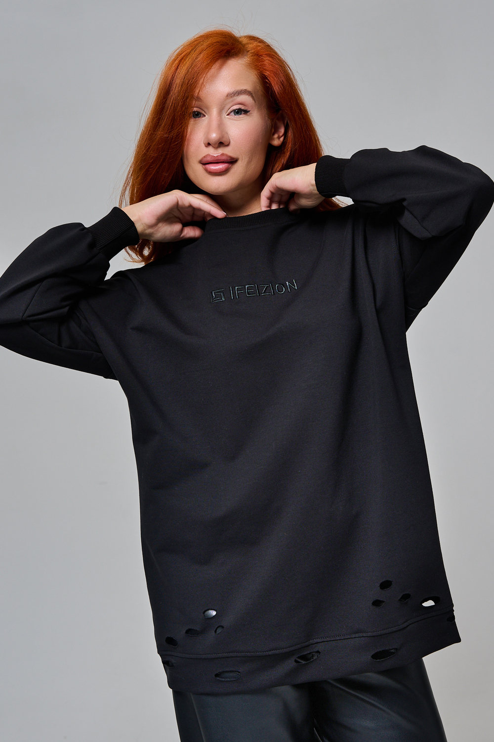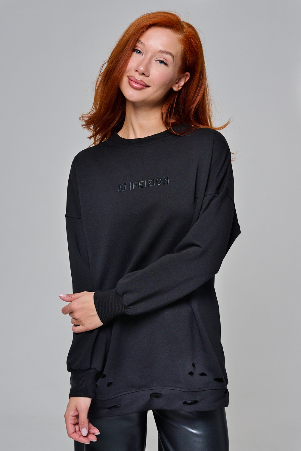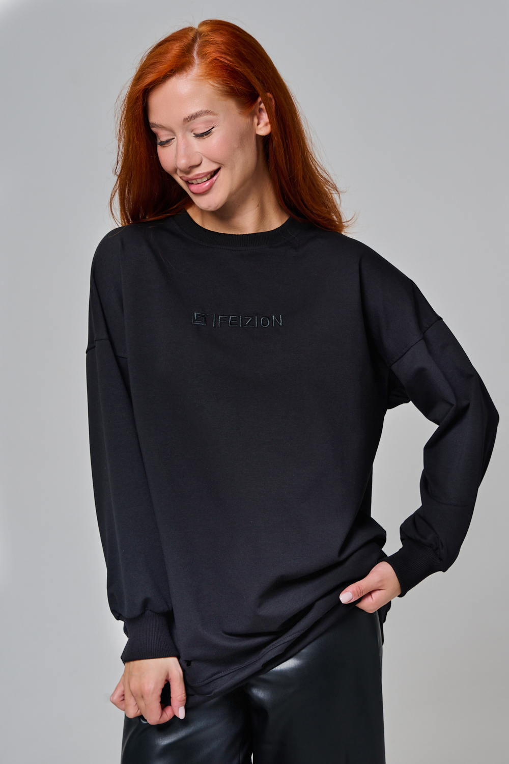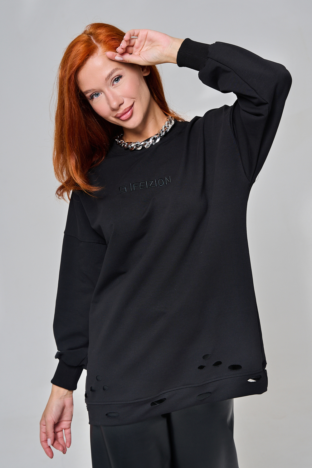 Толстовка свободного кроя - оверсайз с вышивкой на полочке.