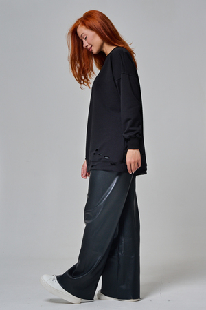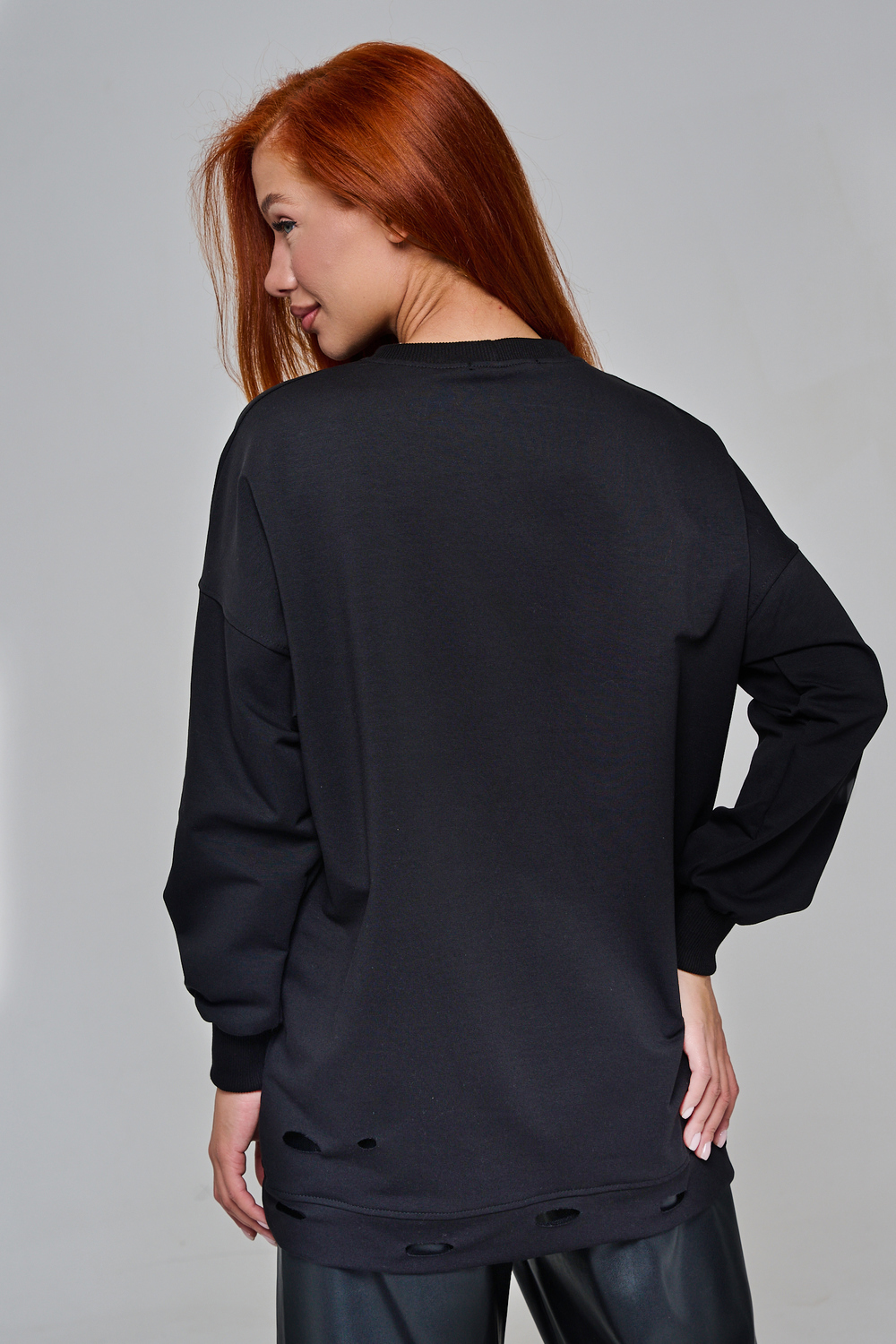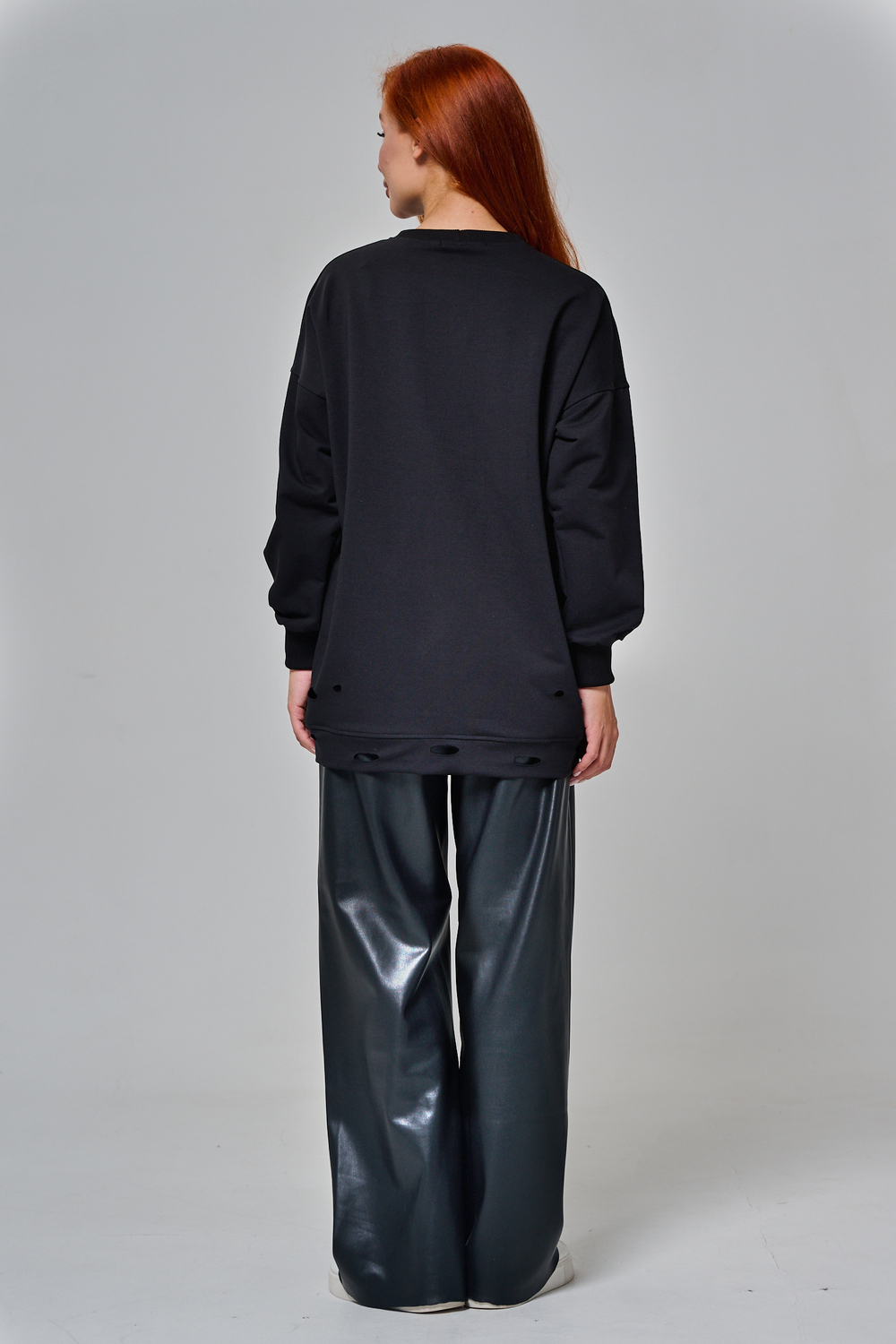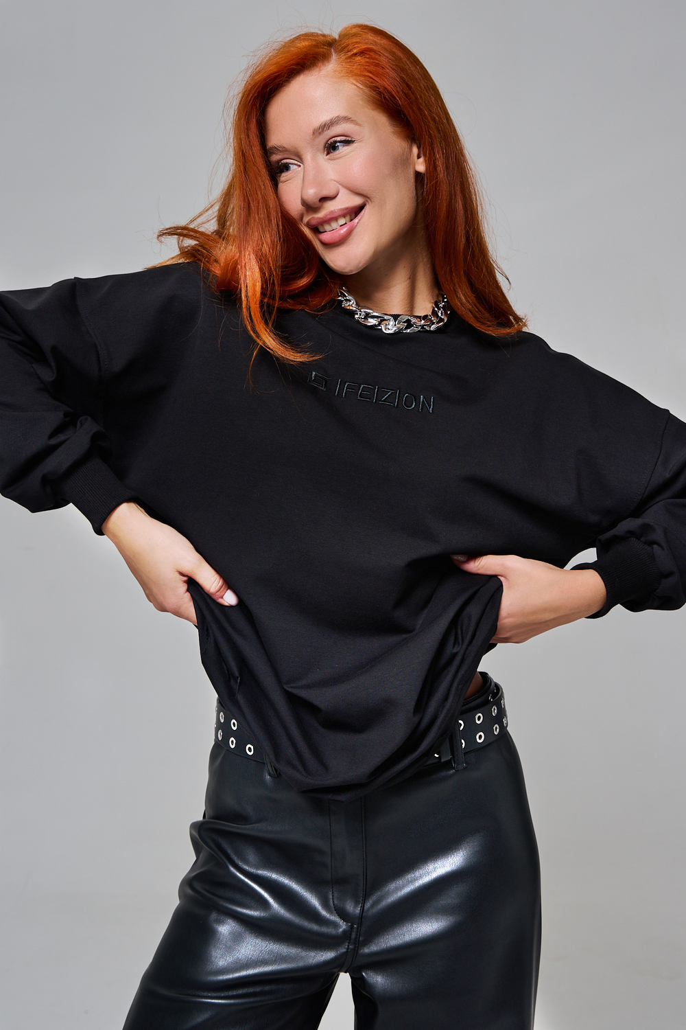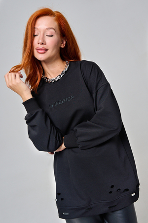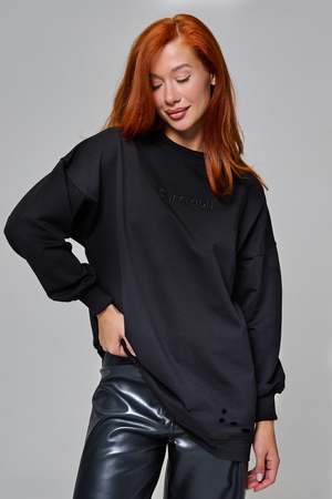 Толстовка свободного кроя - оверсайз с вышивкой на полочке.