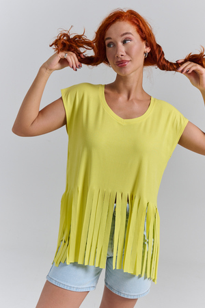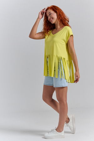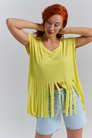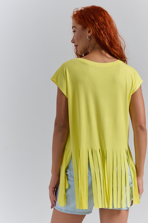 Футболка оверсайз женская с бахромой прекрасно подойдет для повседневной носки и для создания стильного образа.