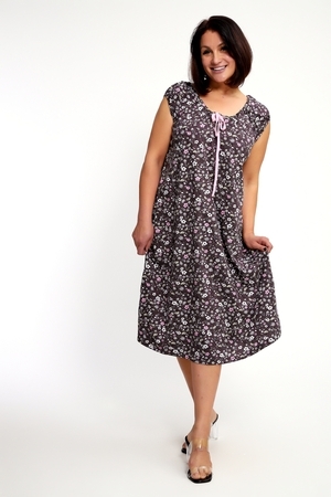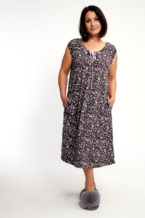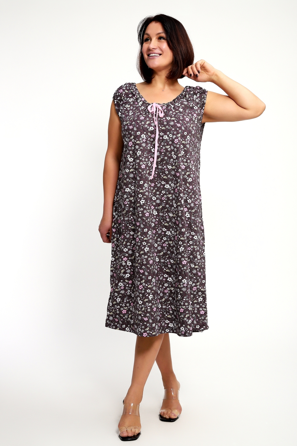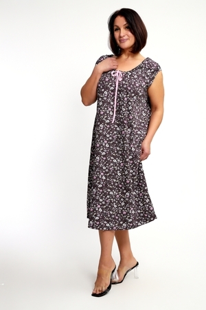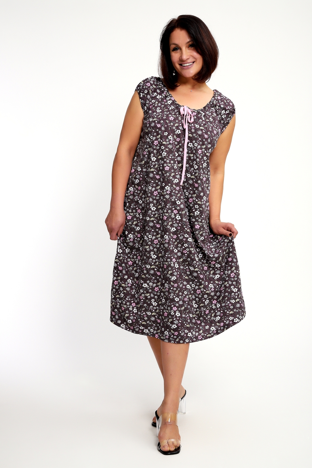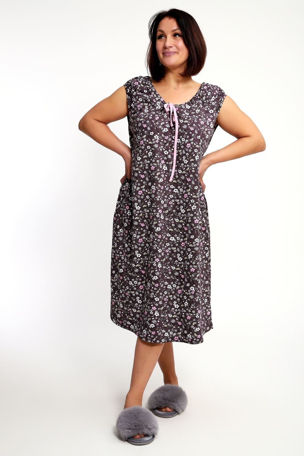 Платье женское с коротким рукавом и кулиской по горловине. Данная модель выполнена из трикотажного полотна кулирка ( хлопок 100%). Отличная модель для дома, свободный крой не будет стеснять ваши движения, очень комфортная и приятная к телу ткань порадует вас.