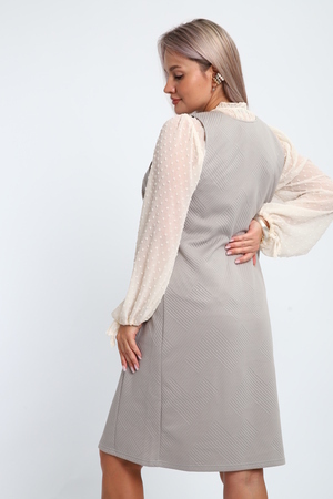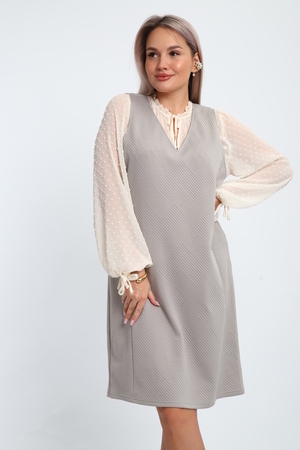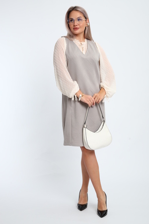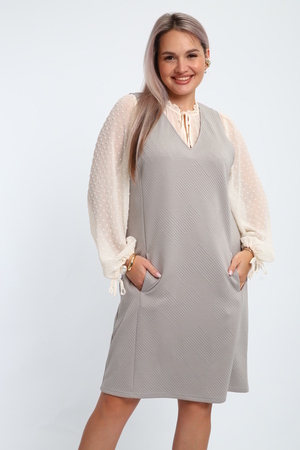 Создайте свой неповторимый образ с помощью универсального сарафана, к которому можно подобрать разнообразные блузки, водолазки, свитшоты. Сарафан прямого кроя, слегка притален, благодаря отрезному бочку, аккуратная V-образная горловина обработана обтачкой, в швах притачивания бочков имеются внутренние карманы. Пройма достаточно глубокая, чтобы не стеснять рукав блузки, длина до середины колена. Лаконичность деталей кроя подчеркивает стиль и элегантность изделия. Свободный крой сарафана и воздухопроницаемость ткани обеспечивают комфорт и свободу движения, что делает его идеальным для повседневного ношения. Модная геометрическая рельефная фактура ткани придает изделию стильный и современный образ. Базовые расцветки сарафана помогут с легкостью подобрать к нему пару. На работе, в офисе, на прогулке, на празднике вы будете чувствовать себя комфортно и уверенно.