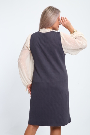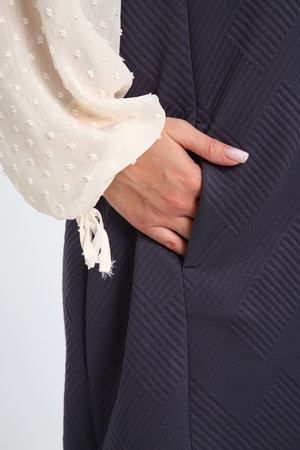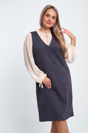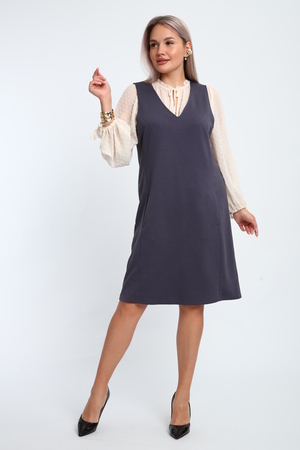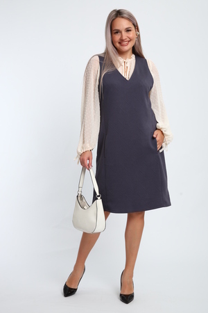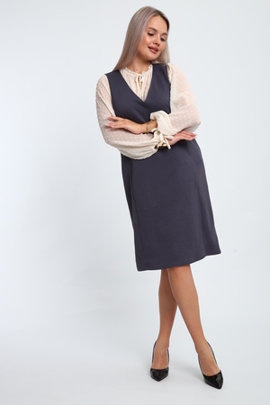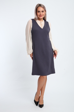 Создайте свой неповторимый образ с помощью универсального сарафана, к которому можно подобрать разнообразные блузки, водолазки, свитшоты. Сарафан прямого кроя, слегка притален, благодаря отрезному бочку, аккуратная V-образная горловина обработана обтачкой, в швах притачивания бочков имеются внутренние карманы. Пройма достаточно глубокая, чтобы не стеснять рукав блузки, длина до середины колена. Лаконичность деталей кроя подчеркивает стиль и элегантность изделия. Свободный крой сарафана и воздухопроницаемость ткани обеспечивают комфорт и свободу движения, что делает его идеальным для повседневного ношения. Модная геометрическая рельефная фактура ткани придает изделию стильный и современный образ. Базовые расцветки сарафана помогут с легкостью подобрать к нему пару. На работе, в офисе, на прогулке, на празднике вы будете чувствовать себя комфортно и уверенно.