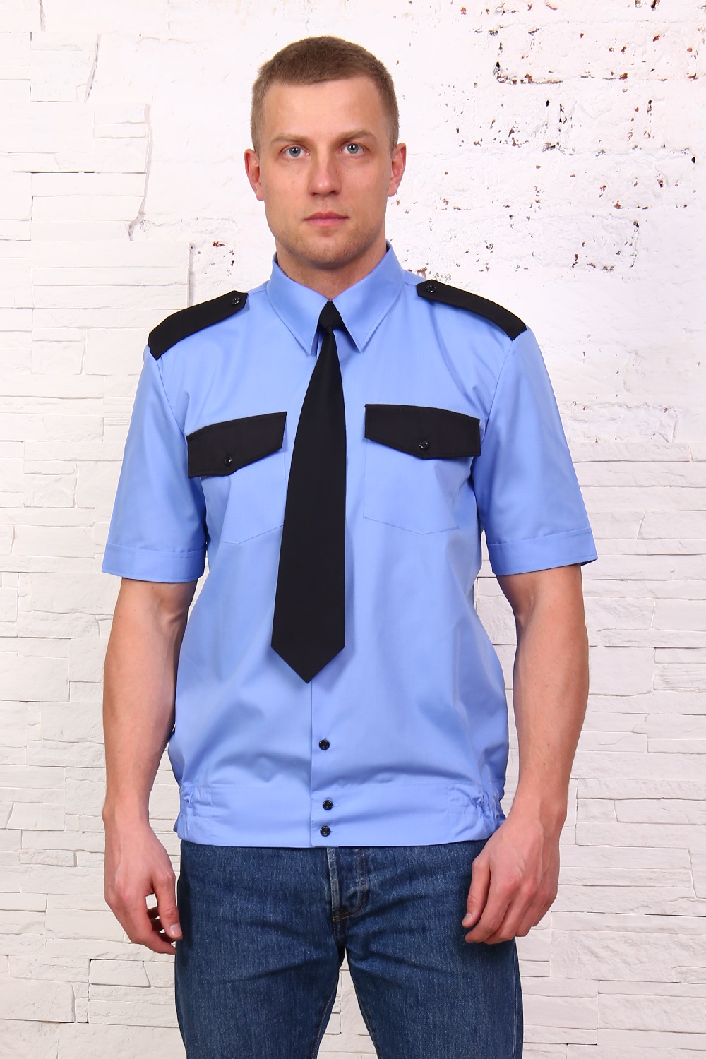 Рубашка охранника мужская, на поясе, короткий рукав, два нагрудных кармана, погоны. Ткань - тиси. Легко утюжится, низкая сминаемость, износостойкая ткань.