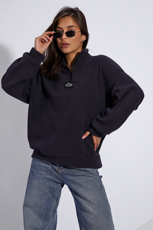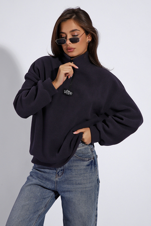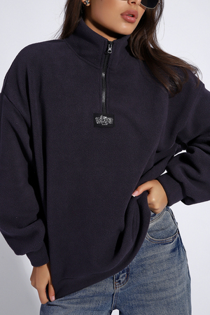 Уютная теплая толстовка из мягкого флиса. Воротник стойка, застежка молния-трактор, контрастная нашивка. Универсальный свободный крой оверсайз. Манжеты на рукавах и по низу изделия. На модели изделие 46-48 размера (параметры модели: рост 167 см., ОГ 85 см., ОТ 60 см., ОБ 89 см.)