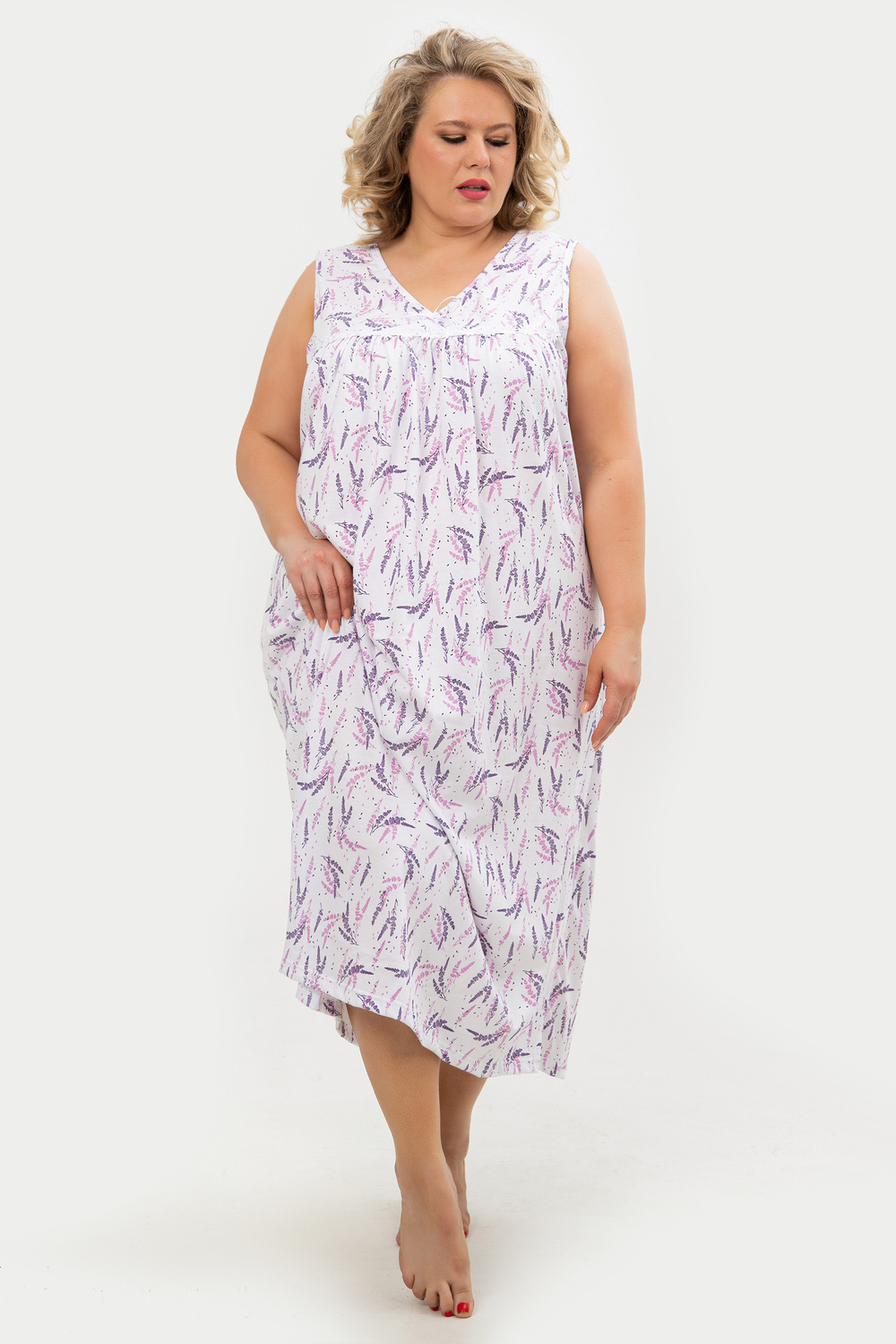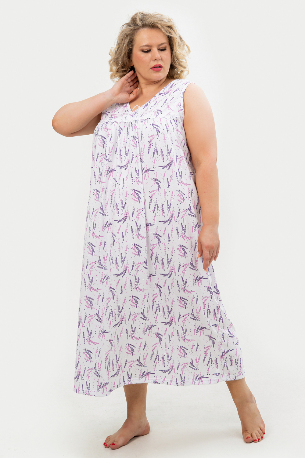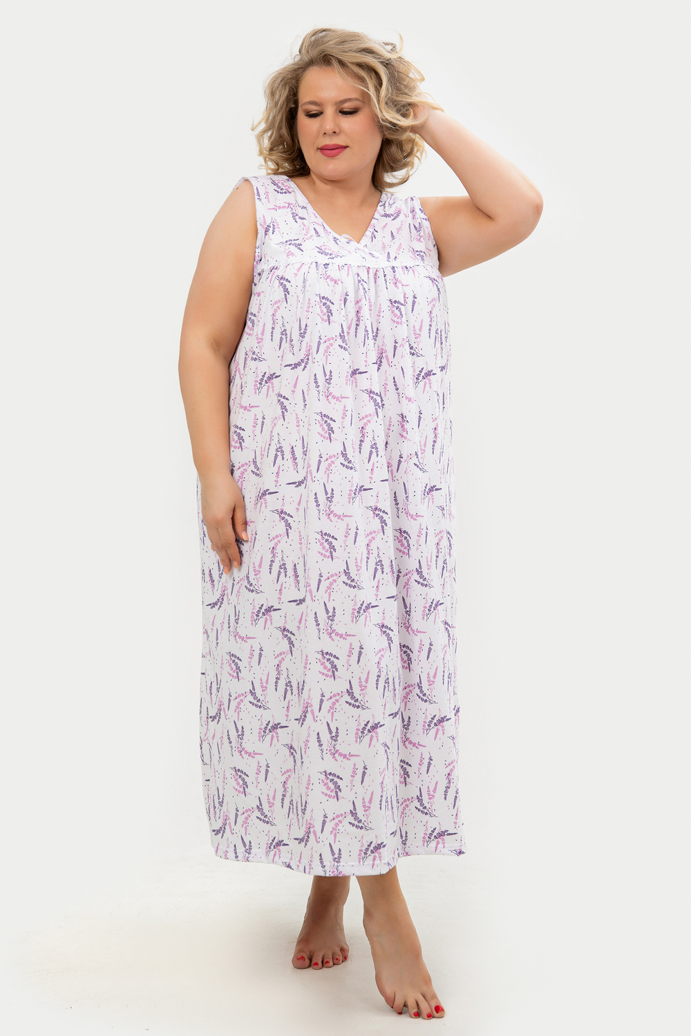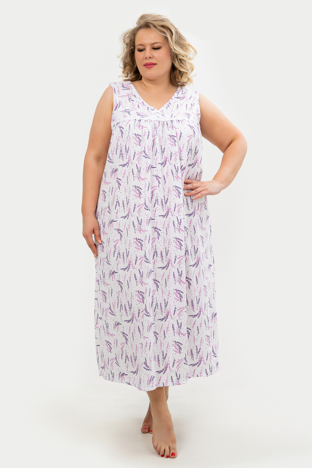 Эта красивая ночная сорочка создана для женщин, ценящих комфорт и стиль. Изготовленная из мягкого хлопка, она идеально подходит для сна и домашнего отдыха. Благодаря качественному ивановскому трикотажу изделие обеспечивает уют и приятные тактильные ощущения. Свободный крой не сковывает движений, что делает модель удобной для повседневного использования. Сорочка подойдет для полных женщин и беременных, а также станет отличным выбором для кормящих мам благодаря функциональному дизайну. Она также отлично справится со своей ролью в роддоме, обеспечивая максимальное удобство в важные моменты жизни. Ткань дышащая и легкая, что гарантирует комфорт даже в жаркую погоду. Ночнушка дополнена нежным кружевом, которое придает ей элегантности и женственности. Длинная длина изделия создает ощущение уюта и защищенности во время сна. Этот вариант станет прекрасным подарком для бабушки или другой близкой женщины, ведь он сочетает практичность с эстетикой. Хлопковый материал отличается высокой износостойкостью и гипоаллергенными свойствами, делая сорочку безопасной даже для самой чувствительной кожи. Трикотажное полотно обеспечивает свободу движений, не стесняя фигуру. Удобный фасон особенно актуален для женщин больших размеров – одежда садится по фигуре максимально комфортно и непринужденно. Эта домашняя хлопковая ночнушка создана с учетом всех особенностей женской фигуры: она универсальна и подходит для самых разных ситуаций. Комфортный крой гармонично сочетается с классическим дизайном – простота линий дополняется утонченными элементами отделки. Если вы ищете свободную одежду для сна или приятного вечера дома, эта сорочка станет отличным выбором!