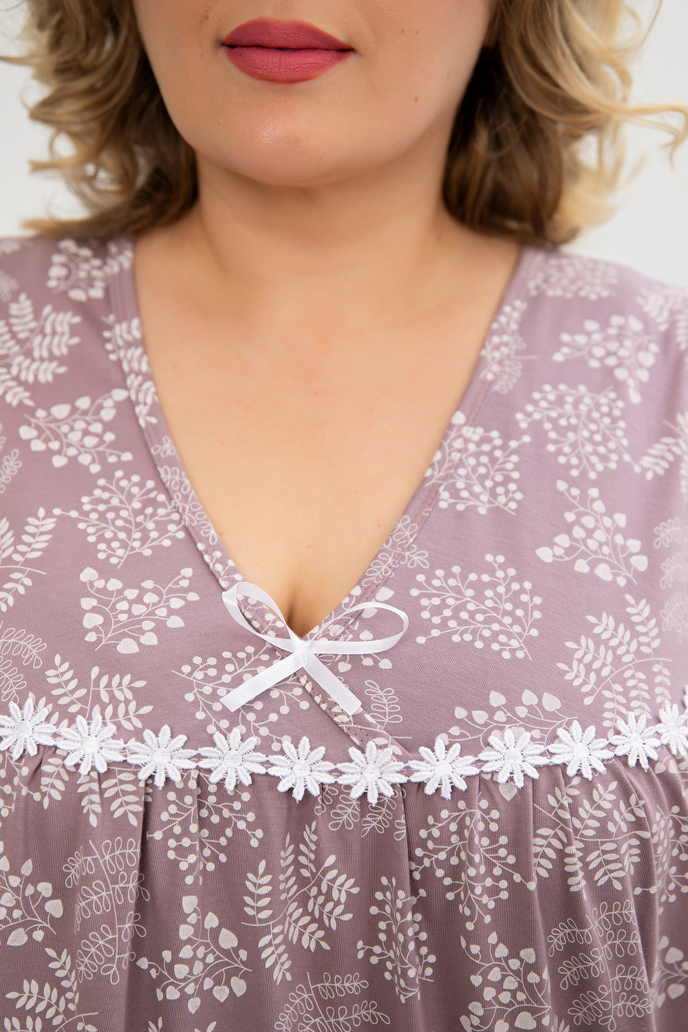 Эта красивая ночная сорочка создана для женщин, ценящих комфорт и стиль. Изготовленная из мягкого хлопка, она идеально подходит для сна и домашнего отдыха. Благодаря качественному ивановскому трикотажу изделие обеспечивает уют и приятные тактильные ощущения. Свободный крой не сковывает движений, что делает модель удобной для повседневного использования. Сорочка подойдет для полных женщин и беременных, а также станет отличным выбором для кормящих мам благодаря функциональному дизайну. Она также отлично справится со своей ролью в роддоме, обеспечивая максимальное удобство в важные моменты жизни. Ткань дышащая и легкая, что гарантирует комфорт даже в жаркую погоду. Ночнушка дополнена нежным кружевом, которое придает ей элегантности и женственности. Длинная длина изделия создает ощущение уюта и защищенности во время сна. Этот вариант станет прекрасным подарком для бабушки или другой близкой женщины, ведь он сочетает практичность с эстетикой. Хлопковый материал отличается высокой износостойкостью и гипоаллергенными свойствами, делая сорочку безопасной даже для самой чувствительной кожи. Трикотажное полотно обеспечивает свободу движений, не стесняя фигуру. Удобный фасон особенно актуален для женщин больших размеров – одежда садится по фигуре максимально комфортно и непринужденно. Эта домашняя хлопковая ночнушка создана с учетом всех особенностей женской фигуры: она универсальна и подходит для самых разных ситуаций. Комфортный крой гармонично сочетается с классическим дизайном – простота линий дополняется утонченными элементами отделки. Если вы ищете свободную одежду для сна или приятного вечера дома, эта сорочка станет отличным выбором!