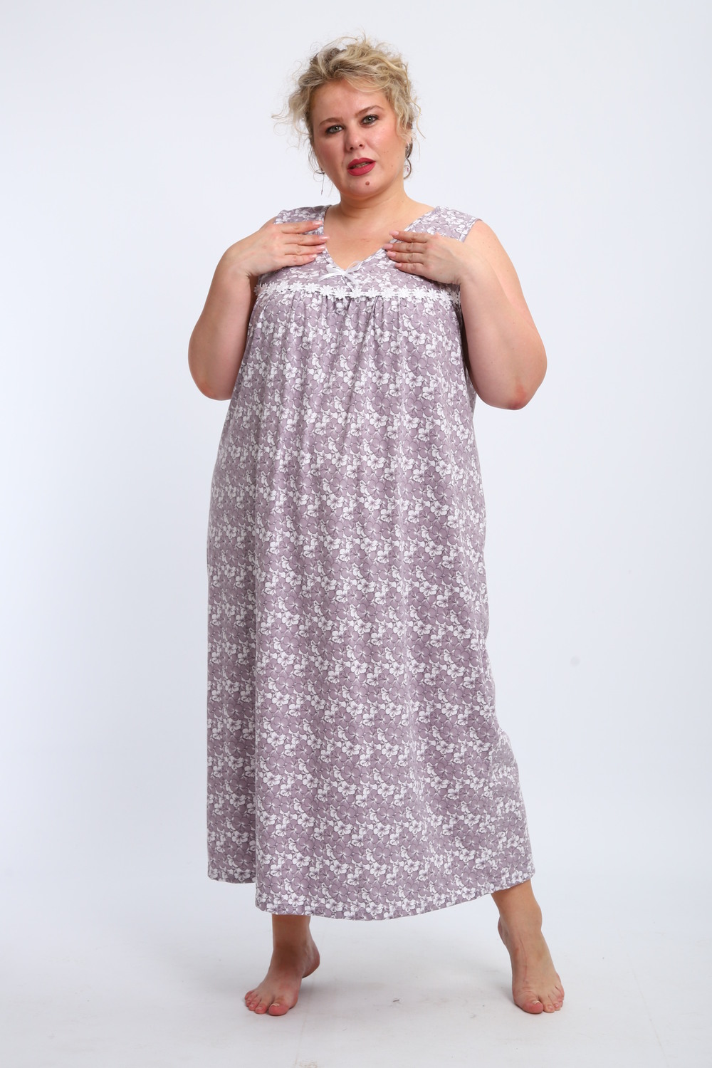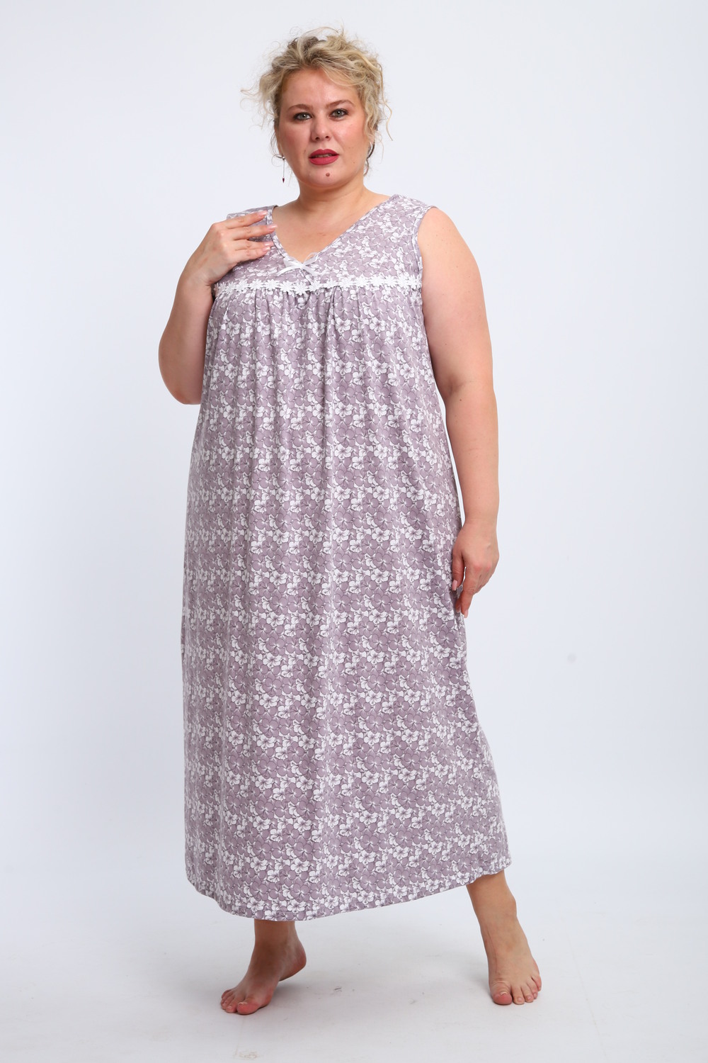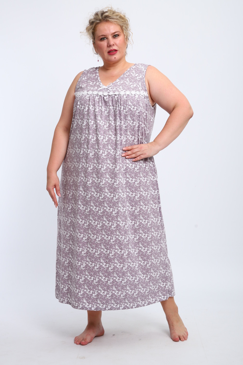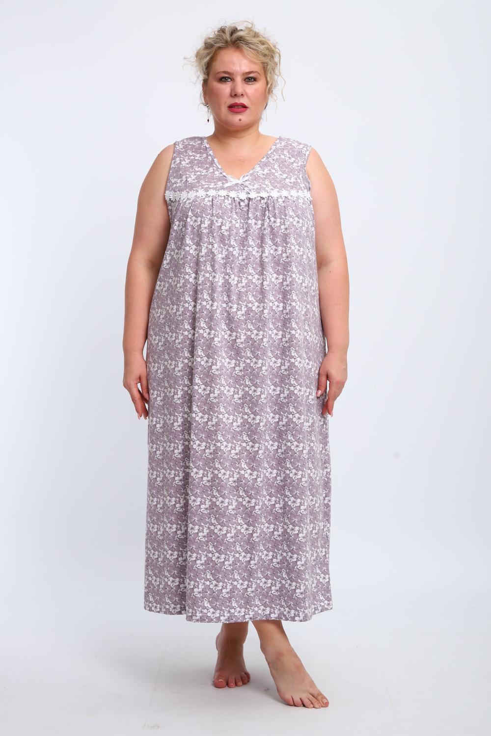 Эта красивая ночная сорочка создана для женщин, ценящих комфорт и стиль. Изготовленная из мягкого хлопка, она идеально подходит для сна и домашнего отдыха. Благодаря качественному ивановскому трикотажу изделие обеспечивает уют и приятные тактильные ощущения. Свободный крой не сковывает движений, что делает модель удобной для повседневного использования. Сорочка подойдет для полных женщин и беременных, а также станет отличным выбором для кормящих мам благодаря функциональному дизайну. Она также отлично справится со своей ролью в роддоме, обеспечивая максимальное удобство в важные моменты жизни. Ткань дышащая и легкая, что гарантирует комфорт даже в жаркую погоду. Ночнушка дополнена нежным кружевом, которое придает ей элегантности и женственности. Длинная длина изделия создает ощущение уюта и защищенности во время сна. Этот вариант станет прекрасным подарком для бабушки или другой близкой женщины, ведь он сочетает практичность с эстетикой. Хлопковый материал отличается высокой износостойкостью и гипоаллергенными свойствами, делая сорочку безопасной даже для самой чувствительной кожи. Трикотажное полотно обеспечивает свободу движений, не стесняя фигуру. Удобный фасон особенно актуален для женщин больших размеров – одежда садится по фигуре максимально комфортно и непринужденно. Эта домашняя хлопковая ночнушка создана с учетом всех особенностей женской фигуры: она универсальна и подходит для самых разных ситуаций. Комфортный крой гармонично сочетается с классическим дизайном – простота линий дополняется утонченными элементами отделки. Если вы ищете свободную одежду для сна или приятного вечера дома, эта сорочка станет отличным выбором!
