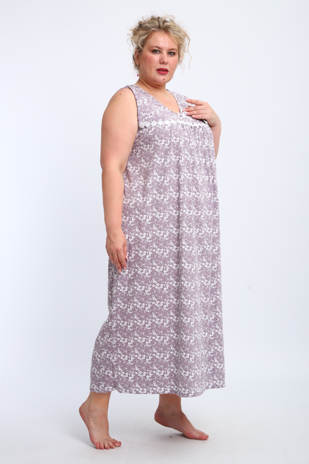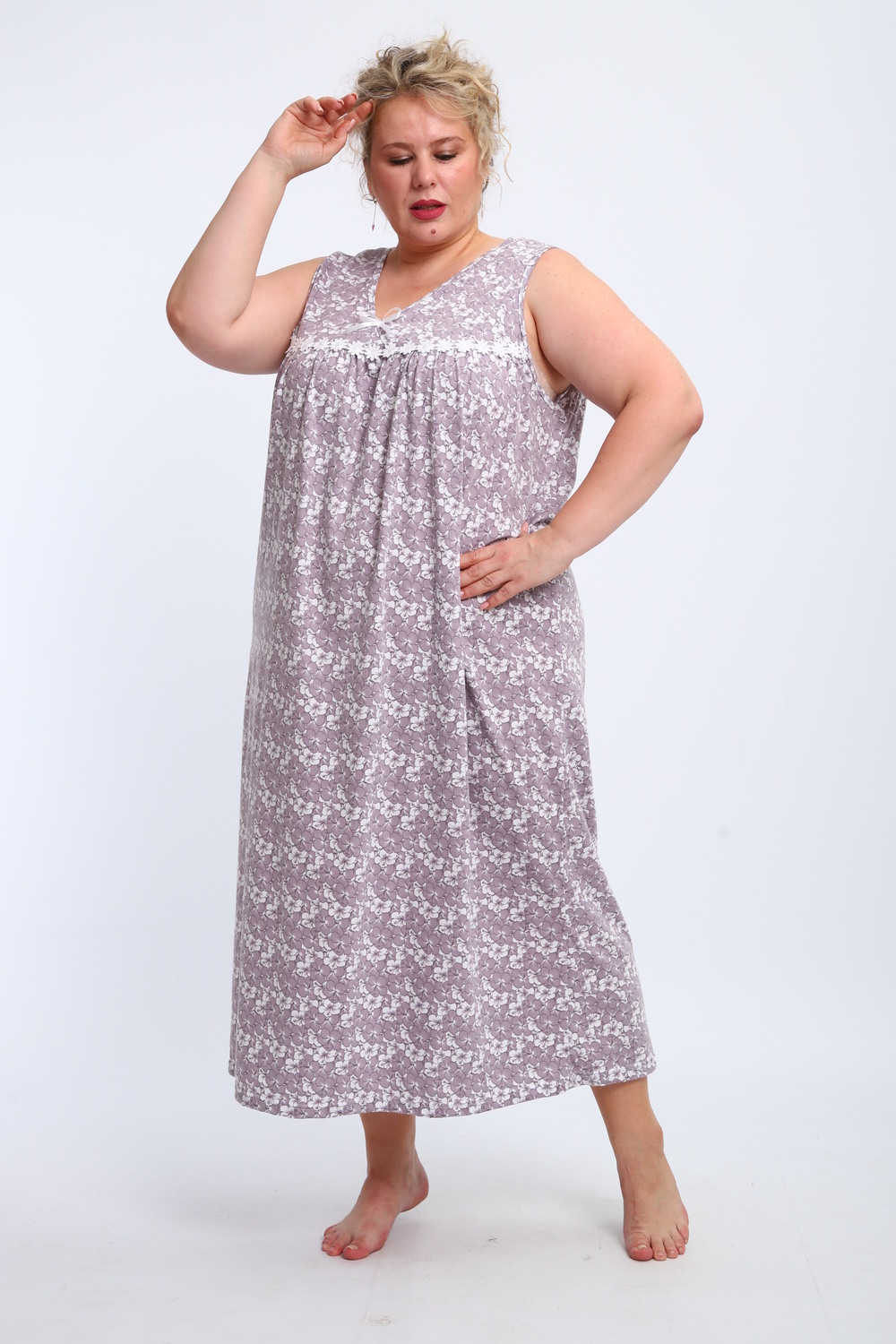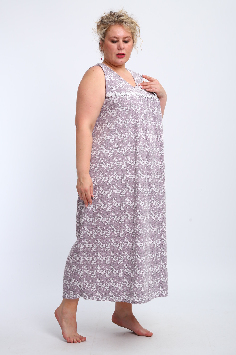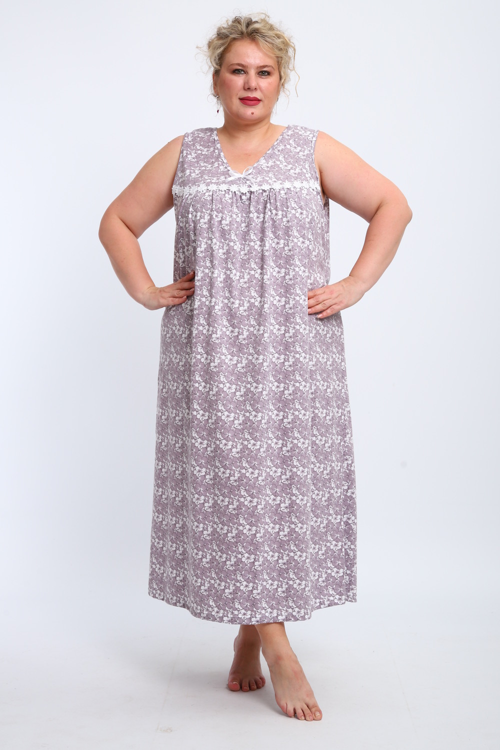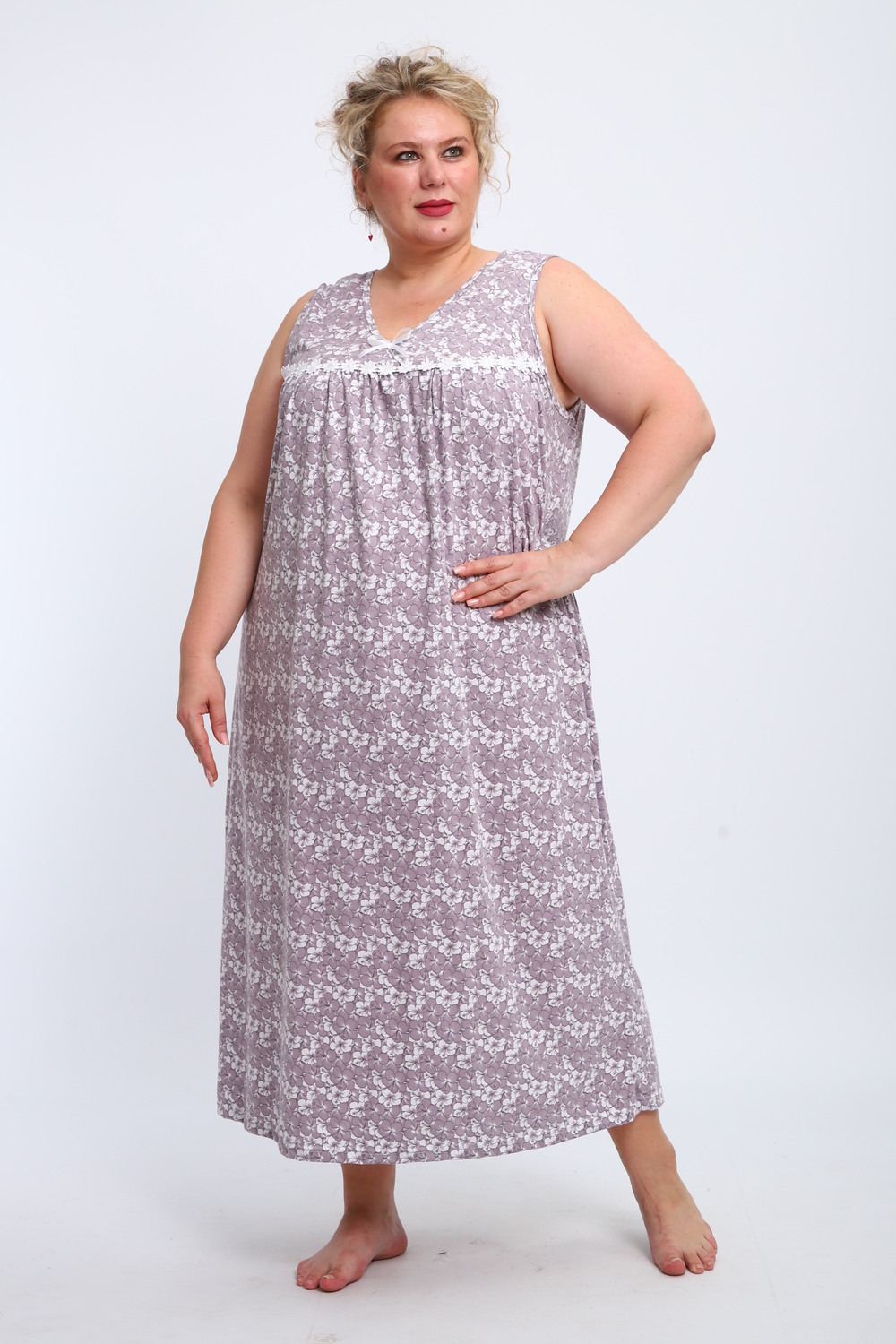 Эта красивая ночная сорочка создана для женщин, ценящих комфорт и стиль. Изготовленная из мягкого хлопка, она идеально подходит для сна и домашнего отдыха. Благодаря качественному ивановскому трикотажу изделие обеспечивает уют и приятные тактильные ощущения. Свободный крой не сковывает движений, что делает модель удобной для повседневного использования. Сорочка подойдет для полных женщин и беременных, а также станет отличным выбором для кормящих мам благодаря функциональному дизайну. Она также отлично справится со своей ролью в роддоме, обеспечивая максимальное удобство в важные моменты жизни. Ткань дышащая и легкая, что гарантирует комфорт даже в жаркую погоду. Ночнушка дополнена нежным кружевом, которое придает ей элегантности и женственности. Длинная длина изделия создает ощущение уюта и защищенности во время сна. Этот вариант станет прекрасным подарком для бабушки или другой близкой женщины, ведь он сочетает практичность с эстетикой. Хлопковый материал отличается высокой износостойкостью и гипоаллергенными свойствами, делая сорочку безопасной даже для самой чувствительной кожи. Трикотажное полотно обеспечивает свободу движений, не стесняя фигуру. Удобный фасон особенно актуален для женщин больших размеров – одежда садится по фигуре максимально комфортно и непринужденно. Эта домашняя хлопковая ночнушка создана с учетом всех особенностей женской фигуры: она универсальна и подходит для самых разных ситуаций. Комфортный крой гармонично сочетается с классическим дизайном – простота линий дополняется утонченными элементами отделки. Если вы ищете свободную одежду для сна или приятного вечера дома, эта сорочка станет отличным выбором!