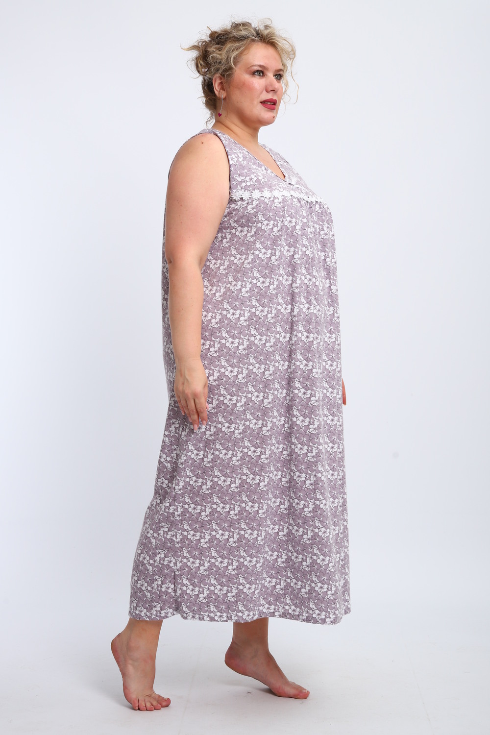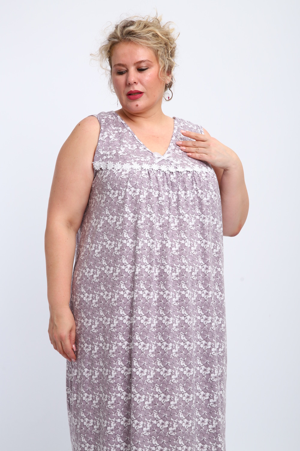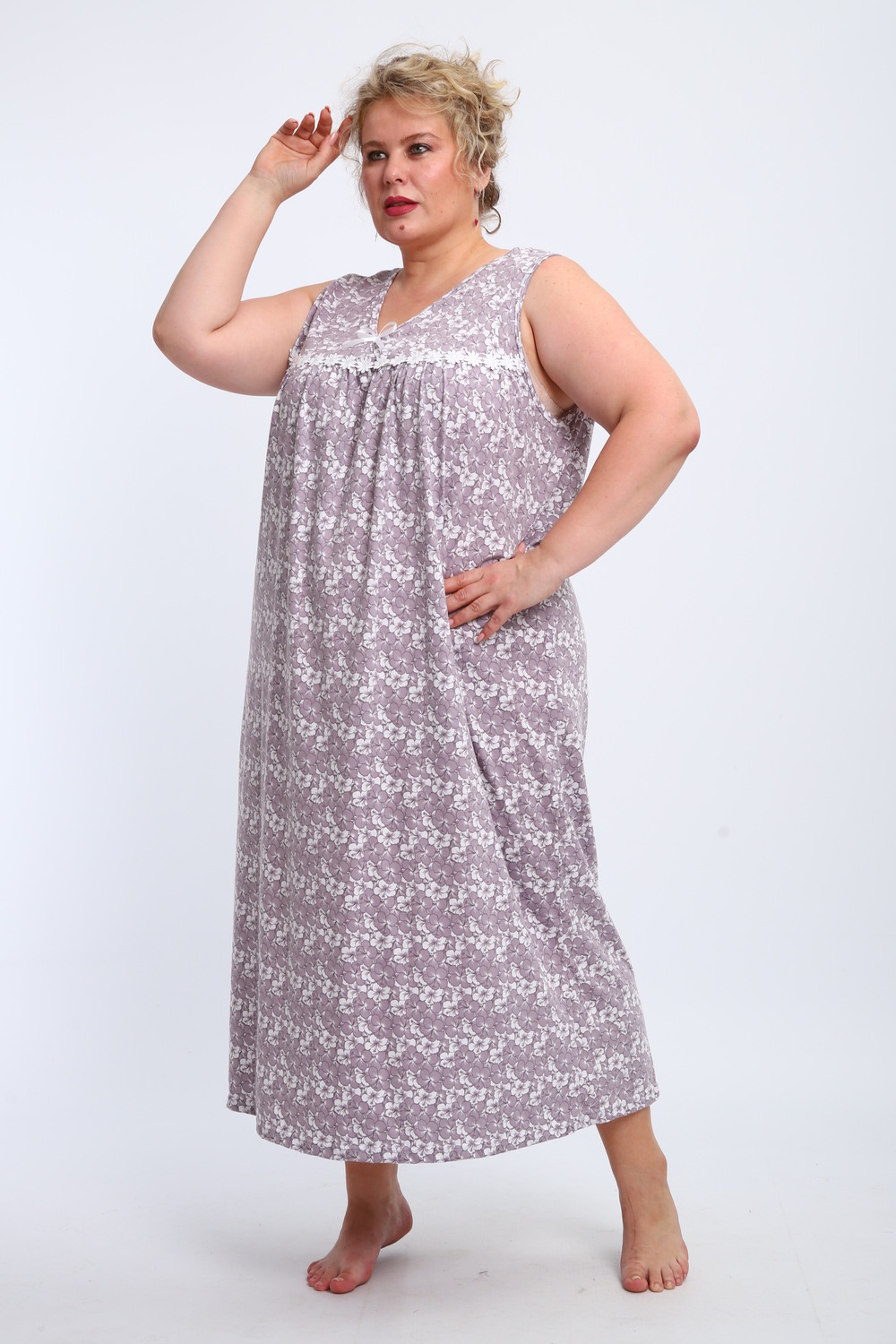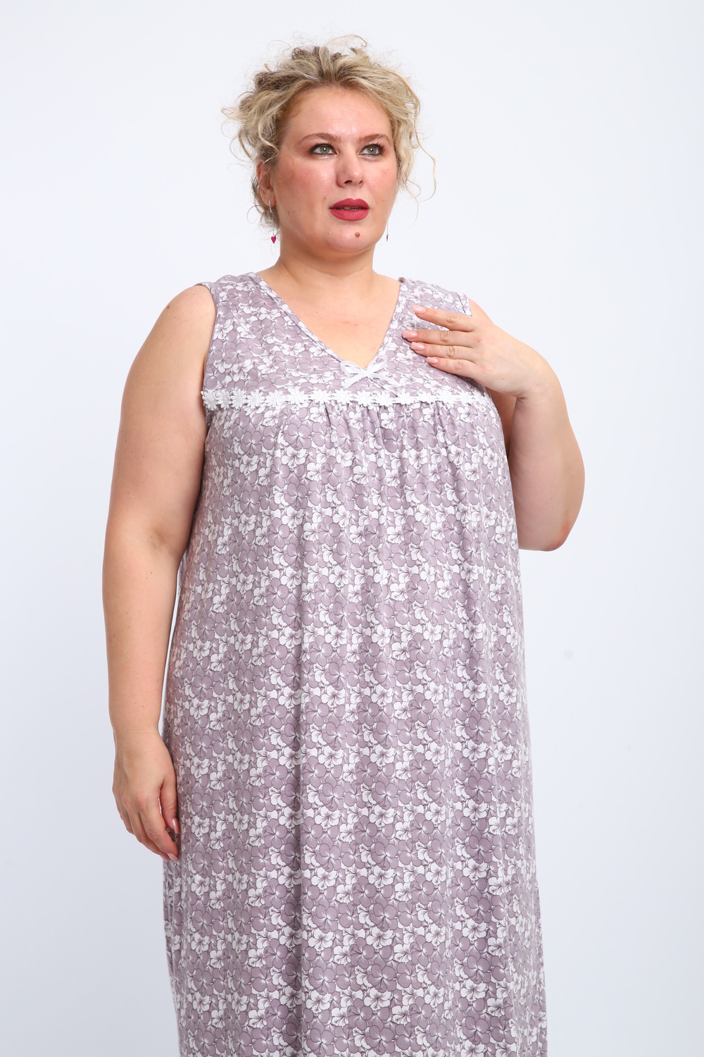 Эта красивая ночная сорочка создана для женщин, ценящих комфорт и стиль. Изготовленная из мягкого хлопка, она идеально подходит для сна и домашнего отдыха. Благодаря качественному ивановскому трикотажу изделие обеспечивает уют и приятные тактильные ощущения. Свободный крой не сковывает движений, что делает модель удобной для повседневного использования. Сорочка подойдет для полных женщин и беременных, а также станет отличным выбором для кормящих мам благодаря функциональному дизайну. Она также отлично справится со своей ролью в роддоме, обеспечивая максимальное удобство в важные моменты жизни. Ткань дышащая и легкая, что гарантирует комфорт даже в жаркую погоду. Ночнушка дополнена нежным кружевом, которое придает ей элегантности и женственности. Длинная длина изделия создает ощущение уюта и защищенности во время сна. Этот вариант станет прекрасным подарком для бабушки или другой близкой женщины, ведь он сочетает практичность с эстетикой. Хлопковый материал отличается высокой износостойкостью и гипоаллергенными свойствами, делая сорочку безопасной даже для самой чувствительной кожи. Трикотажное полотно обеспечивает свободу движений, не стесняя фигуру. Удобный фасон особенно актуален для женщин больших размеров – одежда садится по фигуре максимально комфортно и непринужденно. Эта домашняя хлопковая ночнушка создана с учетом всех особенностей женской фигуры: она универсальна и подходит для самых разных ситуаций. Комфортный крой гармонично сочетается с классическим дизайном – простота линий дополняется утонченными элементами отделки. Если вы ищете свободную одежду для сна или приятного вечера дома, эта сорочка станет отличным выбором!