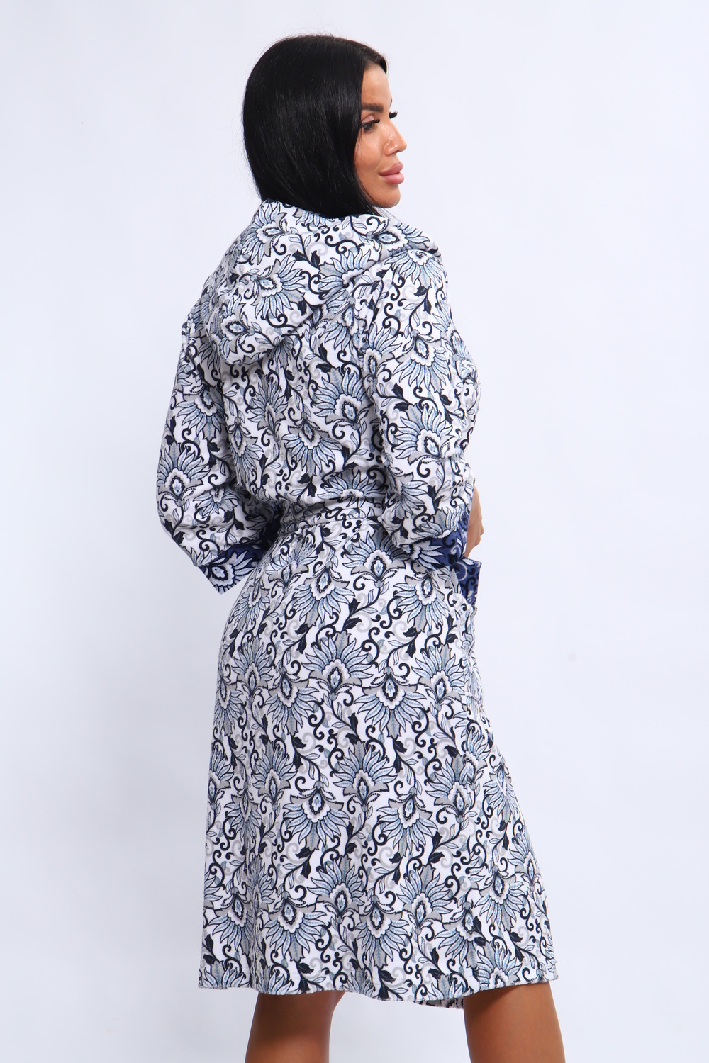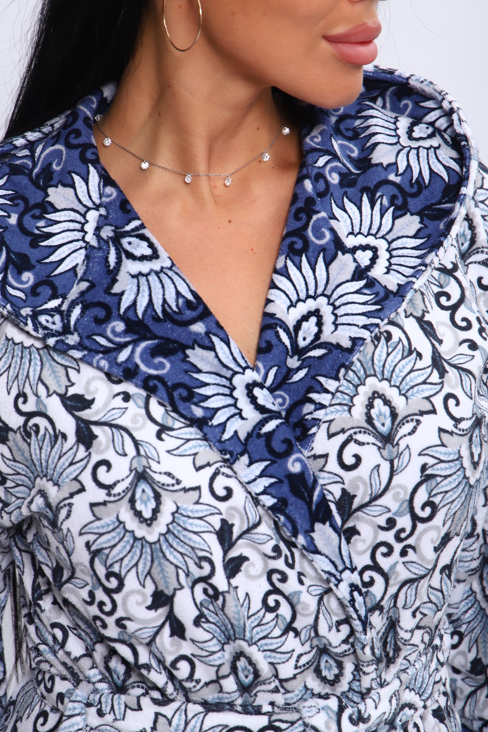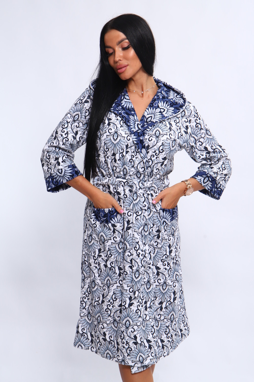 Халат женский из махры в приятном цвете. Халат с капюшоном и карманами. Халат на запах с поясом. Выполнен с тканью компаньон. Комфортный, средней длины.