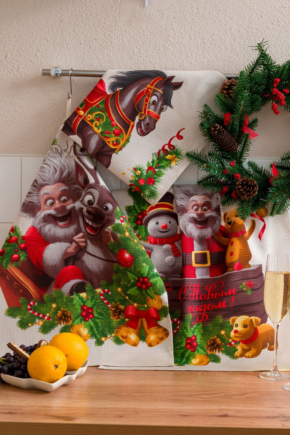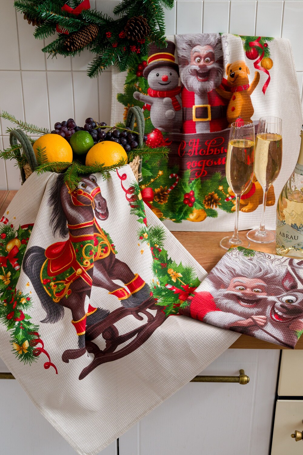 Создайте новогоднее настроение на кухне с набором полотенец "Веселая компания"!
