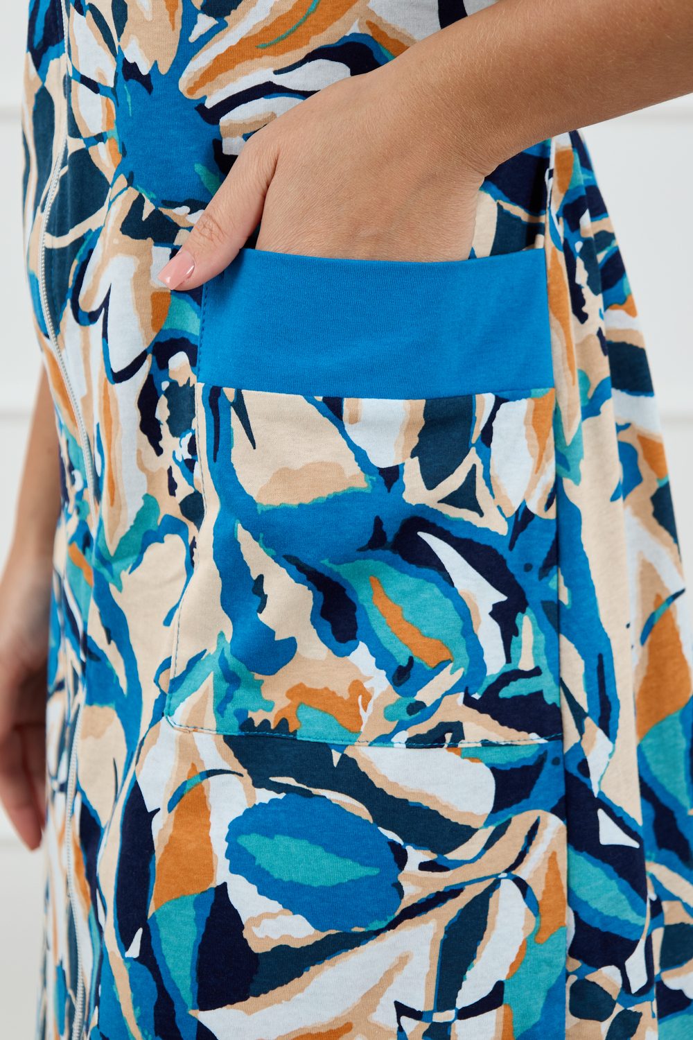 Женский халатик на молнии – самая распространенная и универсальная одежда для домашнего отдыха и хозяйственных хлопот. После трудного рабочего дня, приходя домой, первым делом хочется переодеться. И данная модель это идеальный вариант среди представительниц прекрасной половины человечества. Модель выполнена из 100% хлопчатобумажной ткани. Халат так же дополняет яркая отделка по рукавам и карманам. А пояс на линии талии поможет легко смоделировать женственный силуэт и при этом Вы будете чувствовать себя легко и непринуждённо. Данная модель прекрасно подойдёт для дома, дачи и отдыха, создавая по-настоящему яркий образ и хорошее настроение! Рост модели на фото 165см.