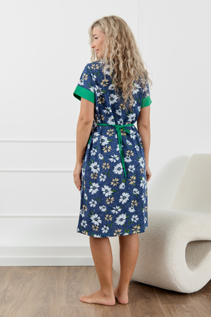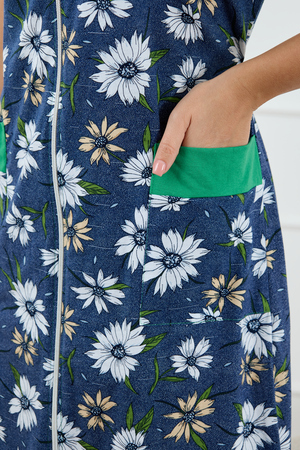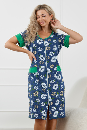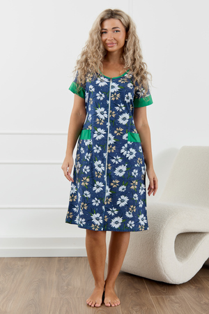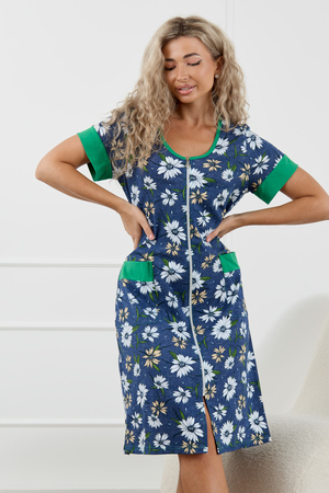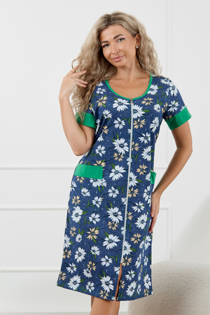 Женский халатик на молнии – самая распространенная и универсальная одежда для домашнего отдыха и хозяйственных хлопот. После трудного рабочего дня, приходя домой, первым делом хочется переодеться. И данная модель это идеальный вариант среди представительниц прекрасной половины человечества. Модель выполнена из 100% хлопчатобумажной ткани. Халат так же дополняет яркая отделка по рукавам и карманам. А пояс на линии талии поможет легко смоделировать женственный силуэт и при этом Вы будете чувствовать себя легко и непринуждённо. Данная модель прекрасно подойдёт для дома, дачи и отдыха, создавая по-настоящему яркий образ и хорошее настроение! Рост модели на фото 165см.