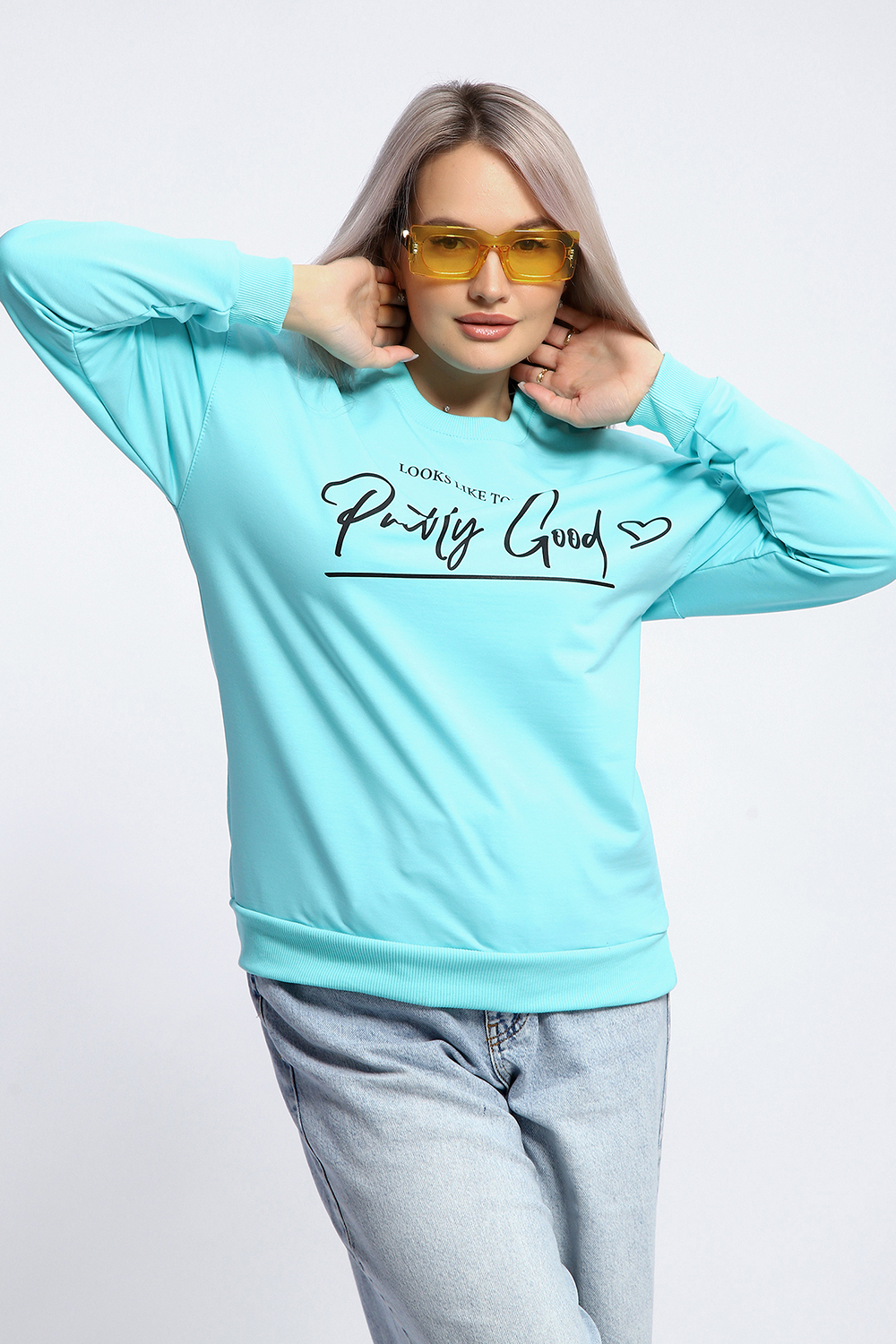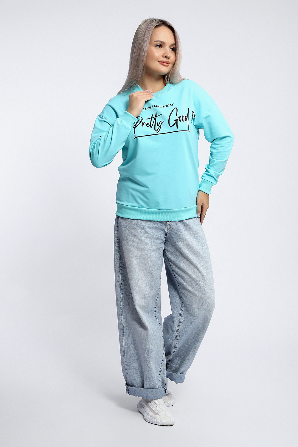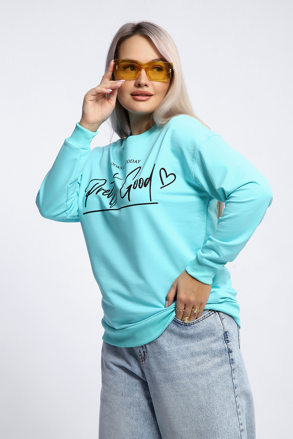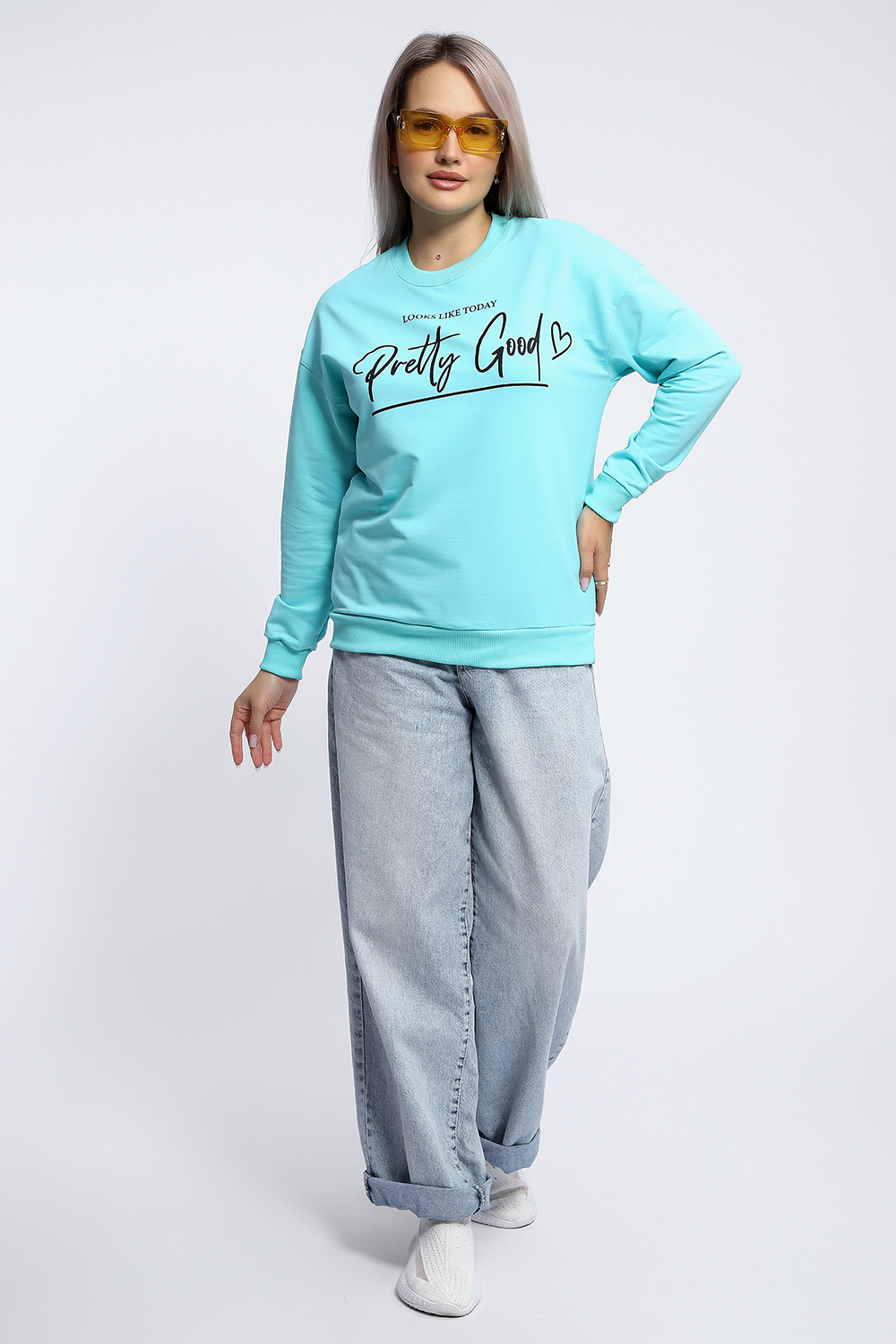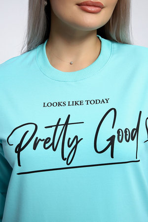 Толстовка свободного кроя "оверсайз" со спущенной линией плеча прекрасный вариант для прохладной погоды! Мягкое, эластичное кашкорсе в тон ткани использовано для отделки горловины, манжет и пояса. На полочке декоративный принт.