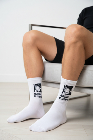 Забавные и стильные мужские носки из мягкого хлопка – идеальный способ добавить юмора в повседневный образ! Белая основа с крутым принтом! В чёрно-белом стиле, эти гетры подойдут для casual-лука, спорта или просто для хорошего настроения.