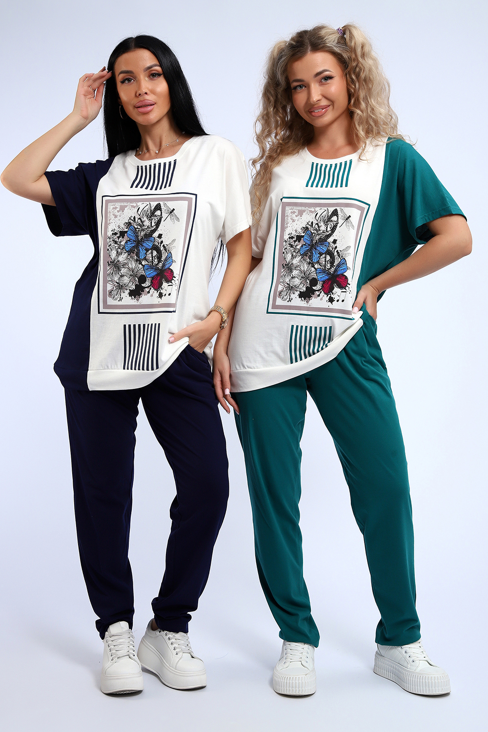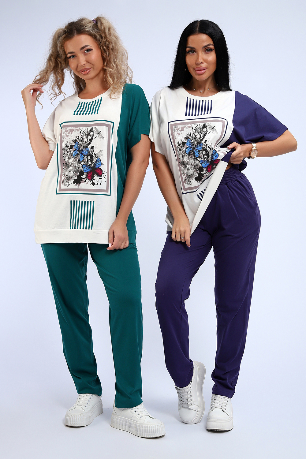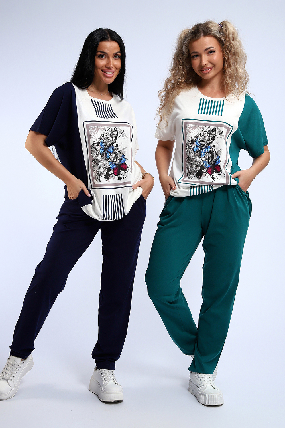 Эффектный костюм в спортивном стиле из трикотажного полотна ярких оттенков. В комплекте представлена кофта свободного кроя со спущенным рукавом и узкие, но не обтягивающие брюки. Изюминкой костюма является сочетание контрастных оттенков в дизайне кофты, украшенная яркими цветами. Трикотажные костюмы стали одним из самых популярных и востребованных атрибутов в гардеробе современных женщин, так как не только подчеркивают стиль и индивидуальность, но и обеспечивают комфорт и удобство в повседневной жизни.