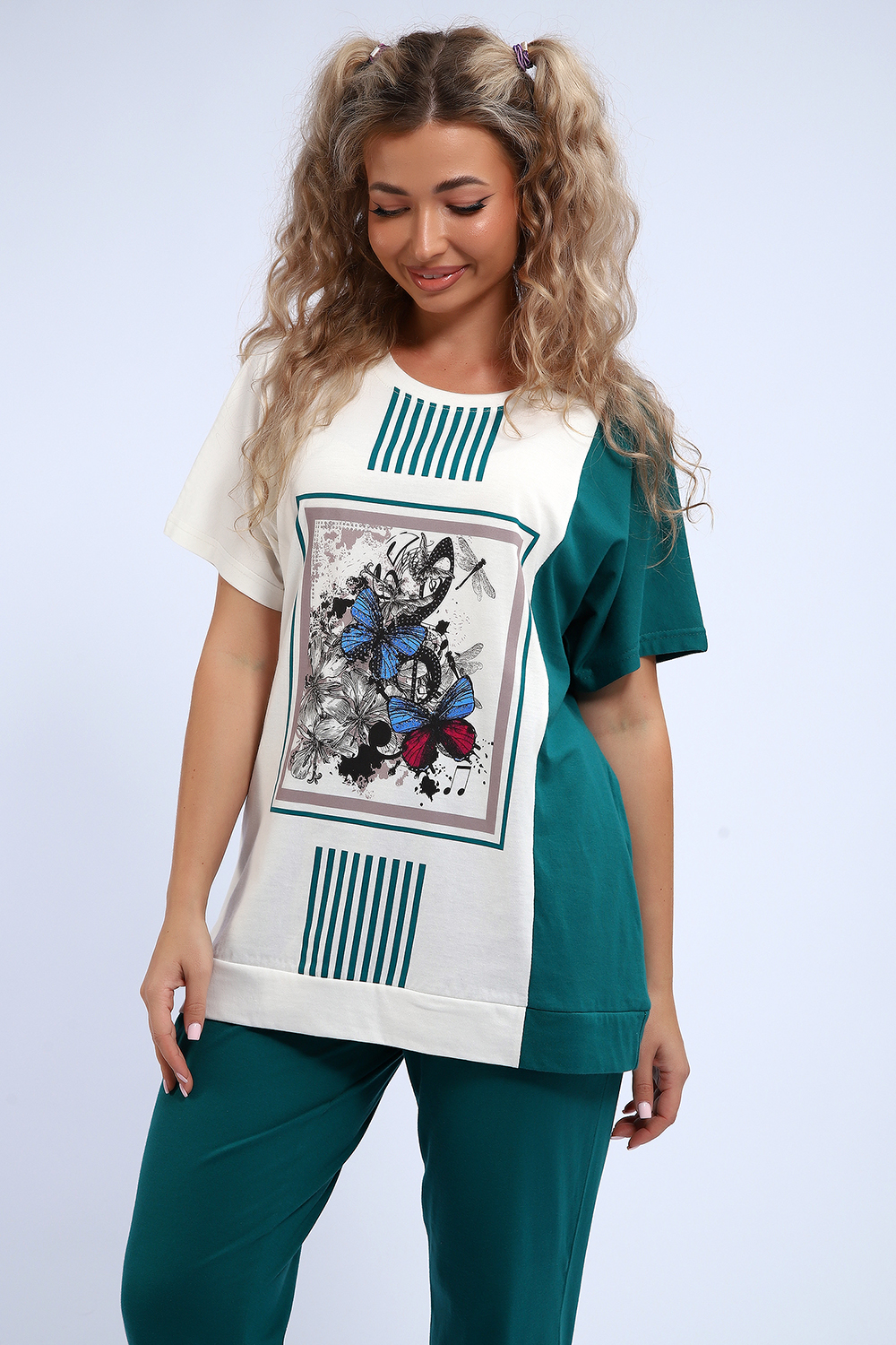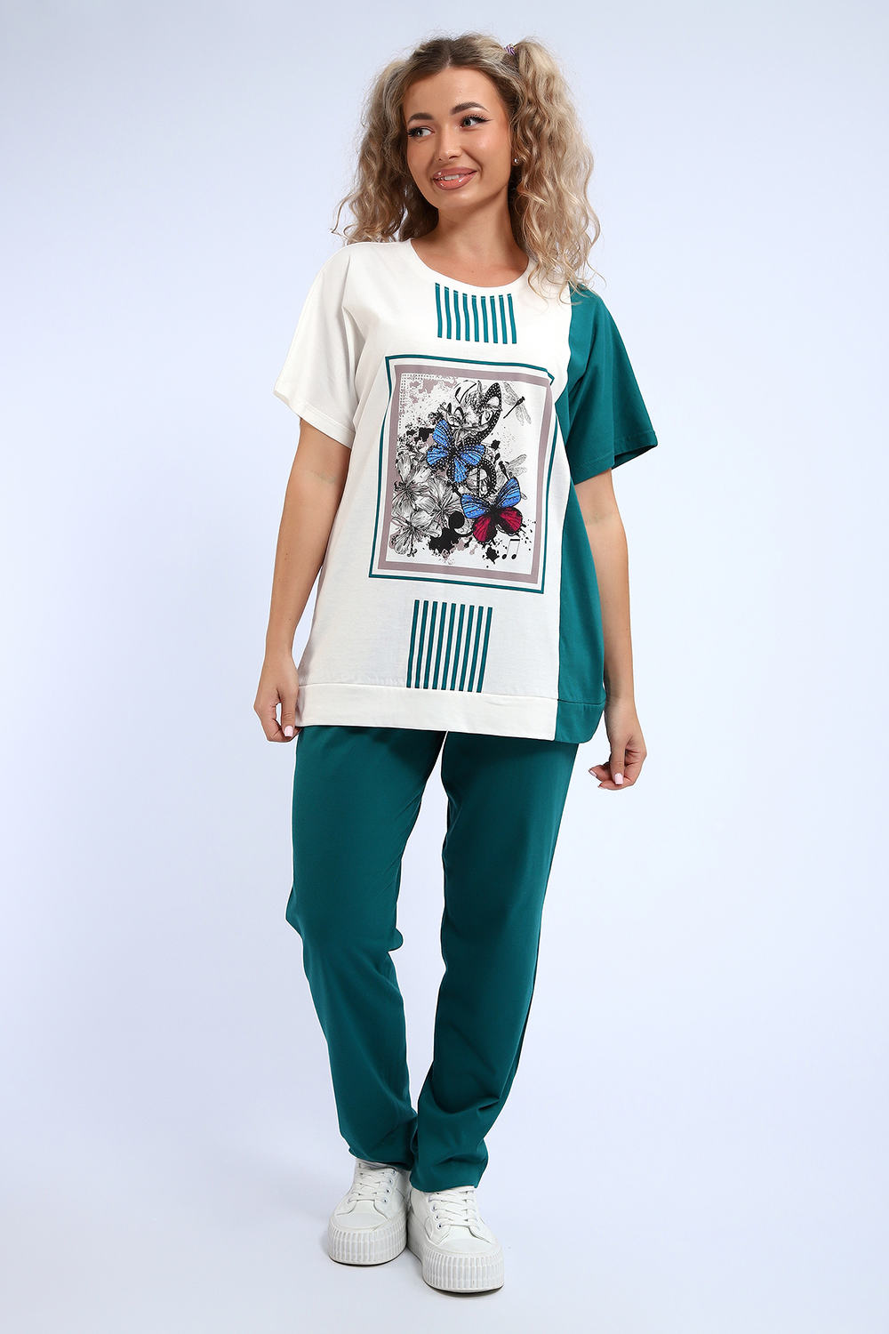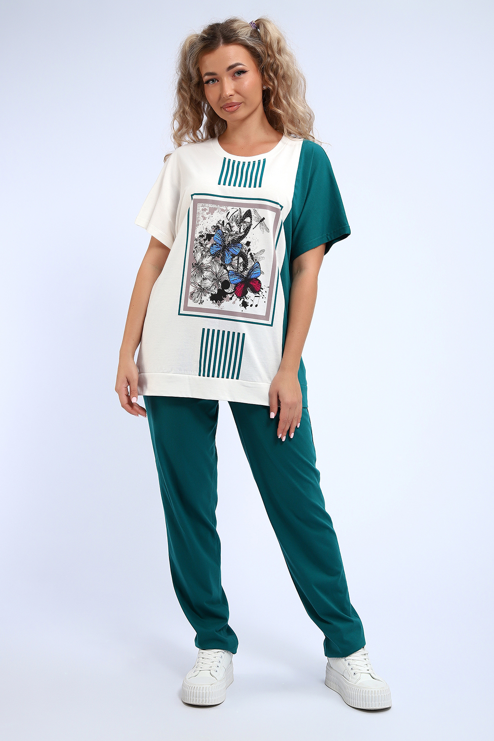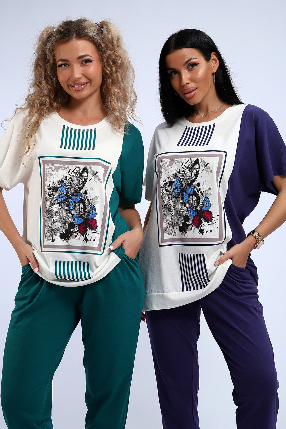 Эффектный костюм в спортивном стиле из трикотажного полотна ярких оттенков. В комплекте представлена кофта свободного кроя со спущенным рукавом и узкие, но не обтягивающие брюки. Изюминкой костюма является сочетание контрастных оттенков в дизайне кофты, украшенная яркими цветами. Трикотажные костюмы стали одним из самых популярных и востребованных атрибутов в гардеробе современных женщин, так как не только подчеркивают стиль и индивидуальность, но и обеспечивают комфорт и удобство в повседневной жизни.