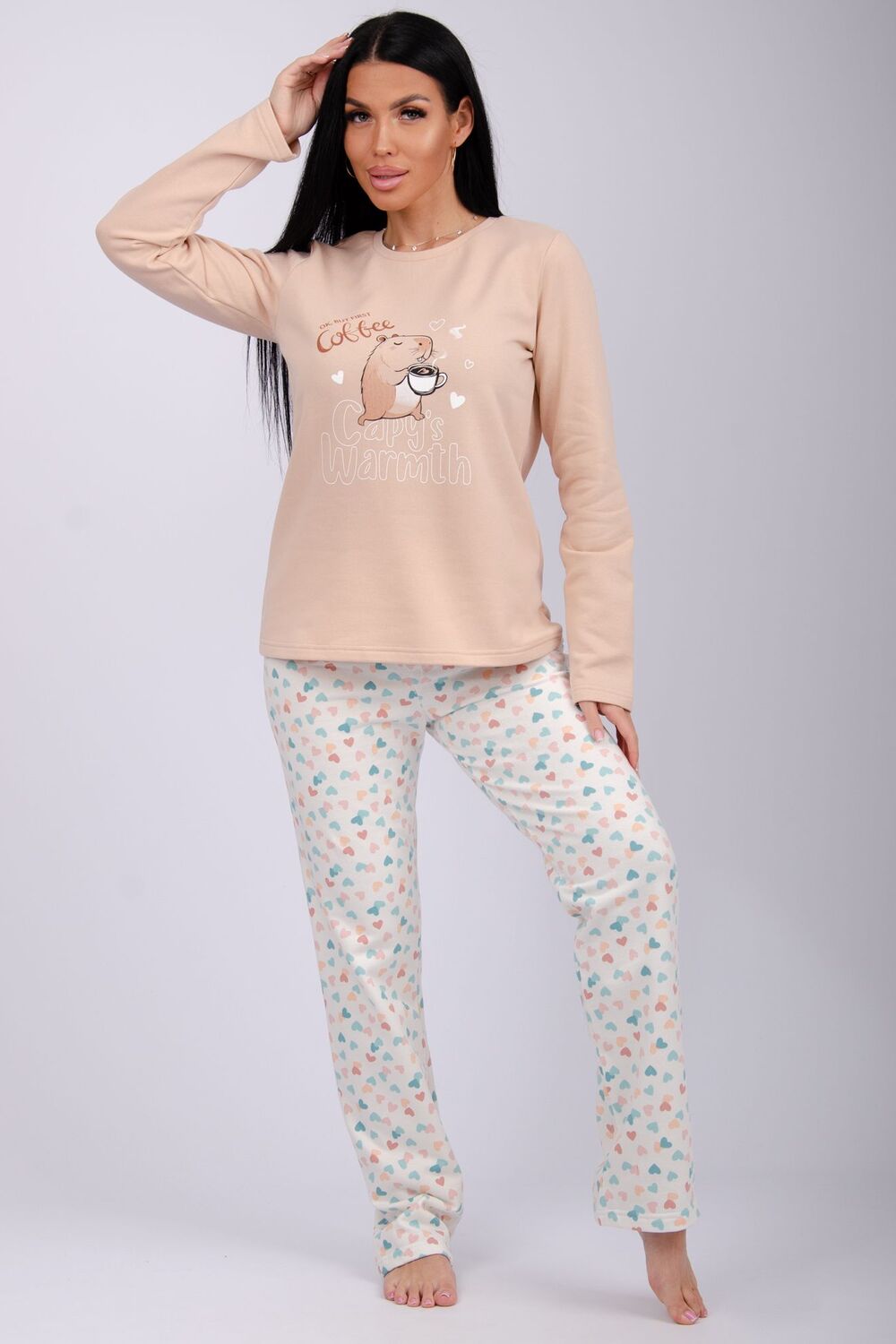 В комплект входят штаны и кофта с длинным рукавом. Свободный крой не стесняет движений и позволяет чувствовать себя комфортно во время сна или домашнего отдыха.
