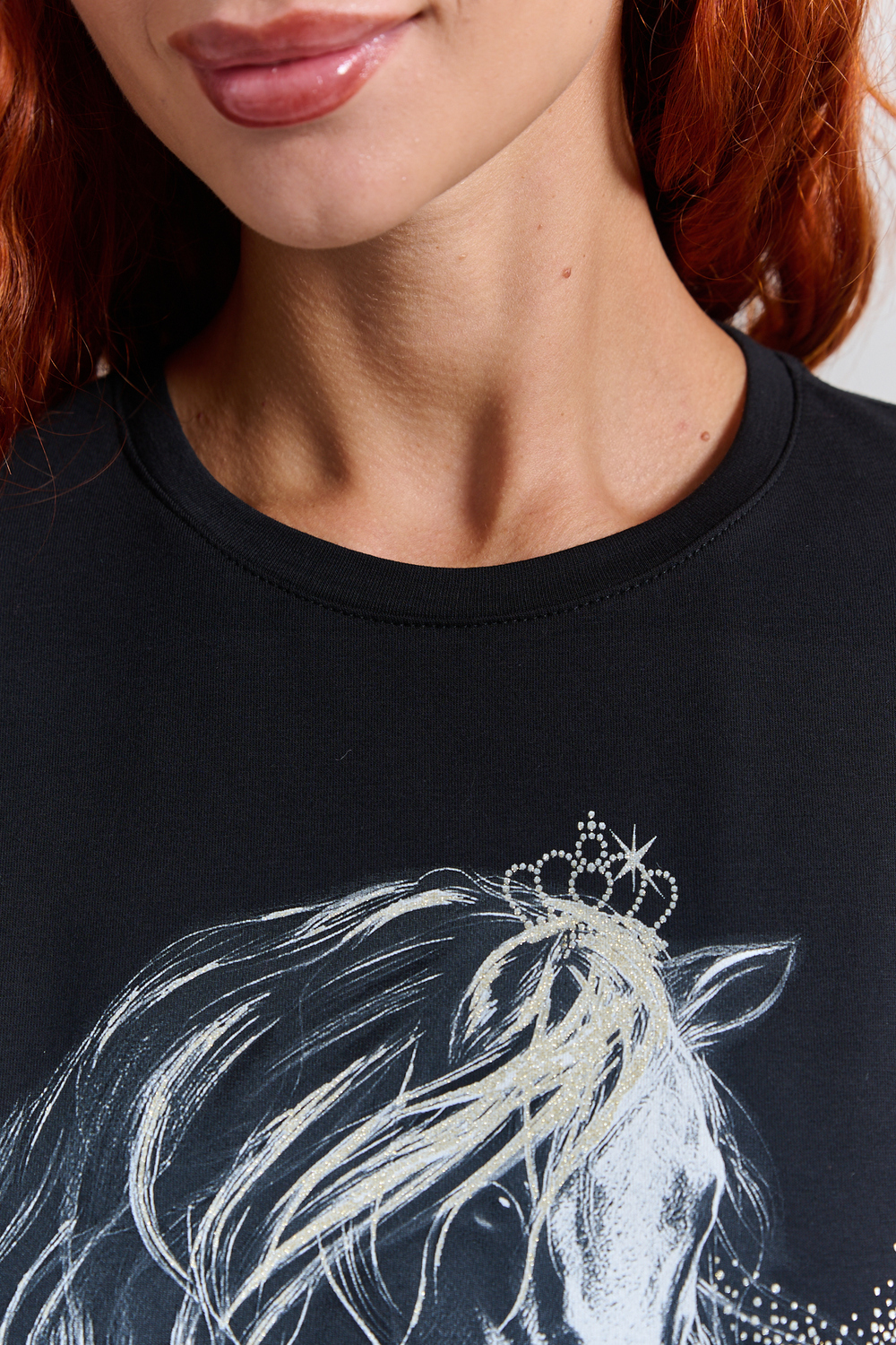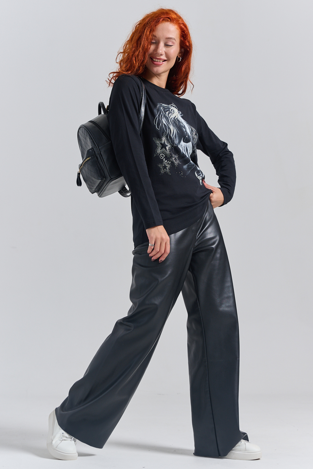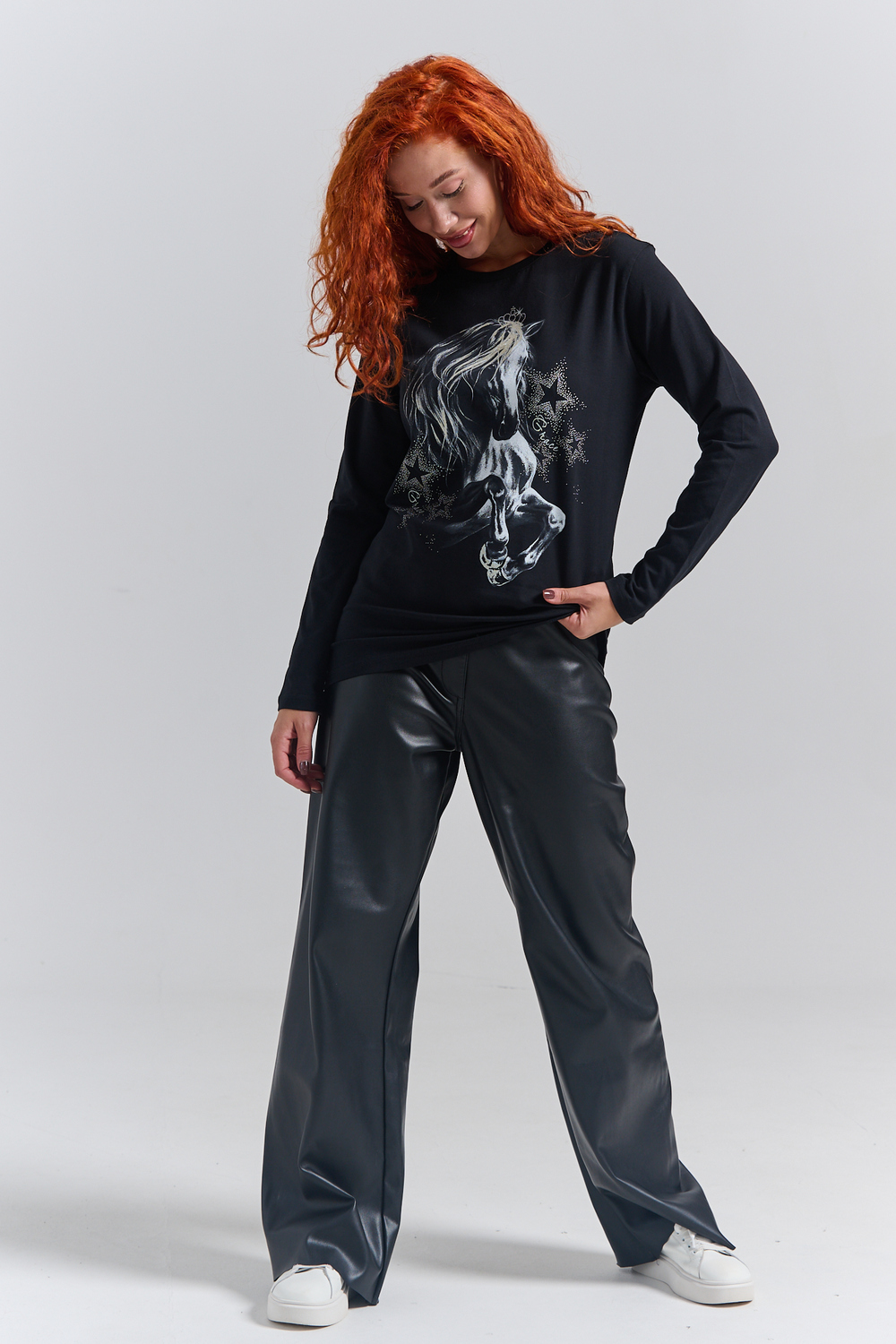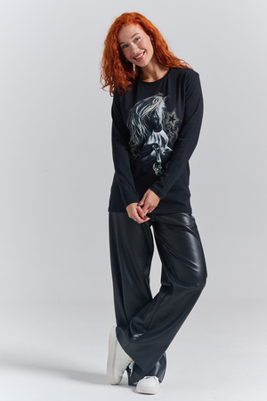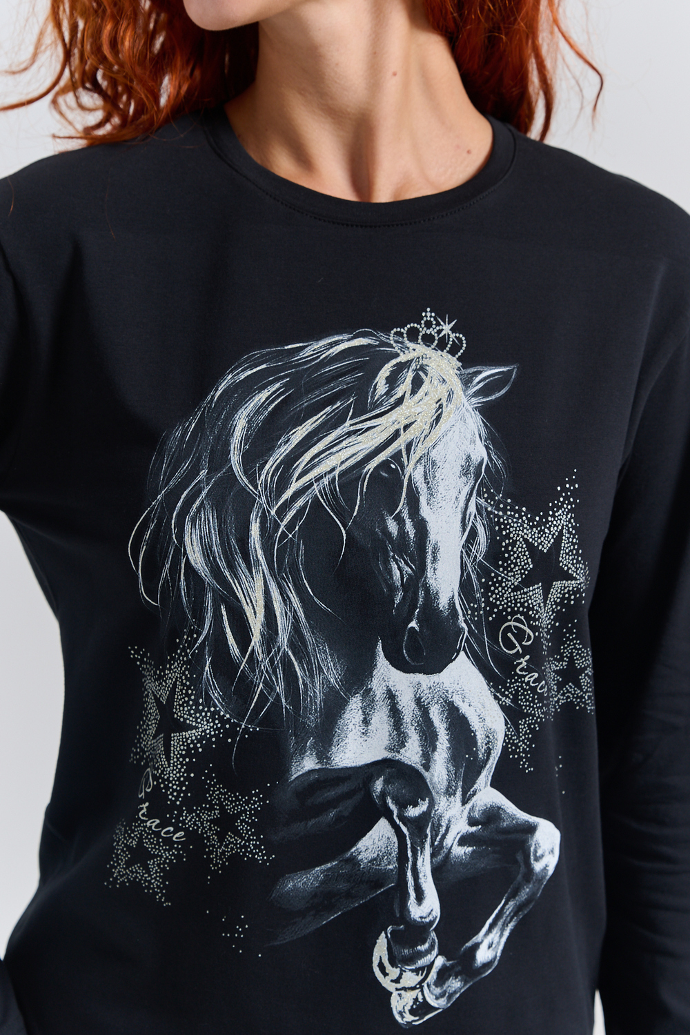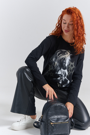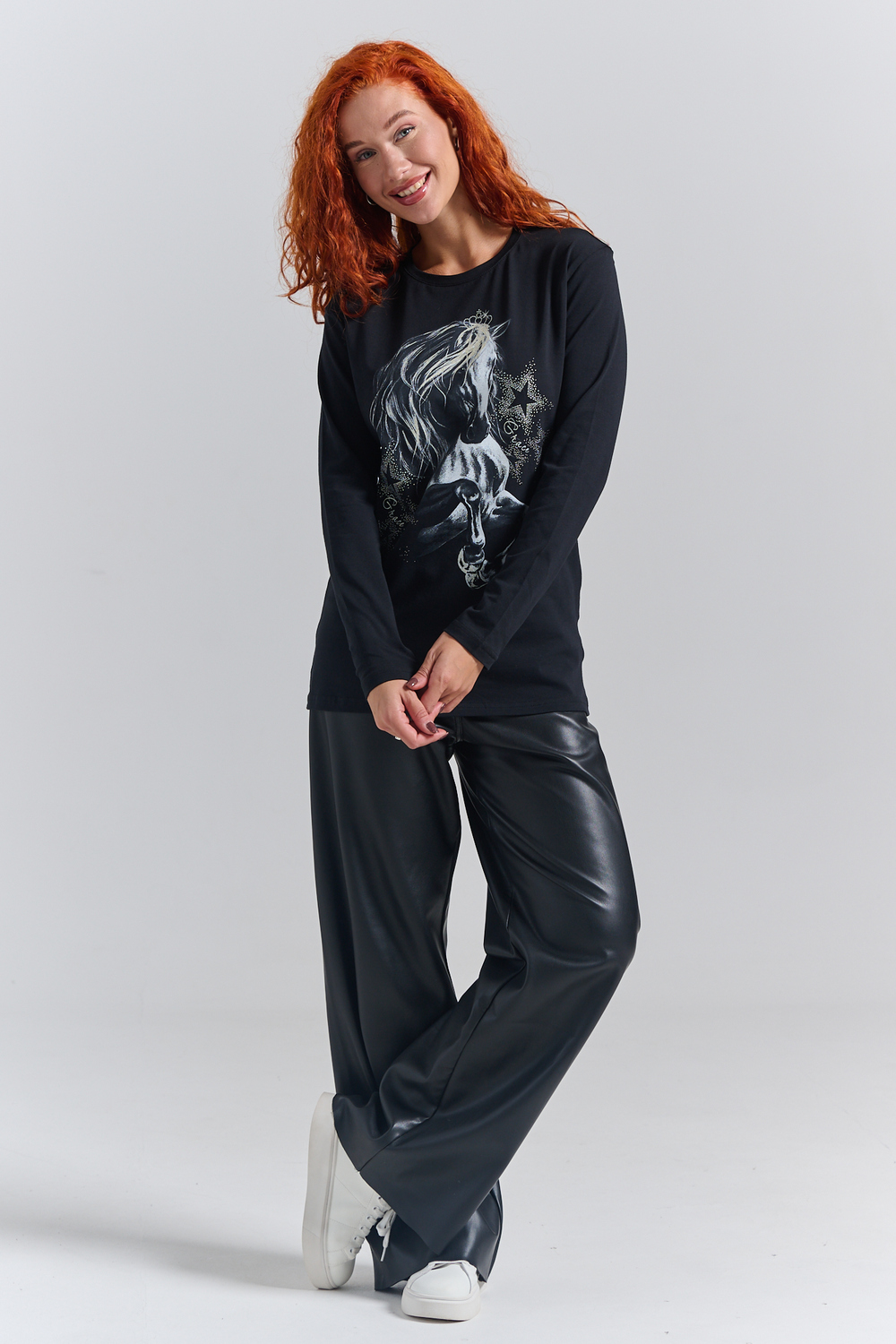Покупатель на Ozon10.11.2025 в 20:59Лонгслив хороший, ткань лёгкая, как у футболки, не плотная, на мой рост 172 рукава и сам лонгслив всë таки длинноват, хотесь бы покороче. но оставила, лошадка красивая