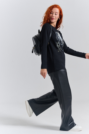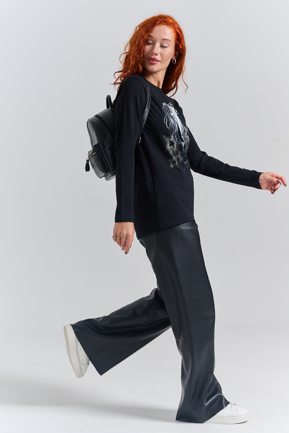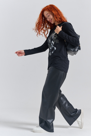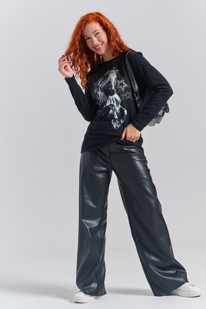 Покупатель на Ozon26.10.2025 в 20:12Тонкая футболка с длинным рукавом. Размеру соответствует, не вобтяг, на высоких. При моем росте 160см.придется укорачивать(длинна как у туники), рукава тоже длинные. Для тела приятная. При стирке красит воду. Рисунок хороший
