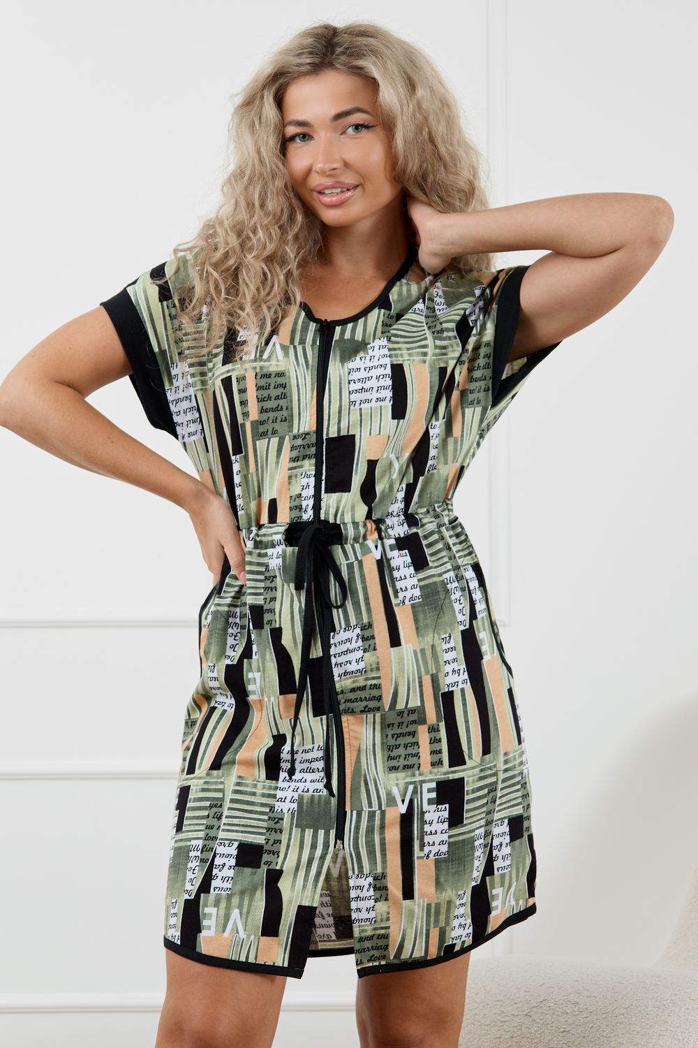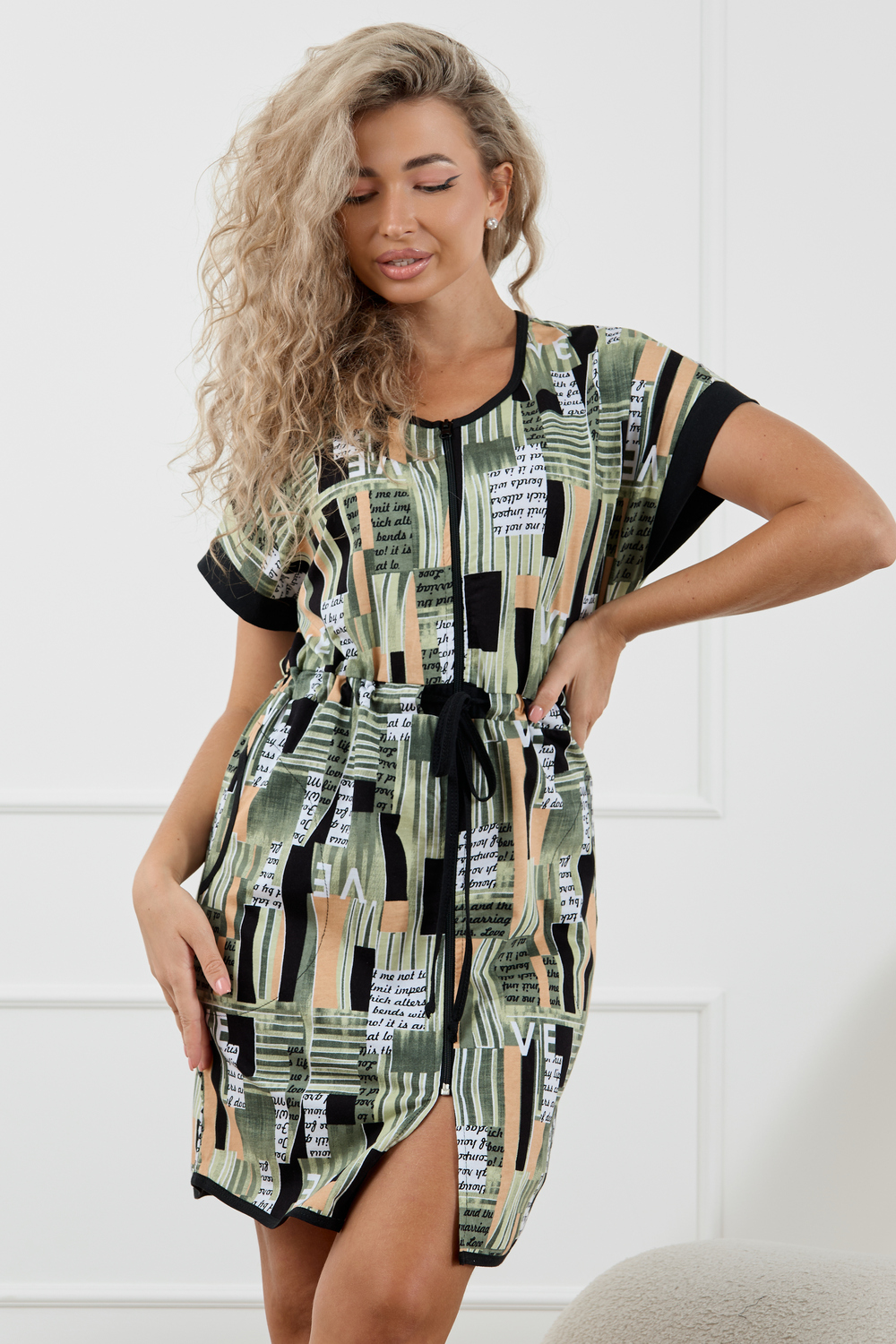 Женский трикотажный халат на молнии без сомнения станет самой желанной и любимой вещью в гардеробе любой дамы. Халатик укороченный, на кулисе со шнурком, с удобными карманами и молнией. Выглядит стильно и современно. Халатик такого плана подходит для фигур разного типа. Легкий и мягкий, качественный, дышащий, сшит из высококачественного трикотажа, подарит вам абсолютную непринужденность и легкость, простор в движении, идеально подойдет для беременных и кормящих и будет хорошим сопровождением в роддом и не вызовет раздражения, так как создан из натуральной ткани. Благодаря этому может стать прекрасным подарком для, мамы, подруги, бабушки, сестры или коллеги на любой праздник. Отлично сядет на женщин больших размеров. Данная модель будет кстати для отдыха на даче и даже поездки к морю. Домашняя одежда российского производства, имеет комфортную посадку, не линяет, не дает усадку после стирки и долго сохраняет первоначальный внешний вид. Халатик подчеркнет Ваш стиль и добавит молодежных нот в ваш образ, а затягивающийся пояс на талии придаст женственности и изящества вашему луку. Стирайте изделия из хлопка на бережном режиме с температурой не выше 30С, чтобы сохранить цвет, форму и фактуру материала. Приобретая наши изделия, радуйте себя и своих близких.
