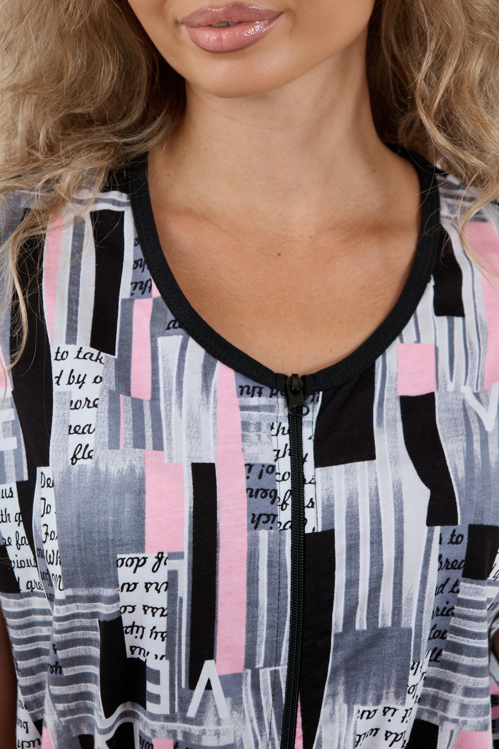 Женский трикотажный халат на молнии без сомнения станет самой желанной и любимой вещью в гардеробе любой дамы. Халатик укороченный, на кулисе со шнурком, с удобными карманами и молнией. Выглядит стильно и современно. Халатик такого плана подходит для фигур разного типа. Легкий и мягкий, качественный, дышащий, сшит из высококачественного трикотажа, подарит вам абсолютную непринужденность и легкость, простор в движении, идеально подойдет для беременных и кормящих и будет хорошим сопровождением в роддом и не вызовет раздражения, так как создан из натуральной ткани. Благодаря этому может стать прекрасным подарком для, мамы, подруги, бабушки, сестры или коллеги на любой праздник. Отлично сядет на женщин больших размеров. Данная модель будет кстати для отдыха на даче и даже поездки к морю. Домашняя одежда российского производства, имеет комфортную посадку, не линяет, не дает усадку после стирки и долго сохраняет первоначальный внешний вид. Халатик подчеркнет Ваш стиль и добавит молодежных нот в ваш образ, а затягивающийся пояс на талии придаст женственности и изящества вашему луку. Стирайте изделия из хлопка на бережном режиме с температурой не выше 30С, чтобы сохранить цвет, форму и фактуру материала. Приобретая наши изделия, радуйте себя и своих близких.