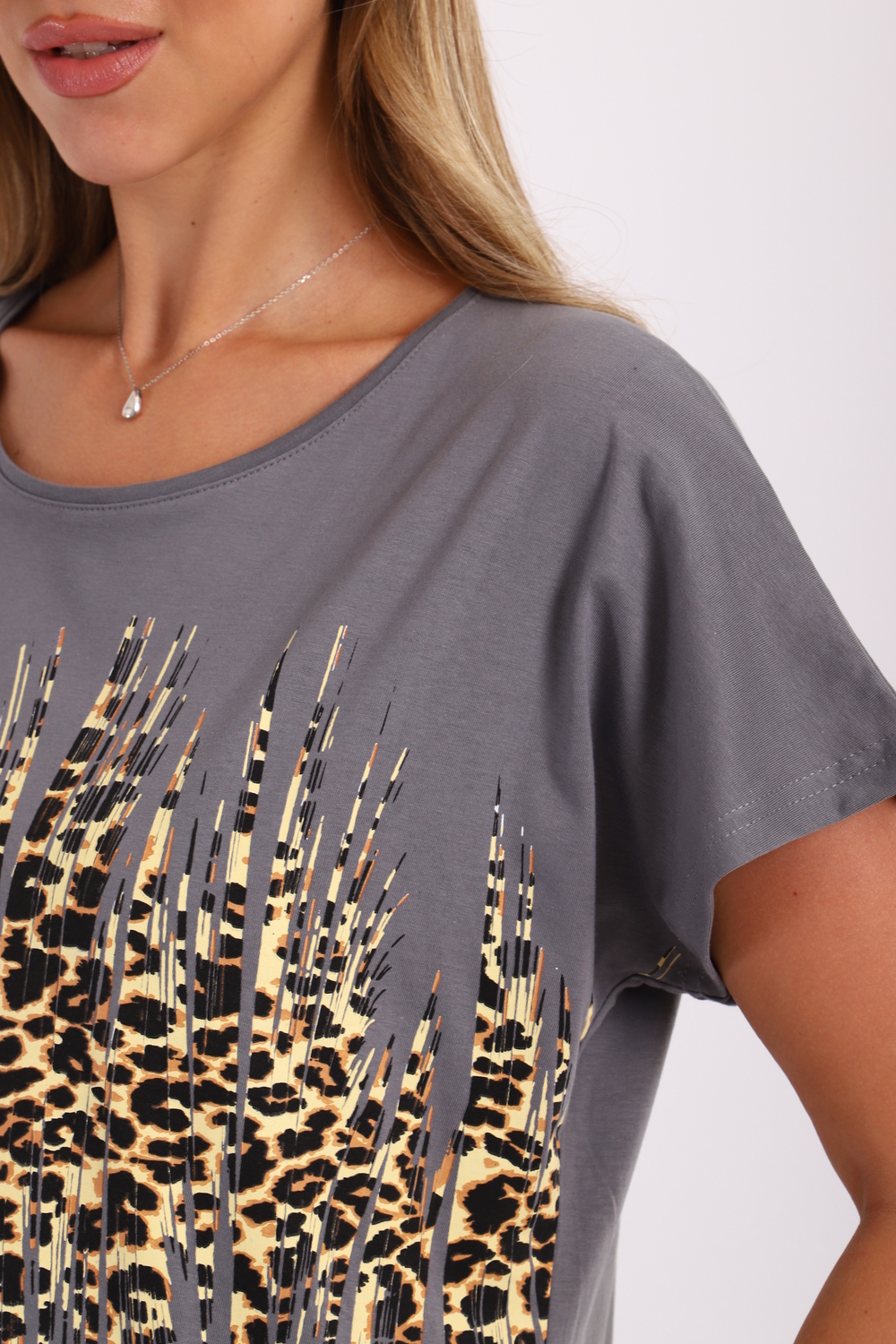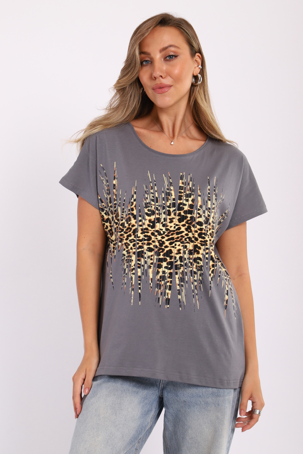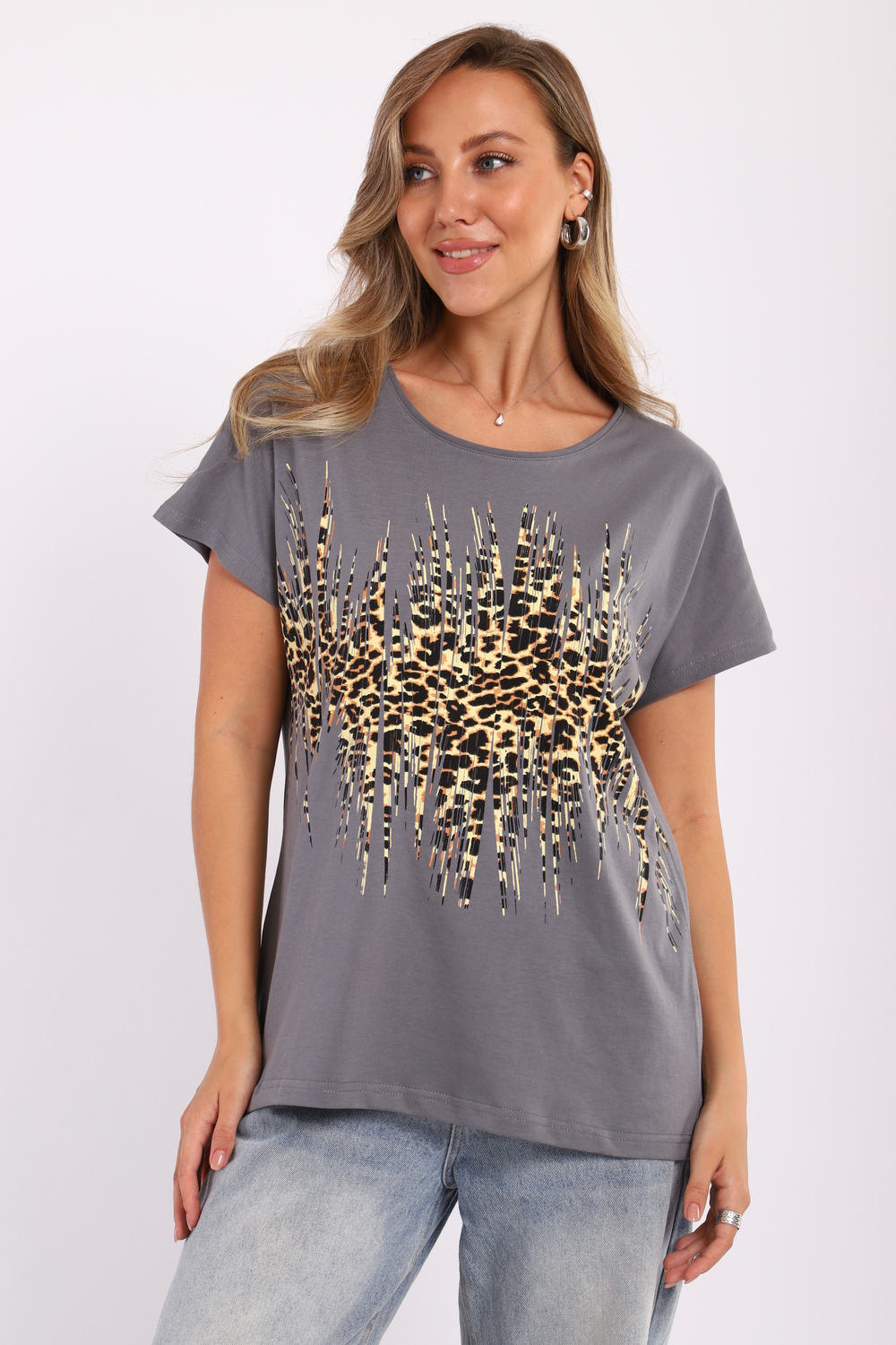 Представляем стильную и комфортную футболку, идеально подходящую для домашнего ношения или летних выходов. Изготовленная из высококачественного хлопка, эта нарядная модель обеспечивает невероятное ощущение комфорта и свободы движений. Футболка выполнена в нежных оттенках, что придает ей свежесть и гармонию. Удлиненная конструкция подчеркивает силуэт, создавая стильный образ. Дизайн дополнен ярким принтом, который включает цветочные элементы и графические акценты. Это придает изделию оригинальность и делает его отличным выбором для модных образов. Свободный крой позволяет сочетать эту модель с различными вещами: от джинсов до легких шорт. Короткие рукава обеспечивают дополнительную вентиляцию, что делает ее идеальной для жарких летних дней. Текстура материала приятна на ощупь и обеспечивает комфорт в носке на протяжении всего дня. Это изделие отличается высоким качеством пошива, что гарантирует долговечность и устойчивость к износу. Премиум материал сохраняет свои свойства даже после множества стирок, оставаясь ярким и привлекательным. Эта футболка — отличный выбор как для повседневной носки, так и для создания более нарядных образов с минимальными усилиями. Благодаря своим визуальным характеристикам она станет замечательным дополнением вашего гардероба и позволит вам выглядеть стильно в любой ситуации. Носите с удовольствием!