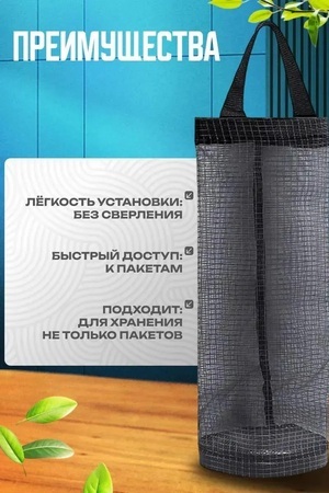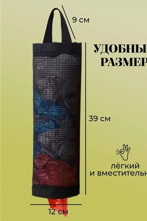 Идеальный помощник на кухне или в ванной - подвесная сумка для хранения пакетов и другой мелочи! Представьте себе, как удобно иметь все при необходимости под рукой - подвесной органайзер для хранения пакетов для ванны. С этим контейнером для хранения Вы сможете легко и быстро найти нужные вещи, а также экономить место - используйте настенный органайзер в кухне или в ванной, чтоб совершенствовать организацию на небольшом пространстве в шкафу, стеллаже и даже под столом. Этот кухонный органайзер для белья подходит для хранения пакетов, бахил и прочих мелочей, может служить как держатель для бумажных полотенец, так что вы сможете убрать всё в одном месте, поэтому у Вас никогда не будет трудностей с поиском мелочей по всей квартире.