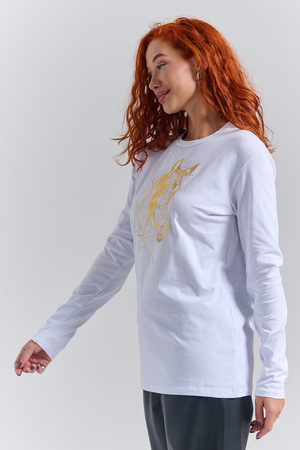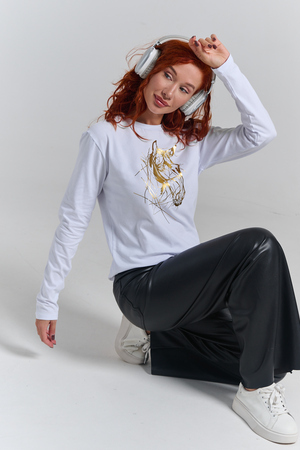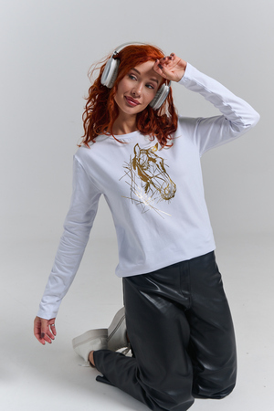 Покупатель на Ozon23.10.2025 в 13:46Лонгслив соответствует описанию. обращаю внимание, что он довольно длинный, как туника.вообщем все хорошо.правда на пакете есть блестки от рисунка, (рисунок золотистый) поэтому не знаю, что будет после стирки. посмотрим