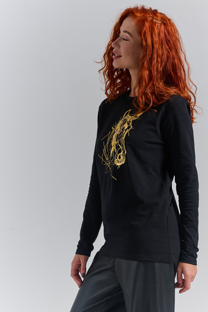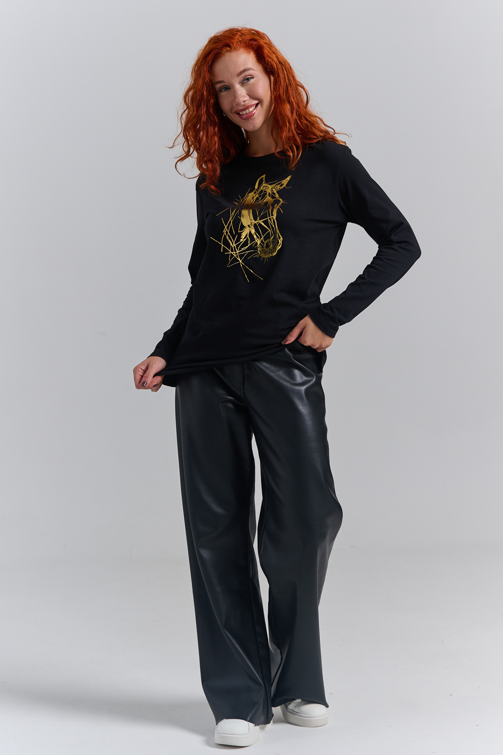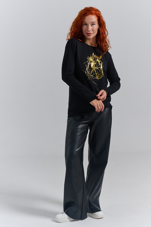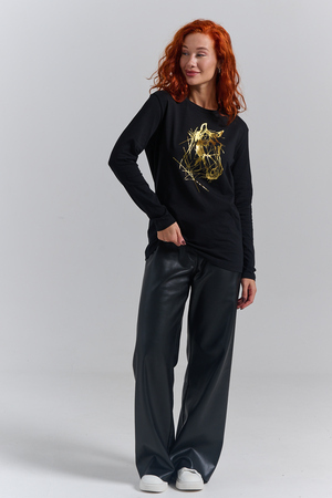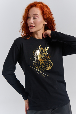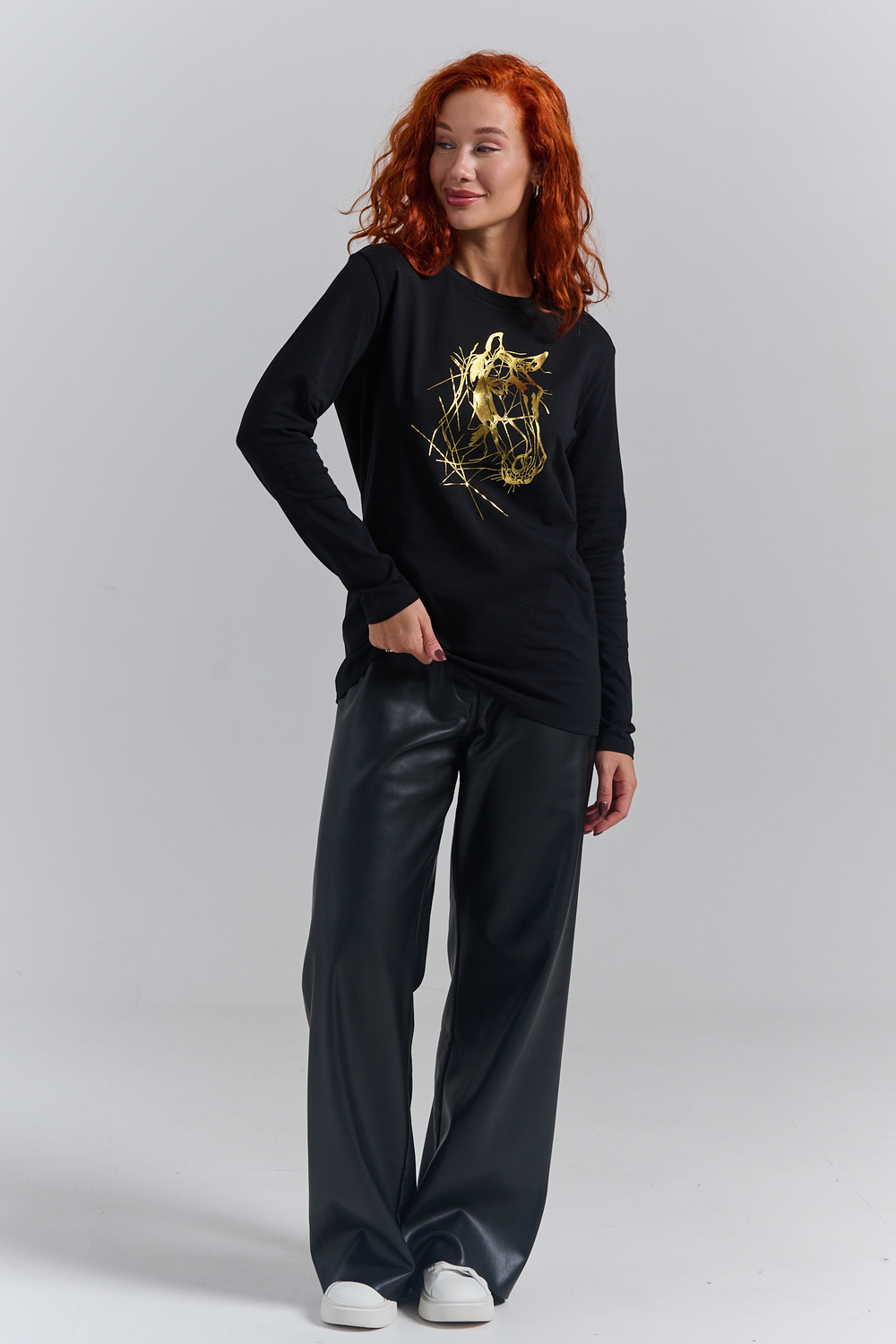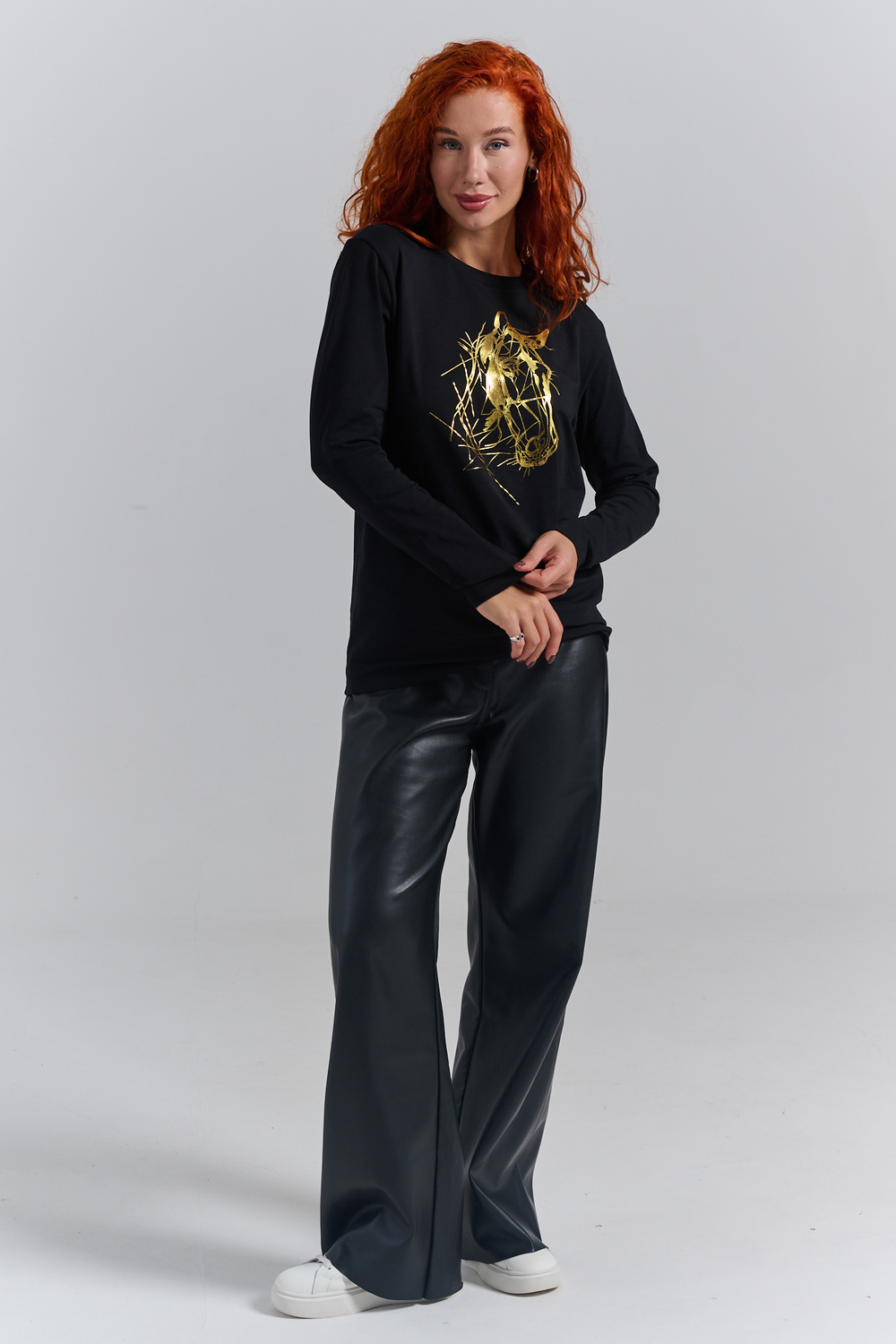 Покупатель на Ozon23.10.2025 в 13:46Лонгслив соответствует описанию. обращаю внимание, что он довольно длинный, как туника.вообщем все хорошо.правда на пакете есть блестки от рисунка, (рисунок золотистый) поэтому не знаю, что будет после стирки. посмотрим