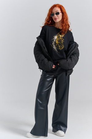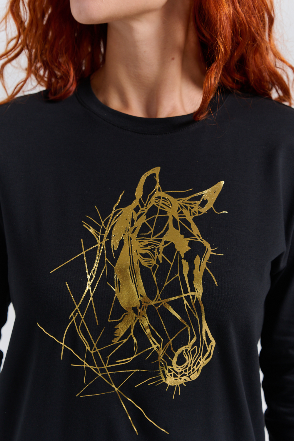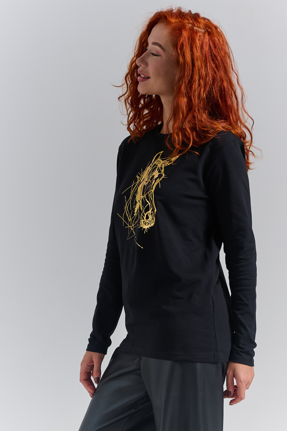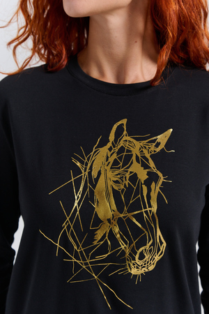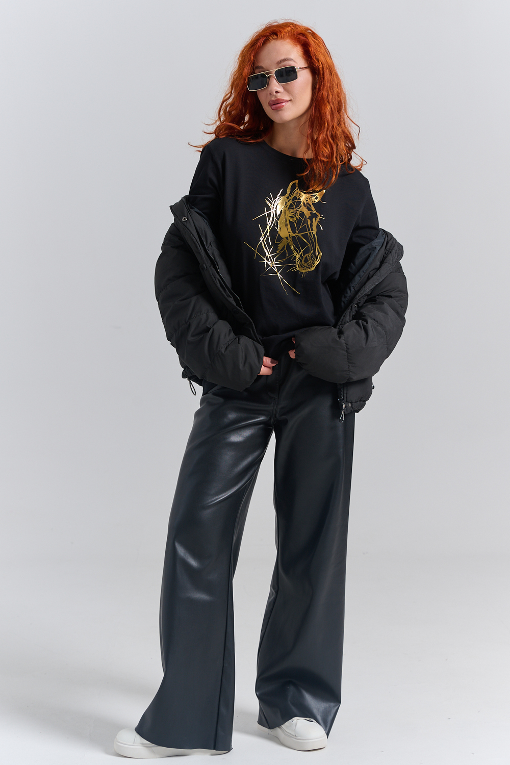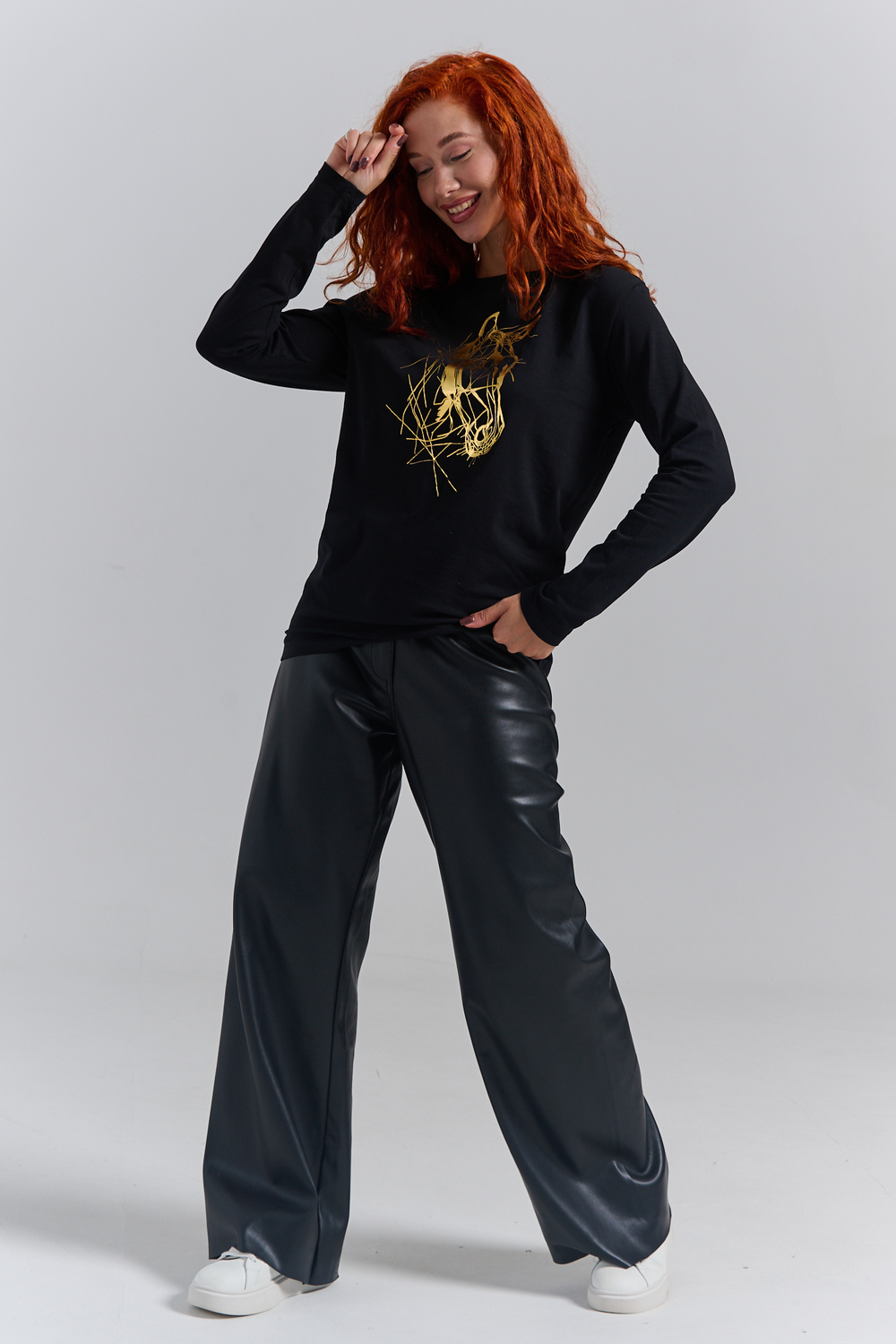 Покупатель на Ozon23.10.2025 в 13:46Лонгслив соответствует описанию. обращаю внимание, что он довольно длинный, как туника.вообщем все хорошо.правда на пакете есть блестки от рисунка, (рисунок золотистый) поэтому не знаю, что будет после стирки. посмотрим