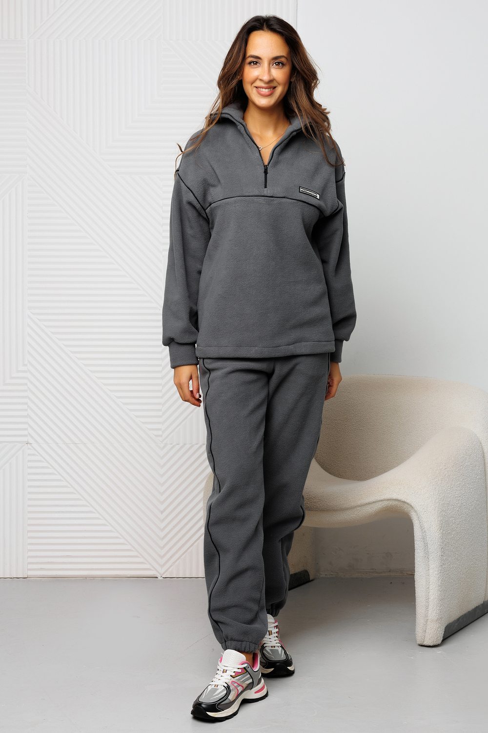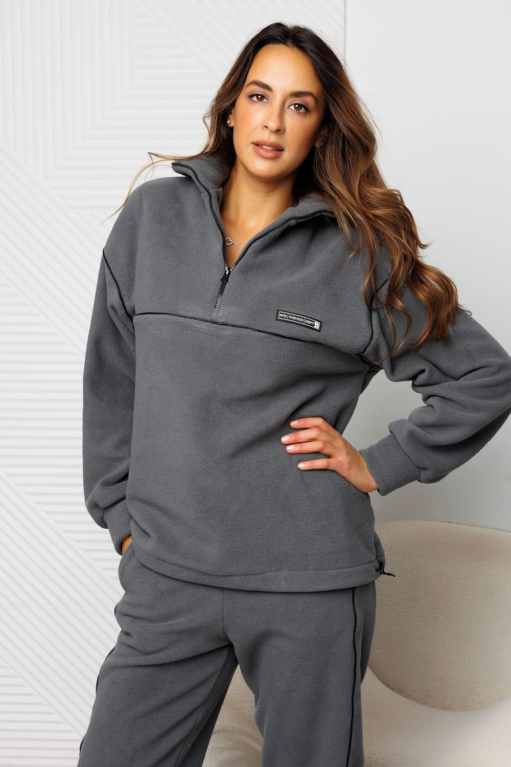 Костюм спортивный флисовый двойка с кантом Raposa - это идеальный выбор для тех, кто ценит комфорт и стиль. Этот теплый костюм, выполненный из качественного трикотажного материала с начесом, станет незаменимым спутником на осень - зиму. Благодаря своей универсальности и легкости, костюм подходит как для активного отдыха, так и для повседневной носки. Худи зипка с воротником стойкой на молнии и длинными рукавами, а также джоггеры с высокой посадкой и кулиской внизу, обеспечивают максимальный комфорт и свободу движений для беременных будущих мам и полных женщин больших размеров плюс сайз до 62 и 64 размера. Брюки на резинке удобно надевать и снимать, они снабжены удобными прорезными карманами для хранения мелочей. Оверсайз крой кофта чебурашка создает стильный и современный образ, а мягкий флис приятен к телу. Демисезонный анорак и треники станут незаменимыми в холодное время года. Костюм осенний - зимний доступен в нескольких базовых цветах, что позволяет легко подобрать его под любой гардероб. Благодаря своей практичности и трендовому дизайну 2026. Этот костюм брючный с воротником поло станет отличным повседневным выбором для девочки подростка, а также для тех, кто предпочитает унисекс стиль. Он идеально подойдет для занятий спортом и фитнесом, путешествий, прогулок на свежем воздухе, а также для домашнего отдыха. Утепленные штаны трико на флисе и мастерку зип худи в стиле спорт шик можно надевать под горнолыжный костюм или в школу на физкультуру.