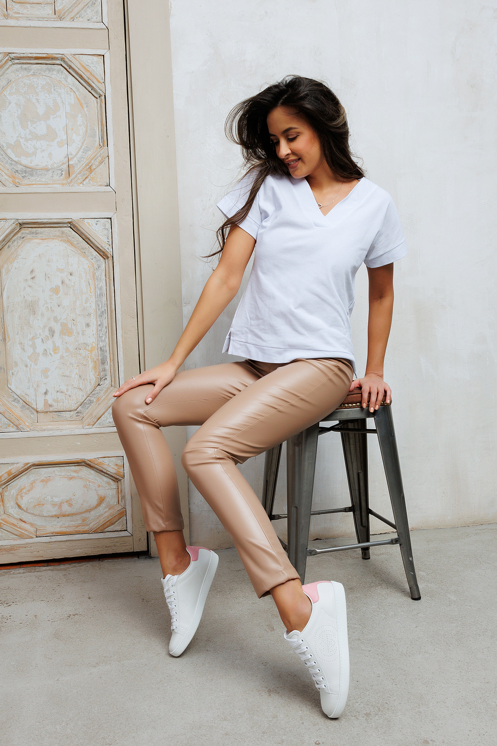 Брюки женские кожаные от бренда Raposa - это идеальный выбор для тех, кто хочет создать незабываемый вечерний образ. Брюки выполнены из премиальной искусственной кожи, которая обладает высоким качеством и долговечностью. Бежевый цвет делает штаны из эко кожи универсальными и легко сочетающимися с любым верхом. Такой цвет добавляет особую нотку шарма и изысканности образу. Особенностью этих кожаных штанов является их зауженный крой, который подчеркнет стройность и изящество ног, визуально удлиняет силуэт. Узкие брюки идеально садятся на фигуру, придавая образу особую женственность и изысканность. Высокая посадка леггинсов поможет подчеркнуть вашу фигуру и талию. Благодаря этому эффекту, зауженные брюки отлично садятся по фигуре и создают грациозные силуэты. Удобный крой гарантирует правильную посадку этих классических брюк на талии и обеспечивает комфорт при движении. Эта деталь делает эти кожаные леггинсы максимально практичной и функциональной, позволяя вам чувствовать себя уверенно в любой ситуации. Ассортимент включает в себя брюки больших размеров, что делает эти кожаные лосины доступными для всех, без ограничений. Облегающие брюки из экокожи подойдут как высоким, так и невысоким девушкам и женщинам. Они не только подчеркнут достоинства Вашей фигуры, но и визуально вытянут ноги, делая их более стройными и привлекательными. Бежевые брюки станут отличным выбором для тех, кто хочет добавить изюминку в свой образ и произвести неизгладимое впечатление на окружающих. Брюки женские из экокожи станут прекрасной основой любого образа, как офисного, так и вечернего. Вы сможете выглядеть элегантно и стильно независимо от мероприятия и сезона. Узкие штаны из кожзама станут отличным вариантом на осень, весну. Лосины кожаные стирать при 30 С на деликатном режиме, не гладить и не отбеливать, барабанная сушка и сухая чистка (химчистка) запрещена.