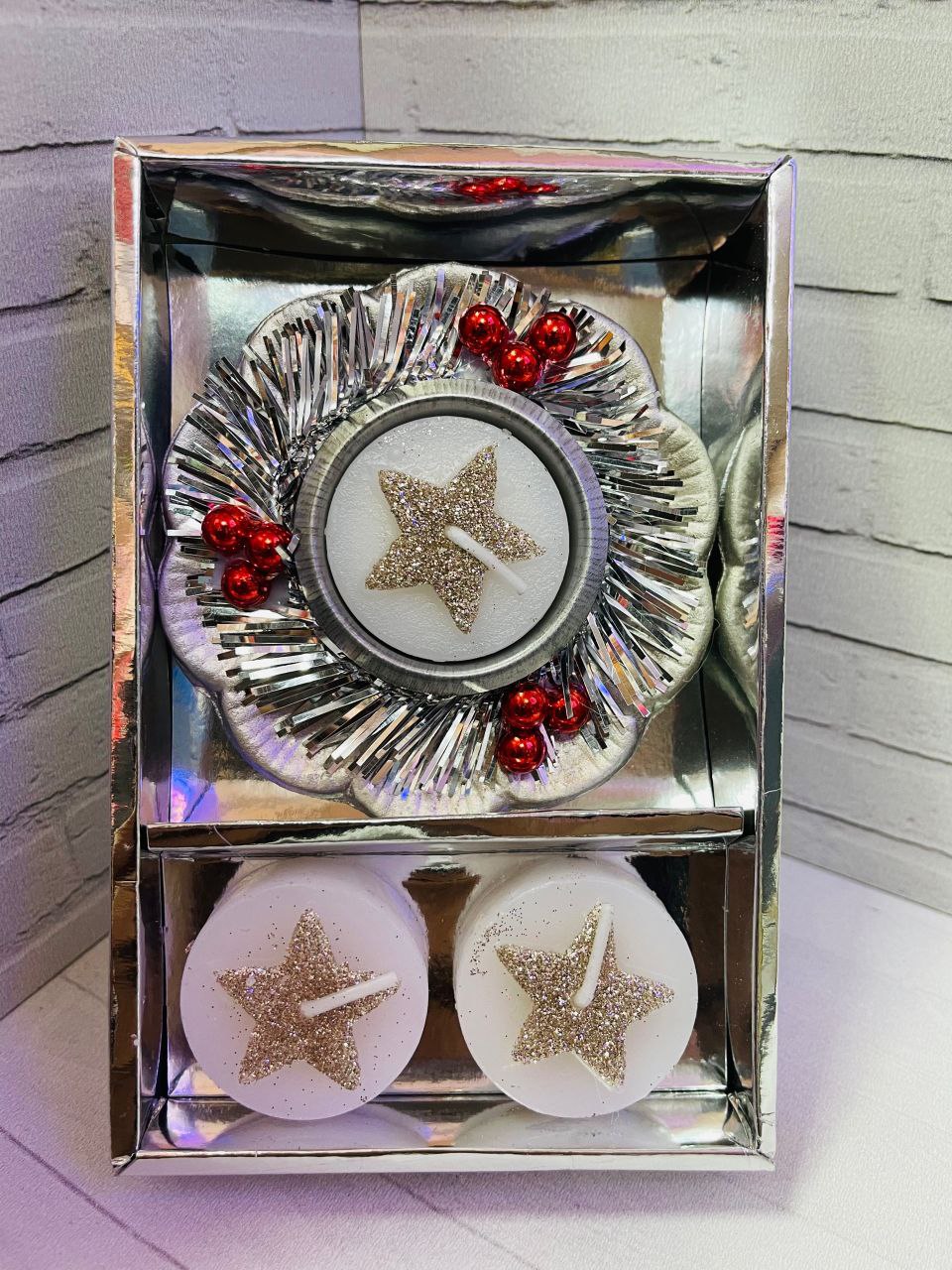 Ищете оригинальный новогодний подарок, который создаст праздничную атмосферу и порадует каждого? Представляем новогодний набор свечей — стильный и яркий элемент декора, который обязательно привлечёт внимание! Без запаха, они могут использоваться в закрытых помещениях, не вызывая дискомфорта, что делает их универсальным решением для вечеринок, торжественных ужинов, семейных застолий или романтического вечера. Свечи поставляются в компактной и удобной подарочной упаковке — это готовый новогодний подарок, который приятно дарить и получать! Добавьте в ваш дом тепло, комфорт и яркие эмоции в Новый год 2026, украсив пространство стильными и блестящими свечами, которые можно использовать как элемент декора даже после праздников!