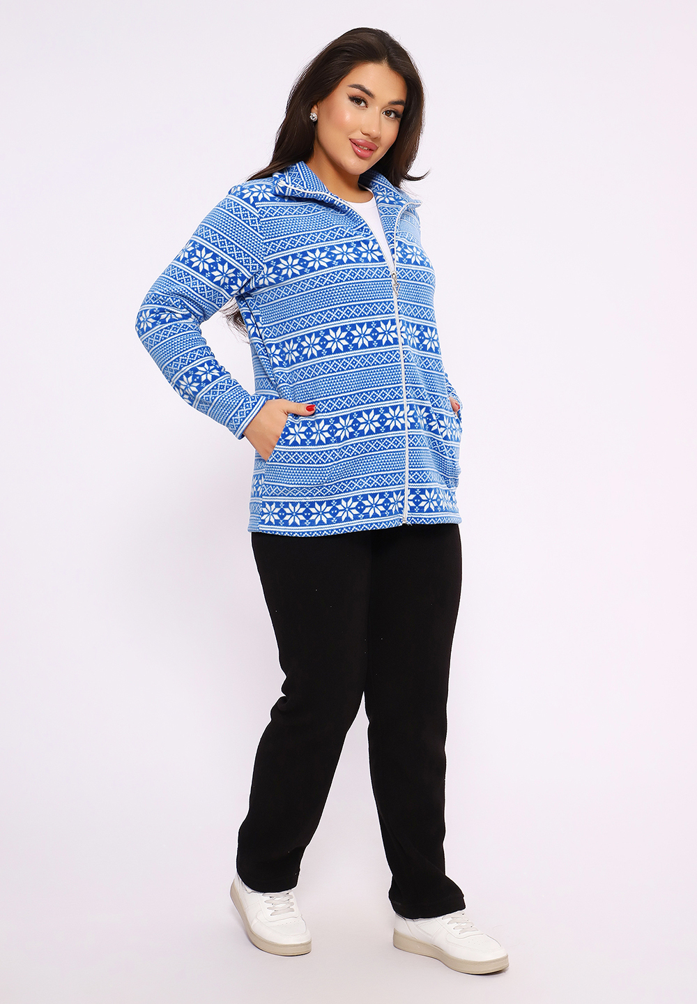 Утепленный флисовый костюм, идеально подходящий для холодной погоды. В комплект входит толстовка с воротником-стойкой на молнии и двумя карманами, выполненная из мягкого и теплого флиса с набивным рисунком, придающим изделию стильный и оригинальный вид. Дополняют образ черные однотонные теплые брюки, обеспечивающие комфорт и тепло в холодные дни. Этот комплект отлично подойдет для активного отдыха, прогулок или повседневной носки в холодное время года.